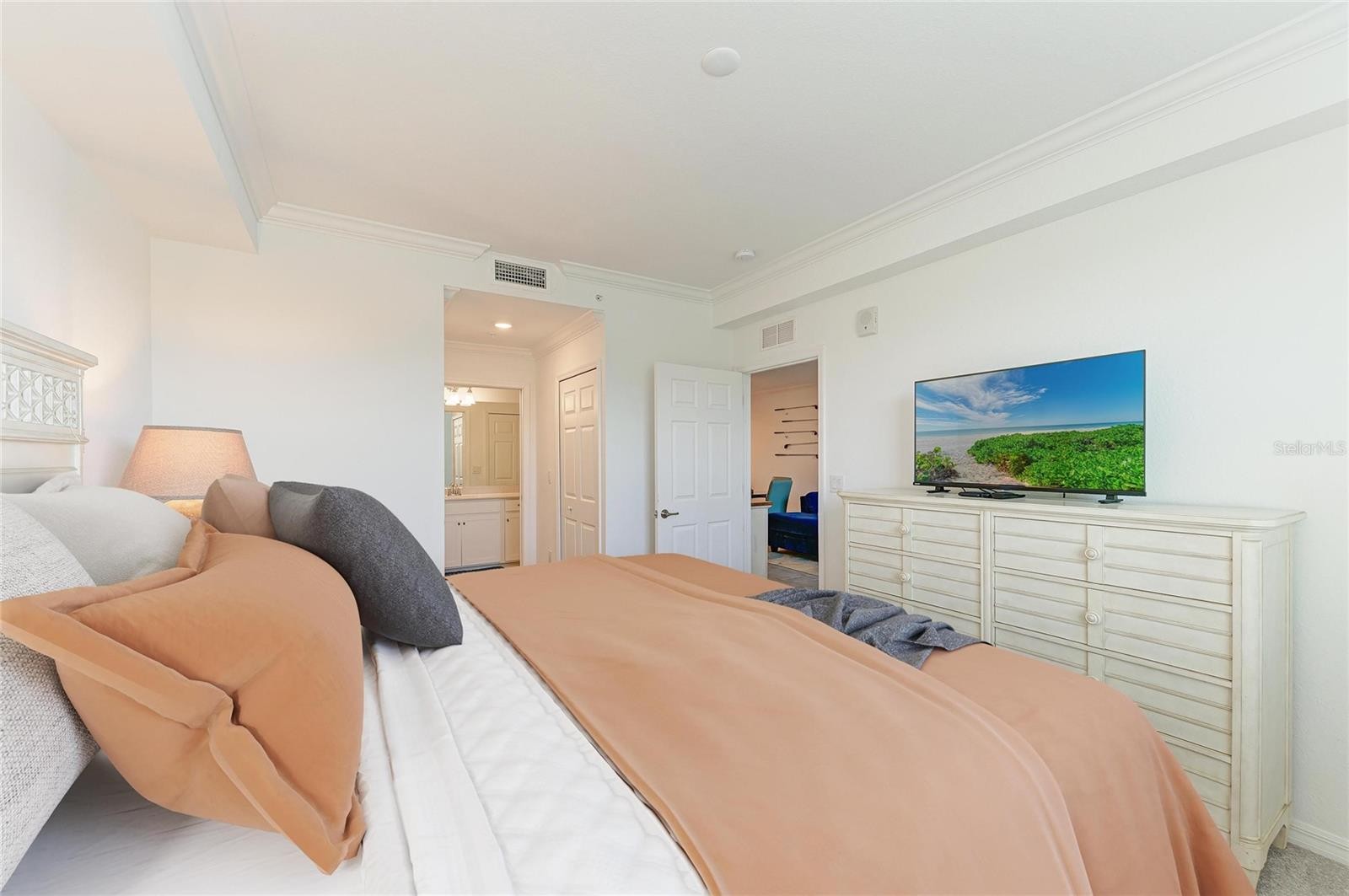 Welcome to this beautifully appointed second-floor 2-bedroom, 2-bath condo in the highly sought-after Lakewood National community of Lakewood Ranch, FL. Built in 2022 and offered turnkey furnished, this residence is truly move-in ready—perfect as a full-time home, seasonal retreat, or investment opportunity. Step inside to a thoughtfully designed open-concept floor plan that blends comfort and modern elegance. The kitchen is both stylish and functional, featuring sleek cabinetry, granite countertops, stainless steel appliances, and a spacious island with bar seating—perfect for casual dining or entertaining guests. The kitchen flows seamlessly into the dining and living areas, where natural light pours in through sliding glass doors, creating a bright and inviting atmosphere. The living room is tastefully furnished with a clean, contemporary feel, offering a relaxing space to unwind while enjoying uninterrupted views of the pond and golf course beyond. The primary suite is a peaceful retreat, complete with a large window that captures the scenic surroundings, two walk-in closets, and an en-suite bath featuring dual sinks and a walk-in shower. The second bedroom is equally inviting, ideal for guests or a home office, with easy access to the second full bathroom. Additional features include in-unit laundry, modern finishes throughout, and neutral tones that complement any décor style. Step out onto the private screened patio to take in the stunning water and golf course views—your own serene escape where you can relax and enjoy Florida’s natural beauty year-round. This home offers not only stunning views but also access to an unparalleled resort-style lifestyle. Lakewood National features two championship Arnold Palmer-designed golf courses, a grand clubhouse, state-of-the-art fitness center, full-service spa, tennis and pickleball courts, resort-style pools with lap lanes, poolside dining, and a vibrant social calendar filled with events and activities. Residents enjoy a maintenance-free lifestyle, allowing more time to relax, connect, and enjoy the surroundings. Whether you’re an avid golfer, a fitness enthusiast, or simply someone who appreciates serene views and an active, social community, this condo offers the perfect blend of luxury, convenience, and Florida living at its finest.