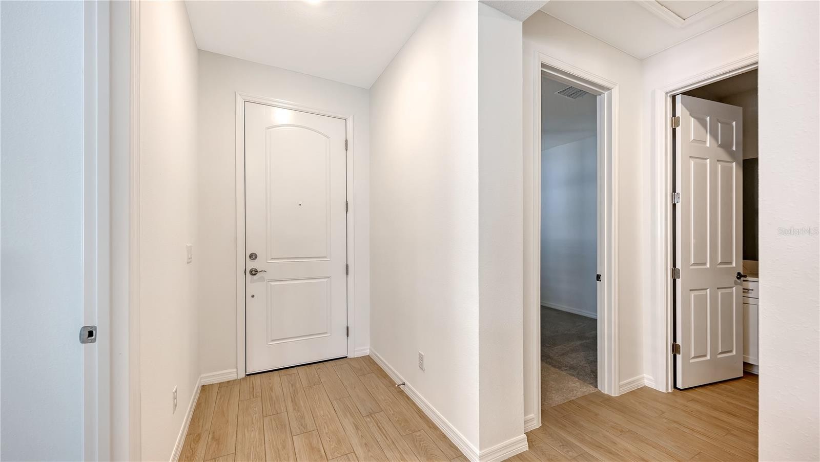 Discover your dream home in this meticulously crafted 2026 villa, featuring 3 spacious bedrooms, 2 modern bathrooms, and an attached 2-car garage. Nestled in a serene community, this elegant residence offers a peaceful water view, enhancing the tranquility and beauty of your living experience. The heart of the home boasts an expansive, open-concept living area, adorned with stylish tile flooring that not only adds a touch of sophistication but also ensures easy maintenance. Two bedrooms are carpeted. Natural light floods the space, creating a warm and inviting atmosphere perfect for both relaxation and entertaining. The kitchen is a chef's delight with stainless steel appliances, sleek solid countertops, and ample cabinetry for all your storage needs. The open plan layout provides a picturesque setting for meals with family and friends, with views that seamlessly blend the indoor and outdoor spaces. Retreat to the master bedroom that has a walk-in closet, and an en-suite bathroom. The en-suite offers dual vanities, a spacious walk-in shower, and elegant fixtures, creating a spa-like oasis. The additional bedroom is adjacent to a well-appointed bathroom with modern amenities. One of the standout features of this villa is the screened lanai, an ideal spot for morning coffees, alfresco dining, or simply unwinding while enjoying the serene views. This outdoor haven adds an extra layer of living space and is perfect for year-round enjoyment, protected from the elements and insects. The attached 2-car garage provides ample storage and convenience, ensuring your vehicles and belongings are secure and easily accessible. Embrace the blend of luxury and comfort in this exquisite villa, where every detail has been thoughtfully designed to create a perfect sanctuary for modern living. Ceiling fans are installed.