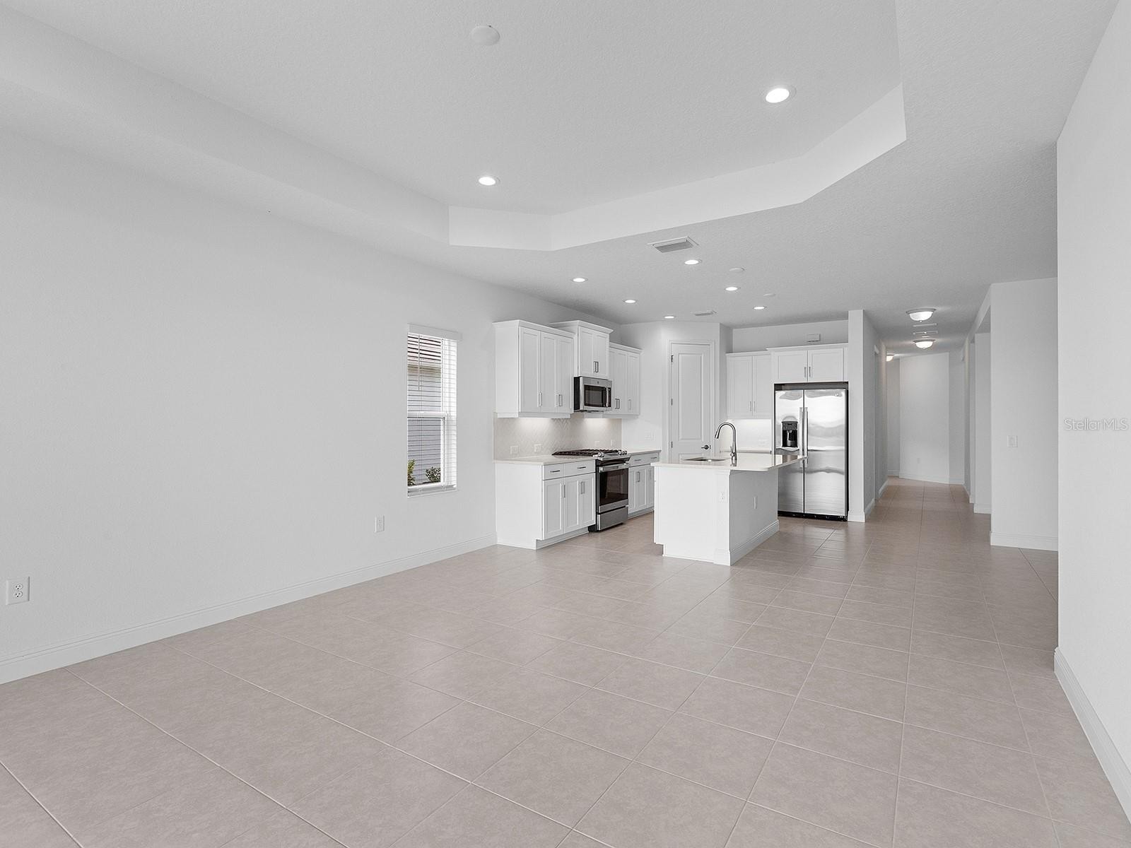 One or more photo(s) has been virtually staged. Skip the wait for new construction and enter this never-lived-in, fully upgraded lakefront home offering immediate occupancy. Thoughtfully designed and enhanced with more than $55,000 in builder upgrades, this residence is under warranty, an exceptional opportunity for today’s buyers. This popular Dream model features three bedrooms with walk-in closets, plus a stylish den with double glass doors. The open, split-bedroom layout creates natural separation and privacy for guests, owners, and those working from home, all while the great room showcases beautiful lake views and abundant natural light. Fresh, neutral finishes throughout provide the perfect canvas for your personal style. The chef’s kitchen shines with quartz countertops, a natural gas range, walk-in pantry with wood shelving, pullouts, under-cabinet LED lighting, and a spacious island with seating. Additional upgrades include whole-home impact-rated windows and doors, 8-foot interior doors, and a 2-foot extended garage with epoxy flooring, ideal for larger vehicles or added storage. A well-appointed indoor laundry room offers cabinetry, shelving, and a Corian-topped laundry tub for everyday convenience. Outside, the home is finished with a paver driveway, covered lanai, attractive landscaping with a sprinkler system and a durable tile roof. Be sure to explore the 3D tour and ask your REALTOR® for the full features list to appreciate the quality and care built into this exceptional, move-in-ready home.