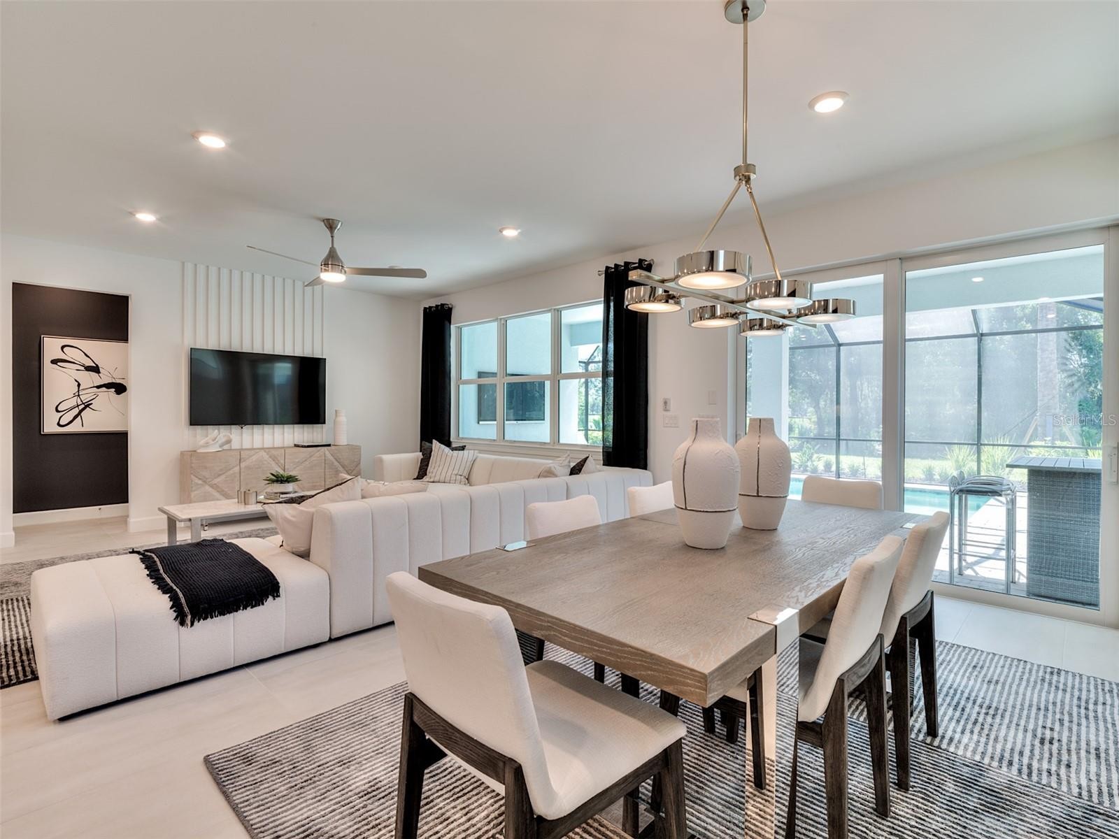 This beautifully crafted Palmary floor plan offers 3 bedrooms, 2 baths, and a 2-car garage, nestled in a brand new boutique style community. This home features an open floor plan with porcelain tile flooring throughout, impact-resistant doors and windows, a tray ceiling in the gathering room and a tankless water heater. The kitchen is a chef’s delight with gas cooking, a built-in microwave/wall oven combo with white cabinetry and contrasting Admiral blue center island with Silestone countertops. Other features include an enlarged shower in the owner's bedroom, upgraded laundry rm w/sink and cabinetry, spacious screened lanai and washer/dryer/fridge are included! Relaxation is easy at the community pool and cabana area while cooking at the BBQ grill area. Don't miss this opportunity to own a brand-new home with designer finishes! Photos are from a furnished model. Options for this home may vary.
