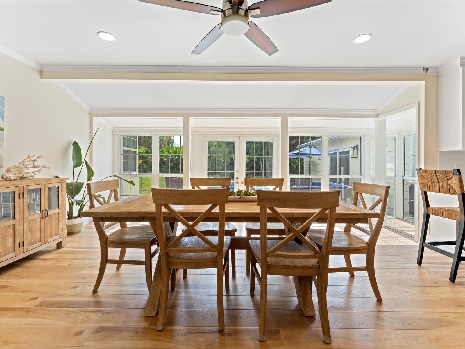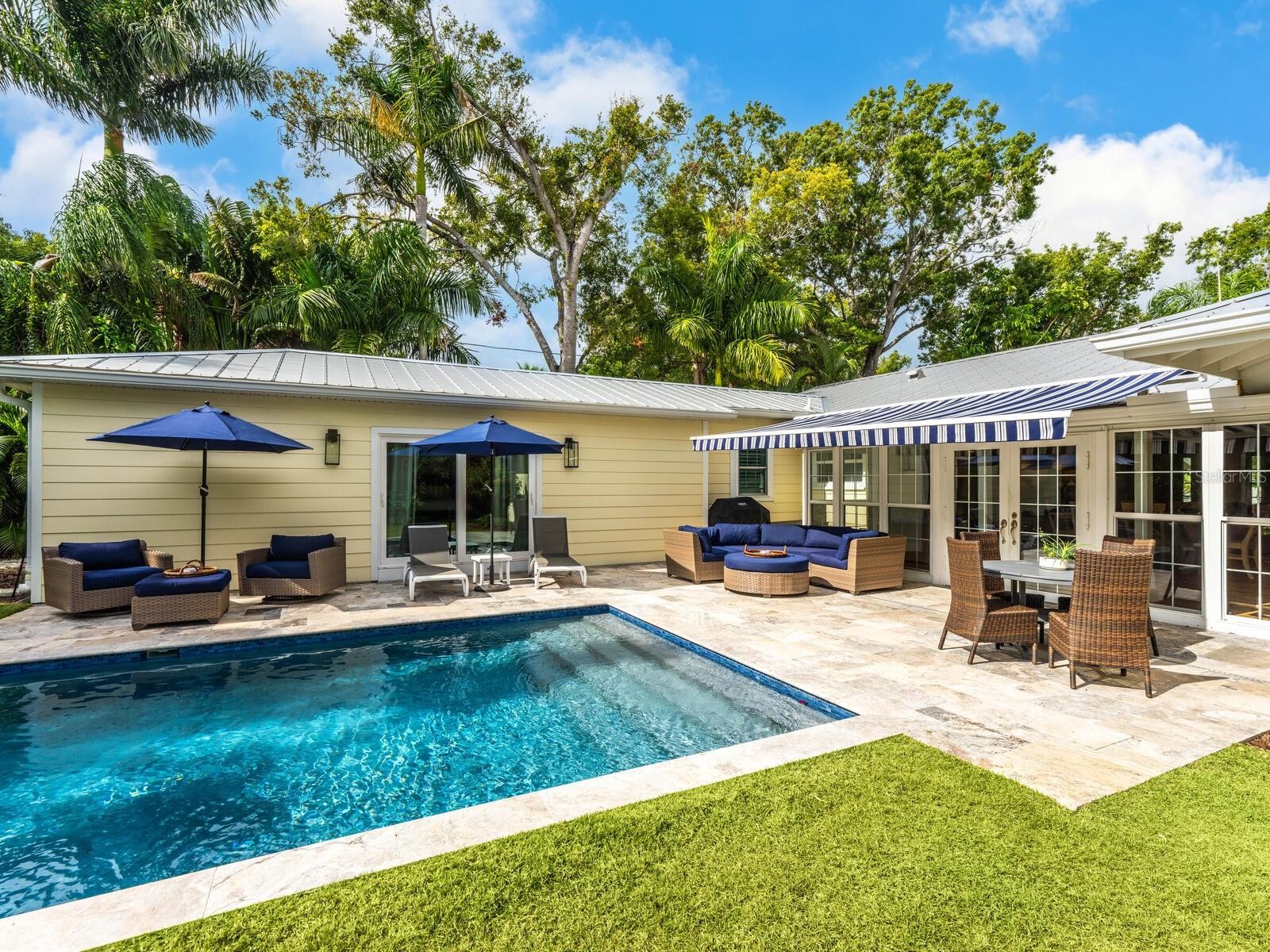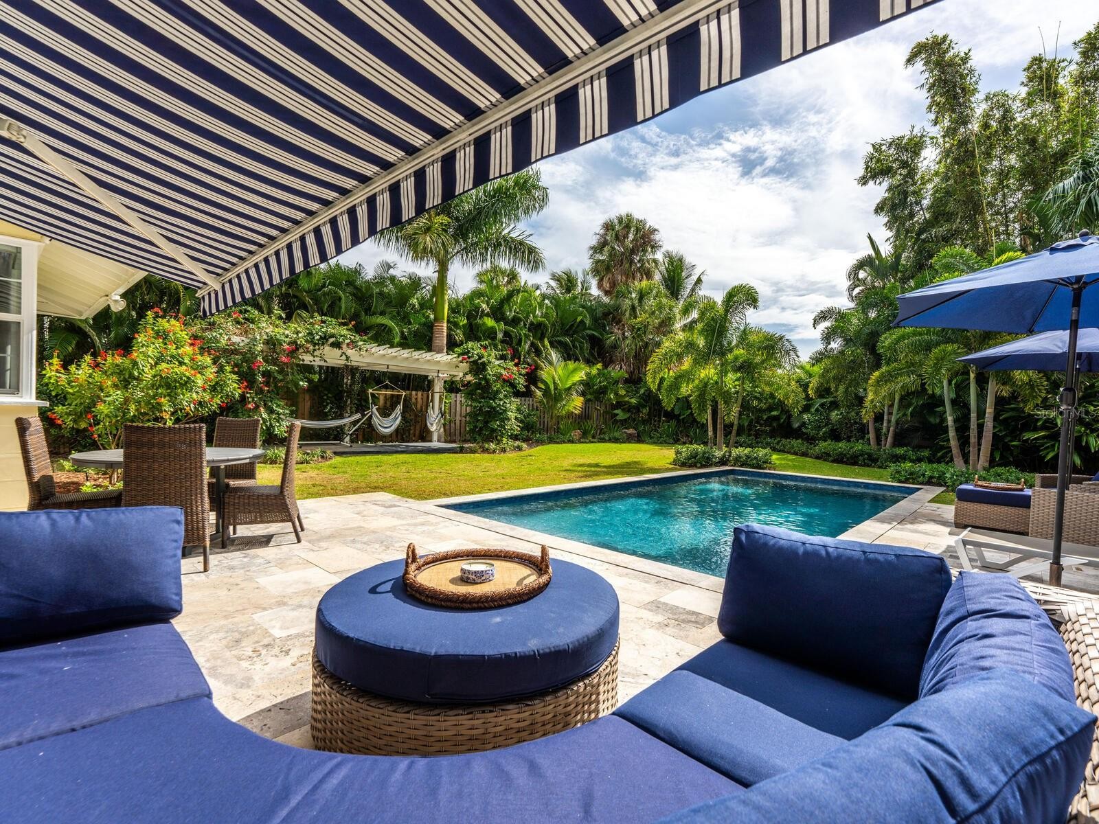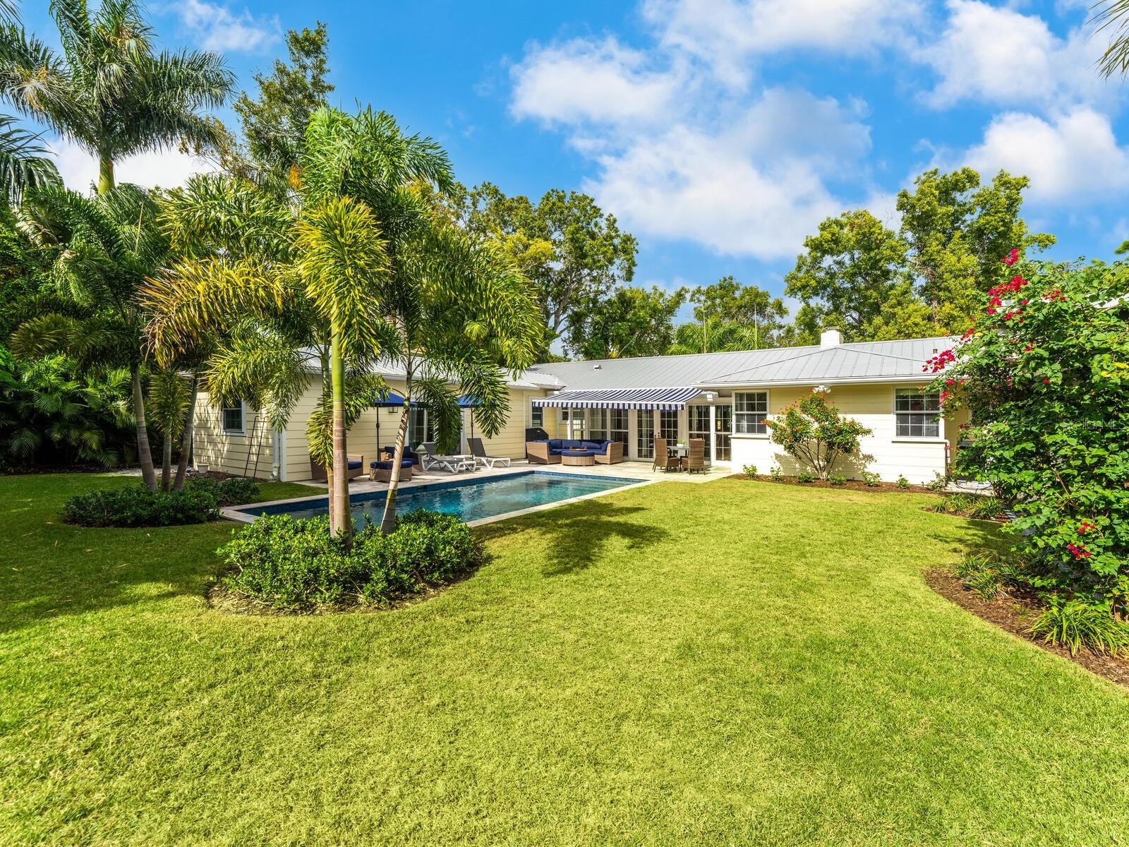 Located in the highly sought-after Avondale neighborhood, this beautiful “Old Florida” home has been extensively and tastefully updated while maintaining its timeless charm. The split floor plan includes three oversized ensuite bedrooms, an additional powder room, and a separate study/den conveniently positioned adjacent to the primary suite. Floor-to-ceiling windows and an open floor plan allow for abundant natural light and views of the heated saltwater pool, travertine deck, and generously sized backyard. Significant renovations in 2022 and 2023 include a new primary suite addition, an extensive kitchen remodel with updated electrical and plumbing, and new flooring throughout. Exterior improvements are equally impressive, featuring impact-rated doors and windows throughout, enhanced landscaping with drainage systems, irrigation, front yard fencing, and updated lighting. Additional features include a 2-car garage with epoxy flooring, metal roof (2007/2021), and newer A/C (2021). Perfectly situated between Southside Village and the vibrant Downtown Sarasota Bayfront, the property is also located within the highly sought-after Southside Elementary School District, making it a premier choice for those seeking convenience, style, and location.