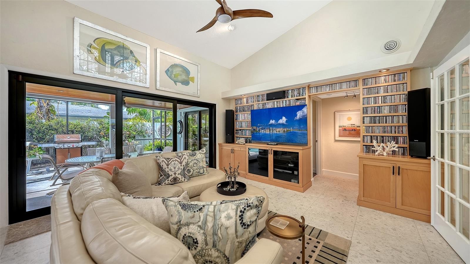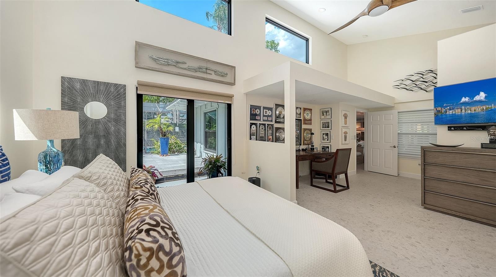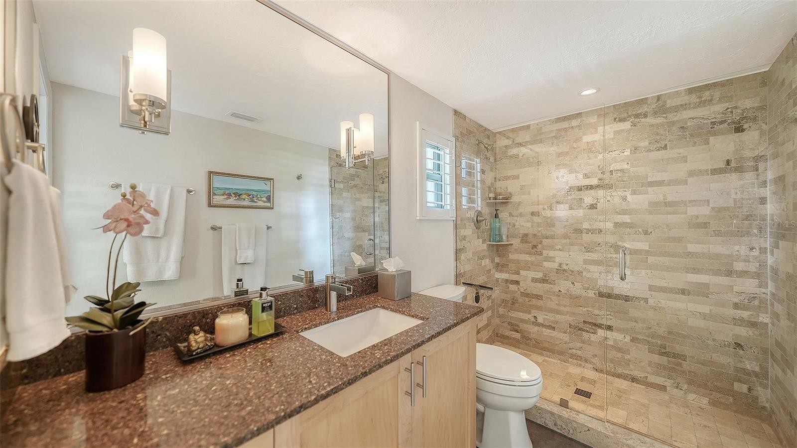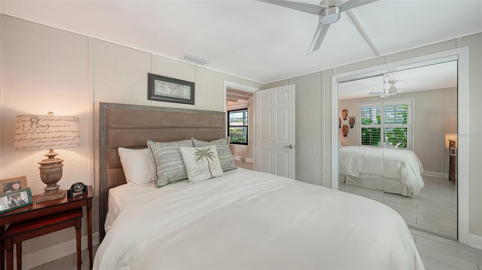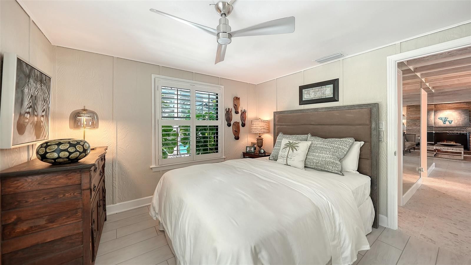 Mid-Century Soul + Coastal Sophistication + West of the Trail. Welcome to a masterfully curated Mid-Century Modern retreat located just north of the Stickney Point Bridge in one of Sarasota's coveted zip codes. Situated on a lush 0.31-acre corner lot, this property offers a rare sense of tranquility and total privacy with no HOA or deed restrictions—all just minutes from the world-renowned quartz sands of Siesta Key or Sarasota’s vibrant Downtown. The Aesthetic: Architectural Artistry. This isn’t just a home; it’s a design statement. Every inch celebrates the iconic MCM silhouette, from the striking floor-to-ceiling stone fireplace to the authentic exposed beams and dramatic vaulted ceilings. The timeless architecture is elevated by contemporary finishes, including large-format porcelain tile, Hunter Douglas window treatments, and custom stained-glass transoms that bathe the space in natural light. The Vibe: Indoor-Outdoor Synergy. Live the Sarasota dream in a space designed for the ultimate entertainer. The family room features pocketing glass sliders that reveal your private outdoor oasis, seamlessly dissolving the line between indoors and out. Host “golden hour” gatherings on the 20’ x 14’ composite deck, dine alfresco beneath the Cypress-wood lanai, or unwind in the heated saltwater pool—all enveloped by lush, professionally designed tropical landscaping and a fully fenced yard. Inside the lanai, a tranquil pond with a pump and cascading waterfall creates the perfect setting for meditation. The private, gated west-side yard—just off the primary bedroom deck—offers an additional secluded retreat, while thoughtfully designed landscape lighting sets the stage for stunning evening vistas. Retreat & Versatility: The Primary suite is a true sanctuary, boasting a sun-drenched reading nook, a spacious walk-in closet, and private deck access perfect for your morning coffee. On the opposite wing, a secondary primary-style suite offers ultimate flexibility for high-end guest hosting or a sophisticated home office. Another spacious guest bedroom completes the floorplan. With three full baths and a thoughtful "split" floor plan, the layout is as functional as it is beautiful. Modern “Peace of Mind Checklist” features include: new roof (2024), new ductwork (2024), fresh exterior paint (2024), 3 new water heaters (2024/2023), impact rated windows & doors (2023/2020), high-efficiency A/C (2020), Honeywell Home WiFi thermostat, and updated ADT monitored security system. Parking Pro: Two separate driveways plus a one-car garage for all your toys.