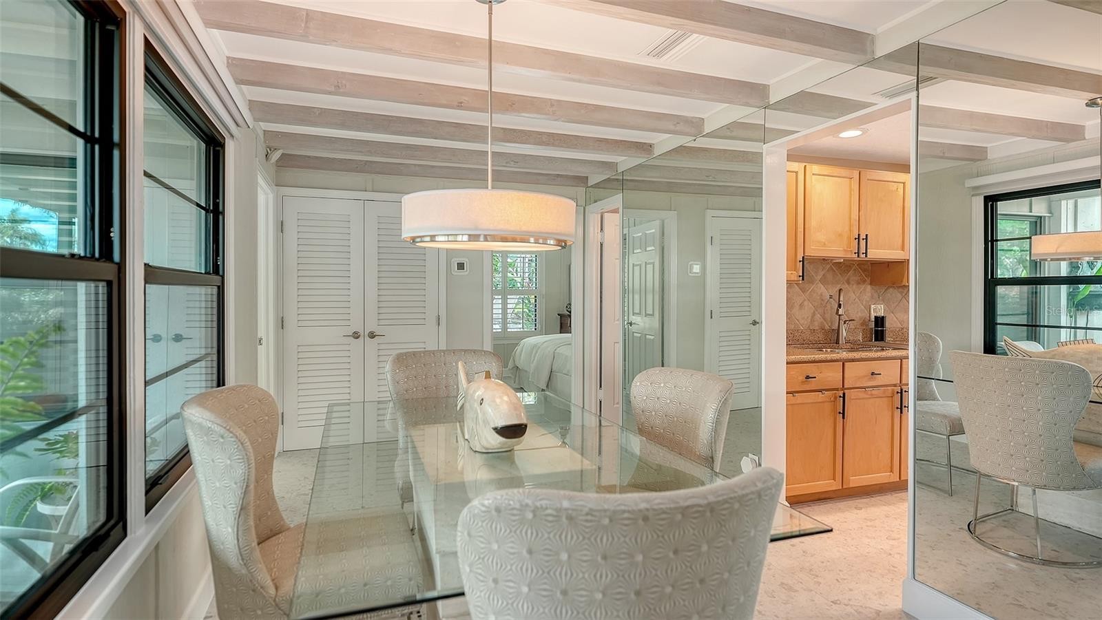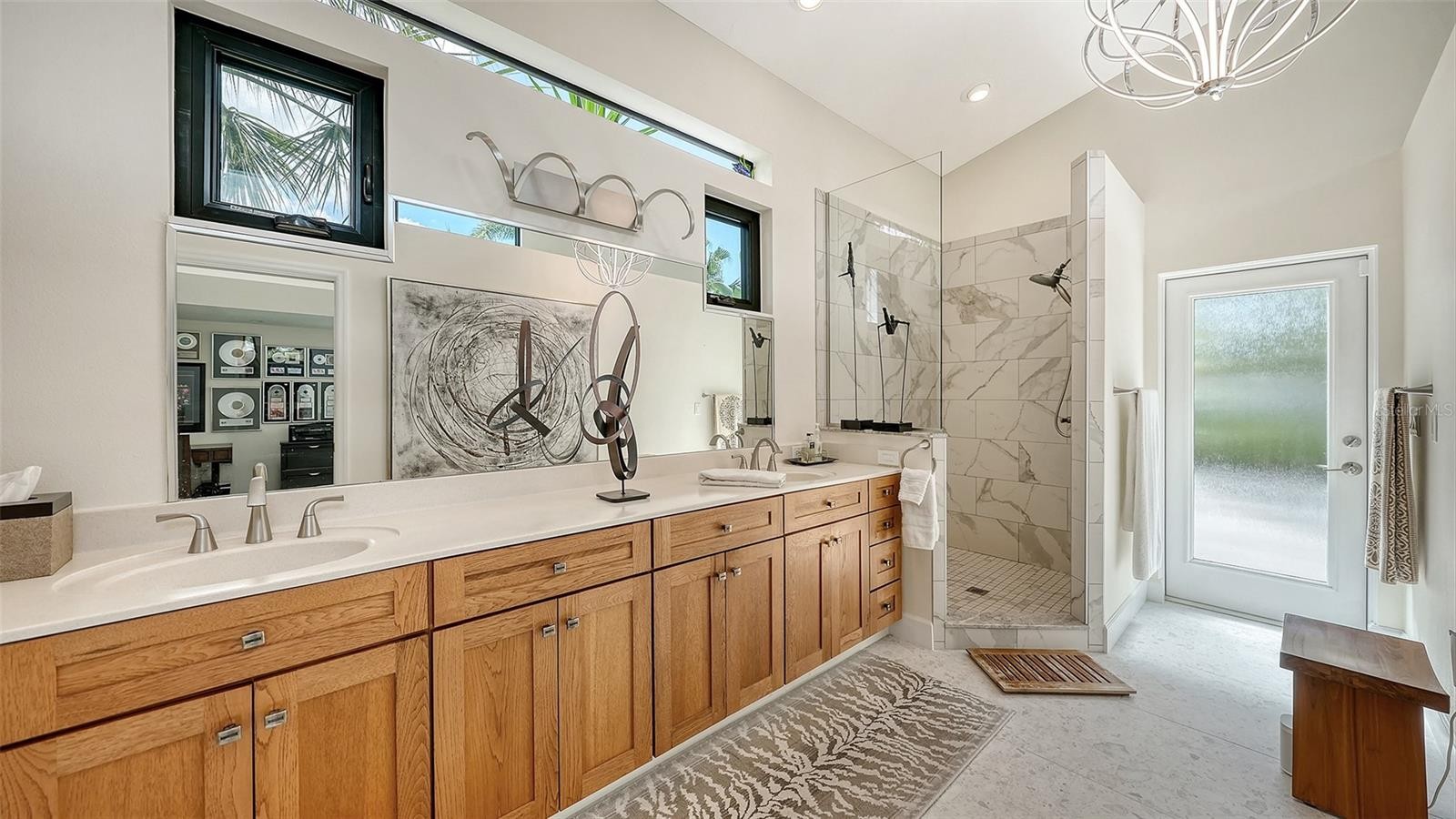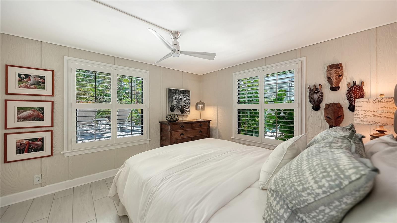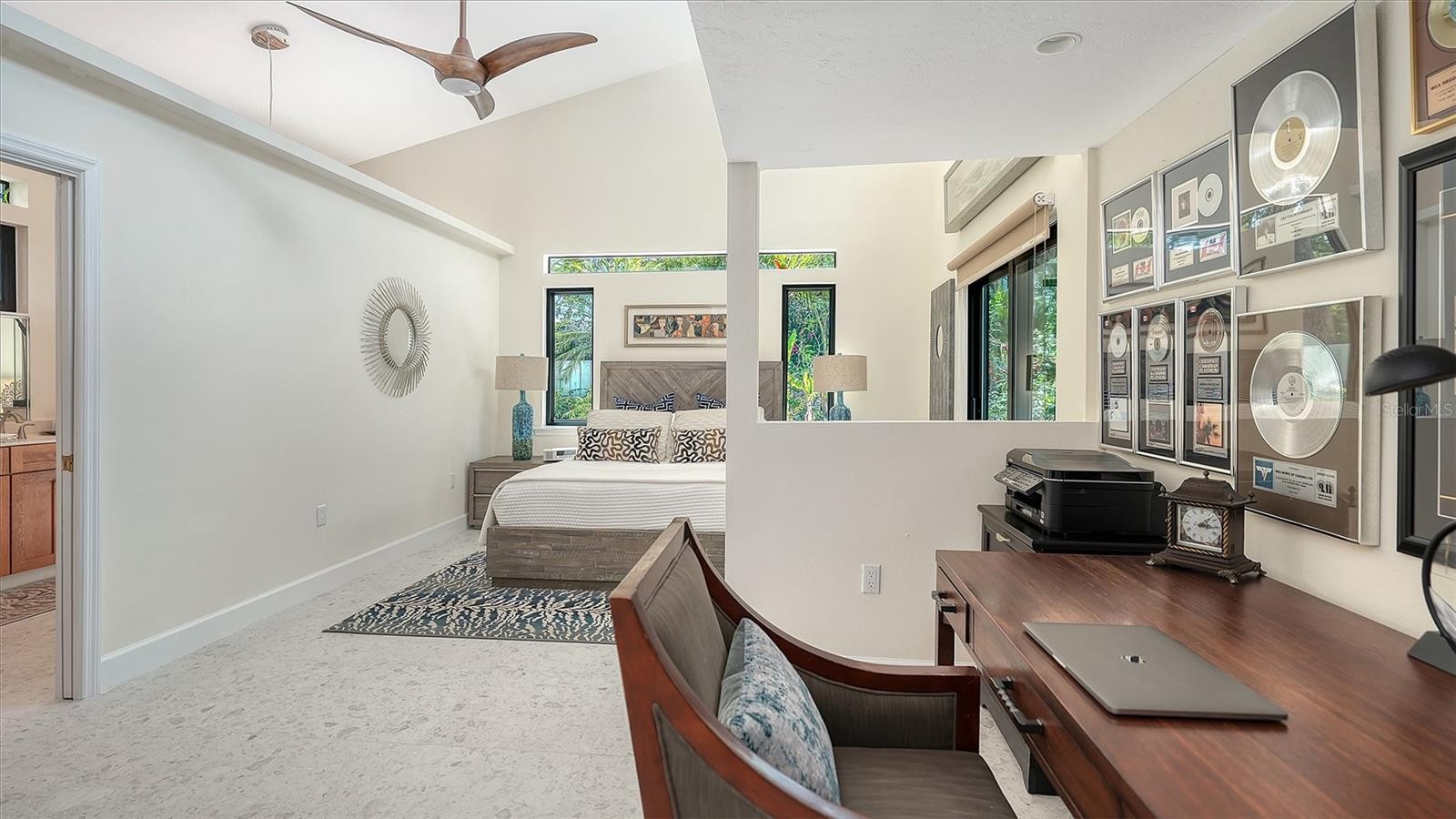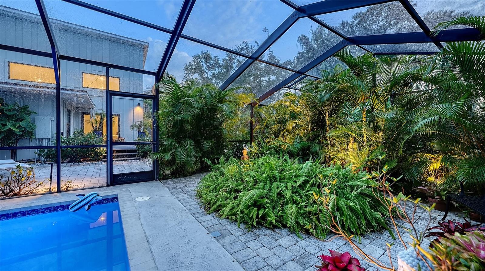 Mid-Century Soul + Coastal Sophistication + West of the Trail. Welcome to a masterfully curated Mid-Century Modern retreat located just north of the Stickney Point Bridge in one of Sarasota's coveted zip codes. Situated on a lush 0.31-acre corner lot, this property offers a rare sense of tranquility and total privacy with no HOA or deed restrictions—all just minutes from the world-renowned quartz sands of Siesta Key or Sarasota’s vibrant Downtown. The Aesthetic: Architectural Artistry. This isn’t just a home; it’s a design statement. Every inch celebrates the iconic MCM silhouette, from the striking floor-to-ceiling stone fireplace to the authentic exposed beams and dramatic vaulted ceilings. The timeless architecture is elevated by contemporary finishes, including large-format porcelain tile, Hunter Douglas window treatments, and custom stained-glass transoms that bathe the space in natural light. The Vibe: Indoor-Outdoor Synergy. Live the Sarasota dream in a space designed for the ultimate entertainer. The family room features pocketing glass sliders that reveal your private outdoor oasis, seamlessly dissolving the line between indoors and out. Host “golden hour” gatherings on the 20’ x 14’ composite deck, dine alfresco beneath the Cypress-wood lanai, or unwind in the heated saltwater pool—all enveloped by lush, professionally designed tropical landscaping and a fully fenced yard. Inside the lanai, a tranquil pond with a pump and cascading waterfall creates the perfect setting for meditation. The private, gated west-side yard—just off the primary bedroom deck—offers an additional secluded retreat, while thoughtfully designed landscape lighting sets the stage for stunning evening vistas. Retreat & Versatility: The Primary suite is a true sanctuary, boasting a sun-drenched reading nook, a spacious walk-in closet, and private deck access perfect for your morning coffee. On the opposite wing, a secondary primary-style suite offers ultimate flexibility for high-end guest hosting or a sophisticated home office. Another spacious guest bedroom completes the floorplan. With three full baths and a thoughtful "split" floor plan, the layout is as functional as it is beautiful. Modern “Peace of Mind Checklist” features include: new roof (2024), new ductwork (2024), fresh exterior paint (2024), 3 new water heaters (2024/2023), impact rated windows & doors (2023/2020), high-efficiency A/C (2020), Honeywell Home WiFi thermostat, and updated ADT monitored security system. Parking Pro: Two separate driveways plus a one-car garage for all your toys.