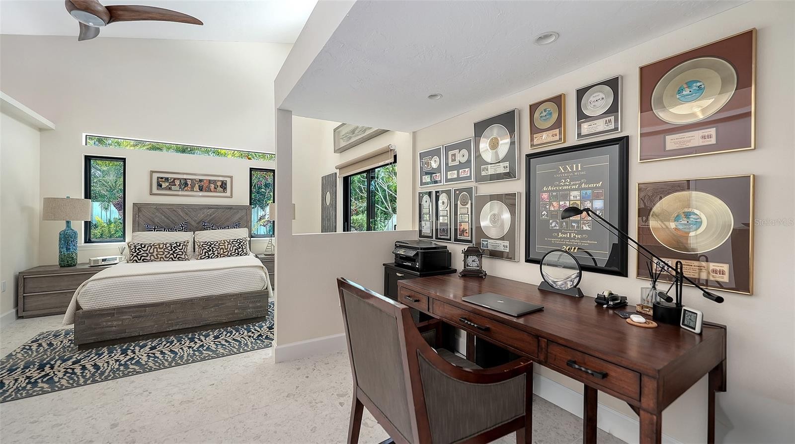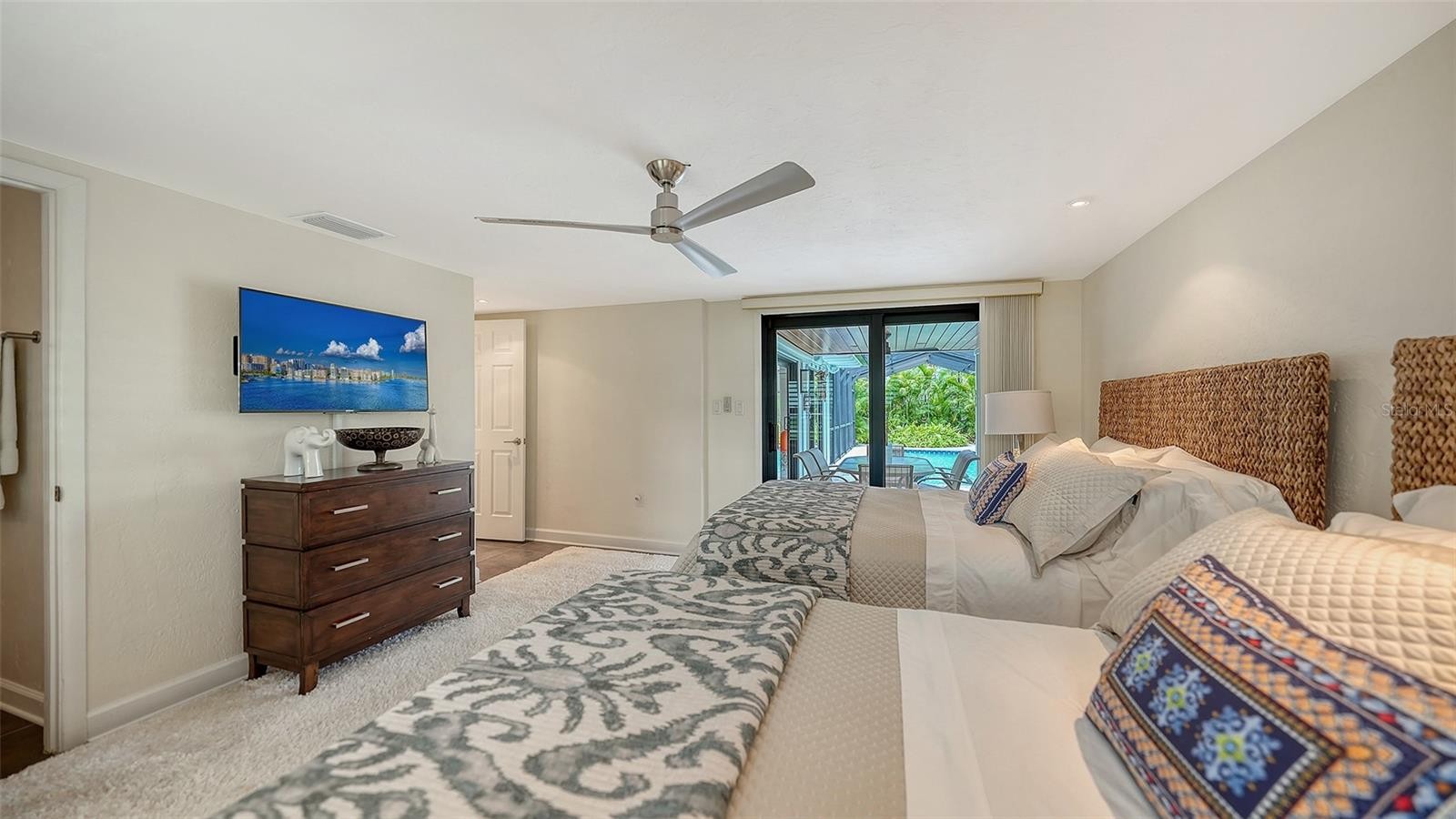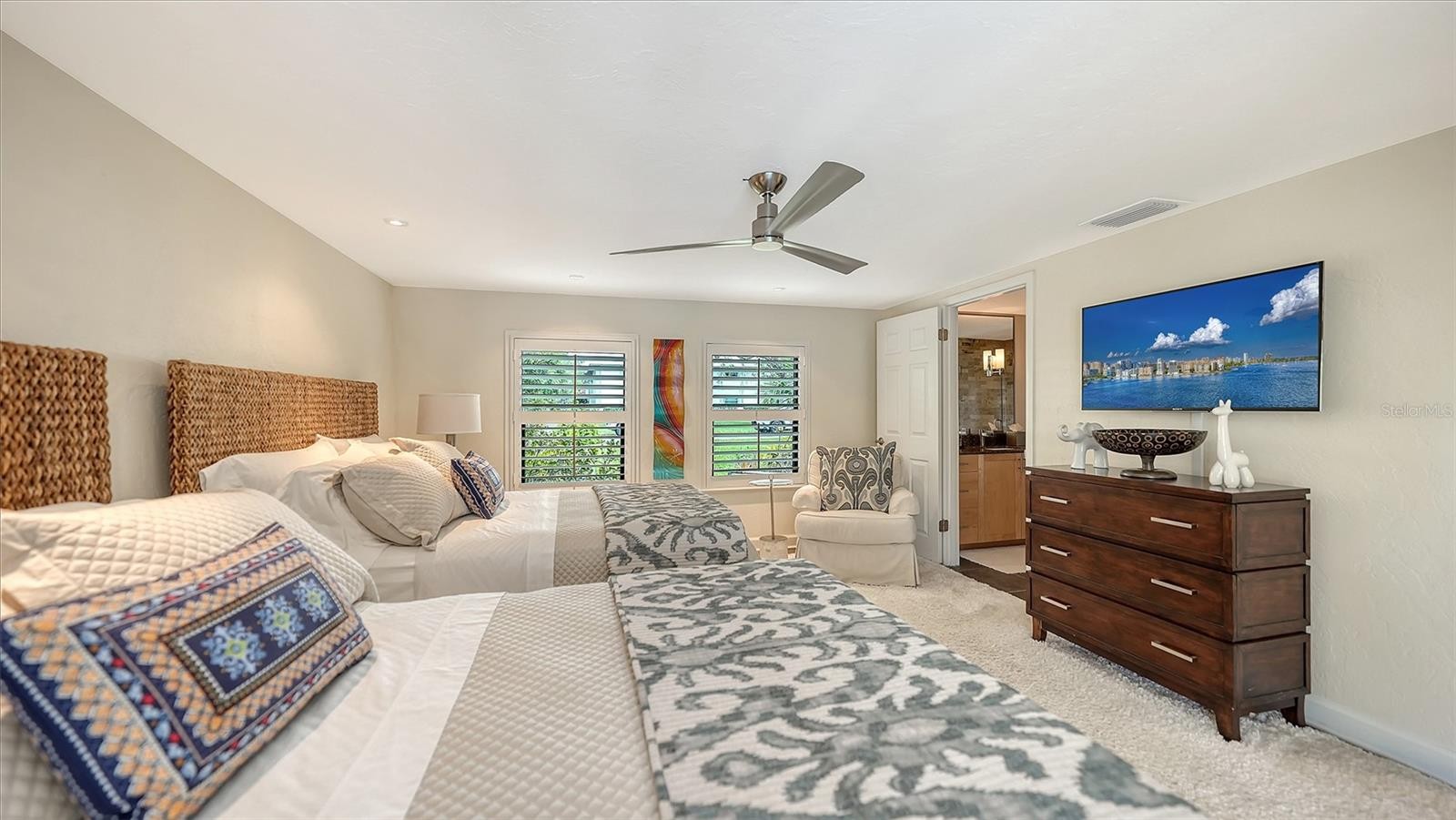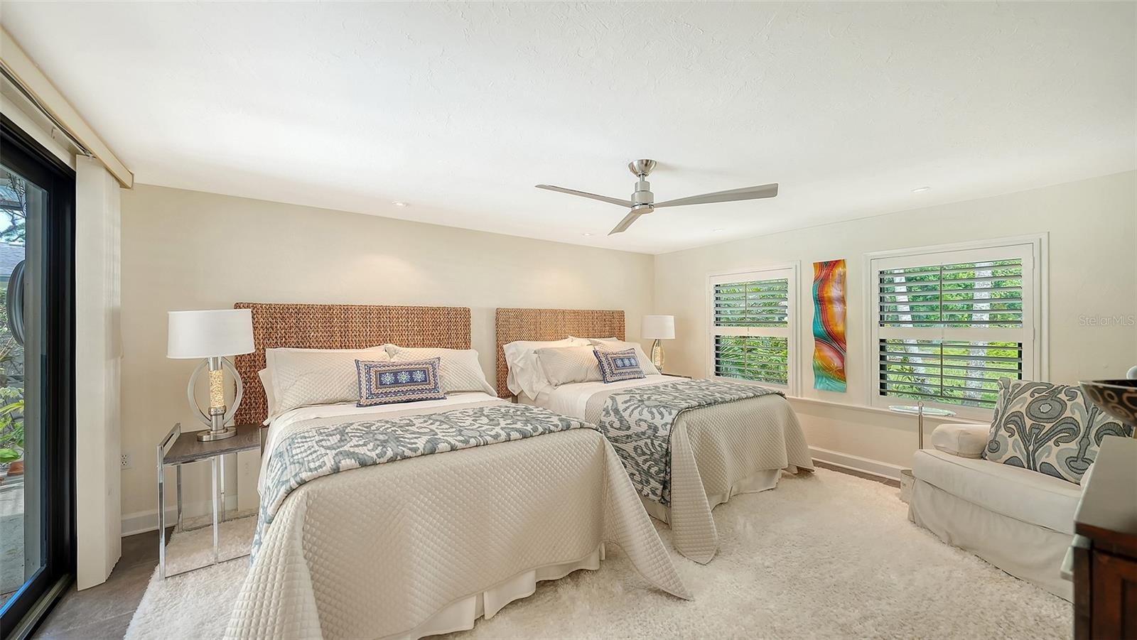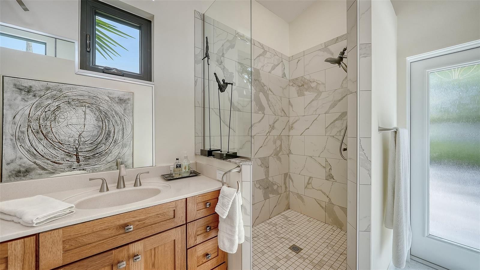 Mid-Century Soul + Coastal Sophistication + West of the Trail. Welcome to a masterfully curated Mid-Century Modern retreat located just north of the Stickney Point Bridge in one of Sarasota's coveted zip codes. Situated on a lush 0.31-acre corner lot, this property offers a rare sense of tranquility and total privacy with no HOA or deed restrictions—all just minutes from the world-renowned quartz sands of Siesta Key or Sarasota’s vibrant Downtown. The Aesthetic: Architectural Artistry. This isn’t just a home; it’s a design statement. Every inch celebrates the iconic MCM silhouette, from the striking floor-to-ceiling stone fireplace to the authentic exposed beams and dramatic vaulted ceilings. The timeless architecture is elevated by contemporary finishes, including large-format porcelain tile, Hunter Douglas window treatments, and custom stained-glass transoms that bathe the space in natural light. The Vibe: Indoor-Outdoor Synergy. Live the Sarasota dream in a space designed for the ultimate entertainer. The family room features pocketing glass sliders that reveal your private outdoor oasis, seamlessly dissolving the line between indoors and out. Host “golden hour” gatherings on the 20’ x 14’ composite deck, dine alfresco beneath the Cypress-wood lanai, or unwind in the heated saltwater pool—all enveloped by lush, professionally designed tropical landscaping and a fully fenced yard. Inside the lanai, a tranquil pond with a pump and cascading waterfall creates the perfect setting for meditation. The private, gated west-side yard—just off the primary bedroom deck—offers an additional secluded retreat, while thoughtfully designed landscape lighting sets the stage for stunning evening vistas. Retreat & Versatility: The Primary suite is a true sanctuary, boasting a sun-drenched reading nook, a spacious walk-in closet, and private deck access perfect for your morning coffee. On the opposite wing, a secondary primary-style suite offers ultimate flexibility for high-end guest hosting or a sophisticated home office. Another spacious guest bedroom completes the floorplan. With three full baths and a thoughtful "split" floor plan, the layout is as functional as it is beautiful. Modern “Peace of Mind Checklist” features include: new roof (2024), new ductwork (2024), fresh exterior paint (2024), 3 new water heaters (2024/2023), impact rated windows & doors (2023/2020), high-efficiency A/C (2020), Honeywell Home WiFi thermostat, and updated ADT monitored security system. Parking Pro: Two separate driveways plus a one-car garage for all your toys.