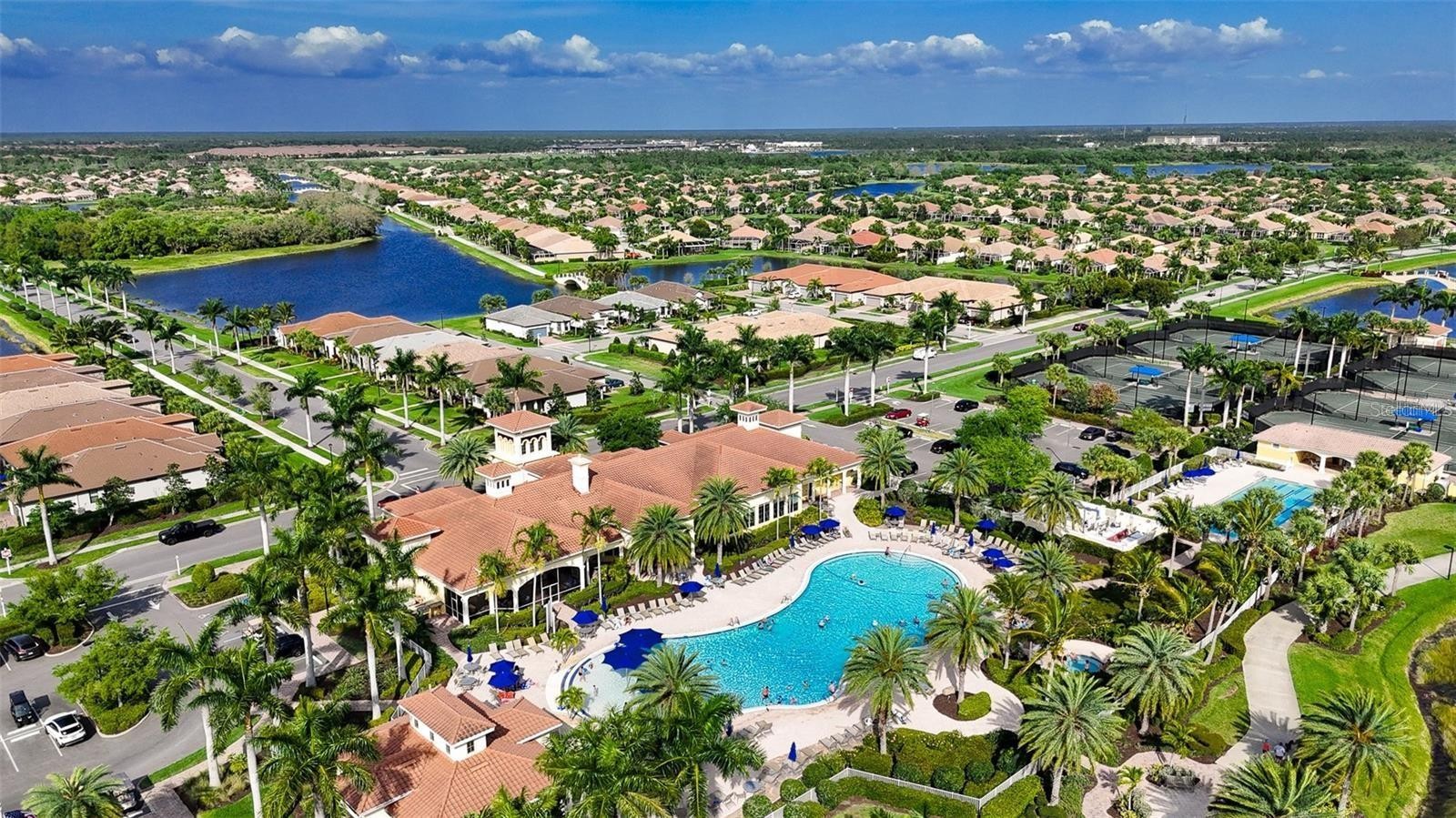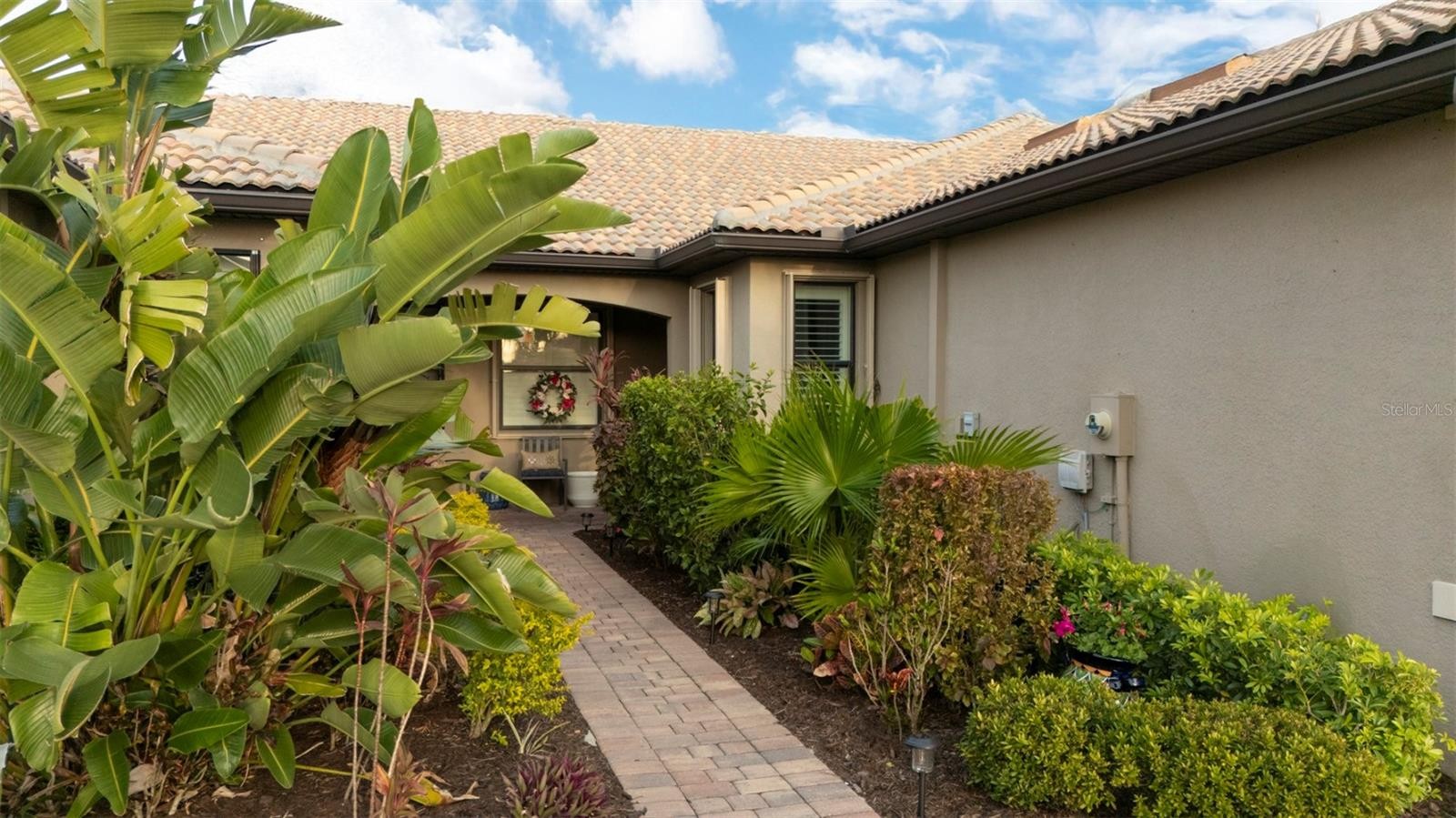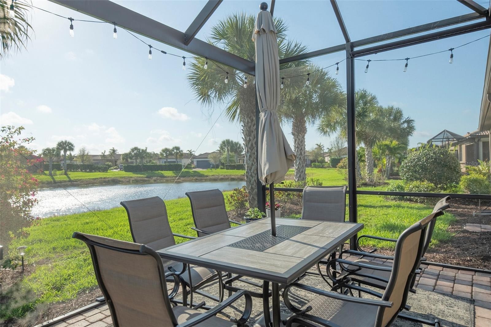 Move-in ready waterfront home with extended lanai in the highly sought-after IslandWalk at Wellen Park—one of Southwest Florida’s premier “plug-and-play” lifestyle communities. Perfect for seasonal or full-time living, IslandWalk is a true destination for those looking to enjoy resort-style living from day one, with extensive amenities, a full-time activity director, maintenance-free living, and 24-hour guard-gated security. Built in 2018 and only lightly lived in, this tastefully upgraded home offers 2 bedrooms plus a flex room and shows like new. Interior features include 9’ ceilings, 8’ doors, 5” baseboards, and 17” ceramic tile flooring throughout. The upgraded kitchen features 42” cabinetry, granite countertops with full bullnose edge, fingerprint-resistant stainless steel appliances, glass and stone backsplash, high-arc faucet, and added custom built-in cabinetry and counter space. The primary suite includes dual sinks, comfort-height cabinetry and toilets, and a multi-jet shower system. Additional upgrades include crown molding, plantation shutters, ceiling fans throughout, decorative lighting, UV-tinted sliding glass doors, and added laundry room cabinetry. Enjoy indoor-outdoor living with an extended 12’ x 18’ lanai featuring clear-view no-see-um screens and stunning 180-degree water views. The garage is finished with epoxy and resin chip flooring, added shelving, insulated overhead door, ceiling fan, and retractable screen. Full-house accordion shutters provide quick and easy storm preparation and added peace of mind. The home's location is optimal in every way. Everything you need can be reached in minutes via golf cart, bike or on foot. Shopping, dining and entertainment are just steps away. Take a short walk to the amenity center or out through the back gate to Downtown Wellen Park, Publix and more. IslandWalk amenities include two resort-style clubhouses, heated pools and lap pools, fitness center, tennis, pickleball, bocce, dog park, community gardens, and miles of walking and biking trails—all designed to support an active, social lifestyle. Don't miss out, this is truly an incredible opportunity to own an upgraded, water view, newer villa that is optimally located!