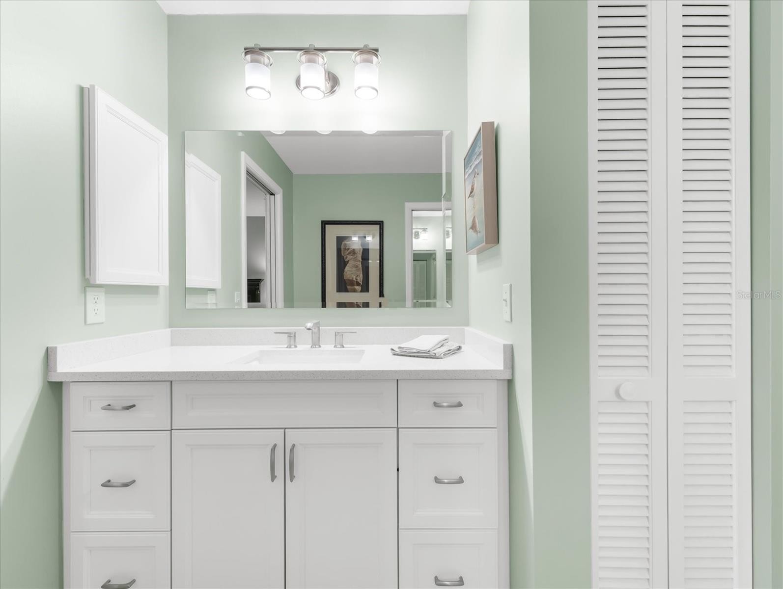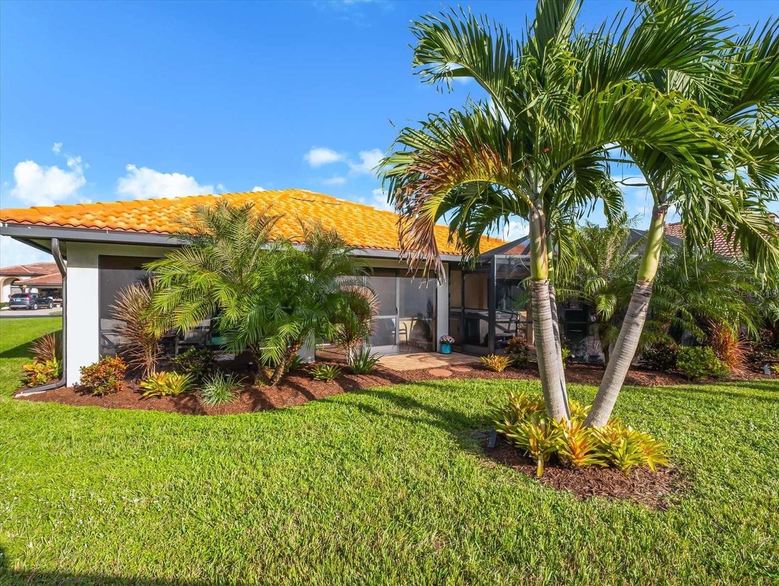 Live where others vacation—just minutes from Venice and Manasota Beach! This stunning, fully remodeled home is your ticket to easy, breezy Florida living. Step into a bright, open floor plan with soaring cathedral ceilings that create a spacious, airy feel throughout. The reimagined layout now includes 2 bedrooms, plus a stylish home office/den and 2 beautifully updated bathrooms with quartz countertops, wood-look ceramic tile floors, a jaw-dropping 10' granite kitchen island with extra cabinet storage underneath, sleek appliances, and custom window treatments throughout. New hurricane-rated windows and a massive 16' sliding glass door open to your private oasis: a pavered patio with new, extended screened lanai, and relaxing hot tub. Enjoy peace of mind with a new concrete tile roof (2018), new gutters (2022), new AC unit and a high-tech HVAC system with UV filtration. And the best part? The HOA takes care of roof cleaning, exterior painting, and lawn maintenance—so you can spend more time soaking up the sun. Walking distance to the library and grocery stores adds everyday convenience. No rentals allowed means quiet nights and a true neighborhood feel. This is your chance to own a slice of paradise in one of Venice’s most desirable communities!
