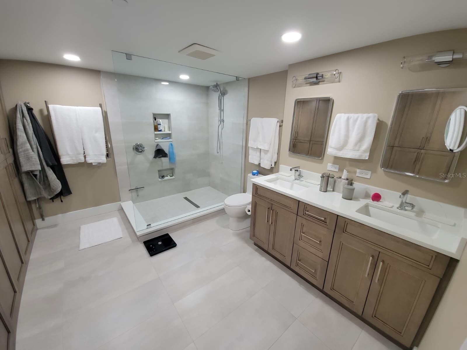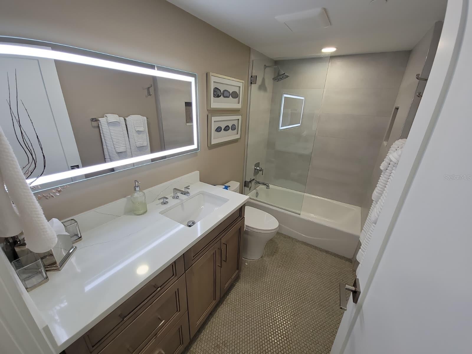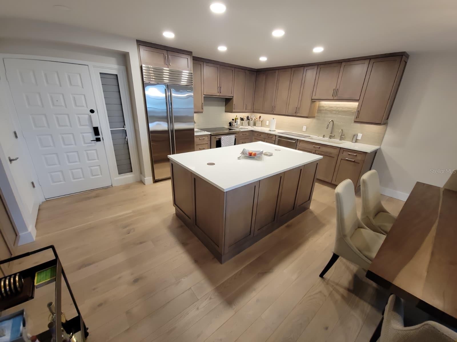 Beautifully remodeled and professionally designed unit where everything is new and thoughtfully curated for modern coastal living. Features include luxury vinyl flooring throughout, custom Graber cabinetry, quartz countertops, and a high-end appliance package with Sub-Zero refrigeration and a Thermador range. Enjoy the convenience of Hunter Douglas remote-controlled blinds, two private balconies, and fully upgraded plumbing and electrical systems. This residence blends quality craftsmanship, smart design, and luxury finishes in every detail.