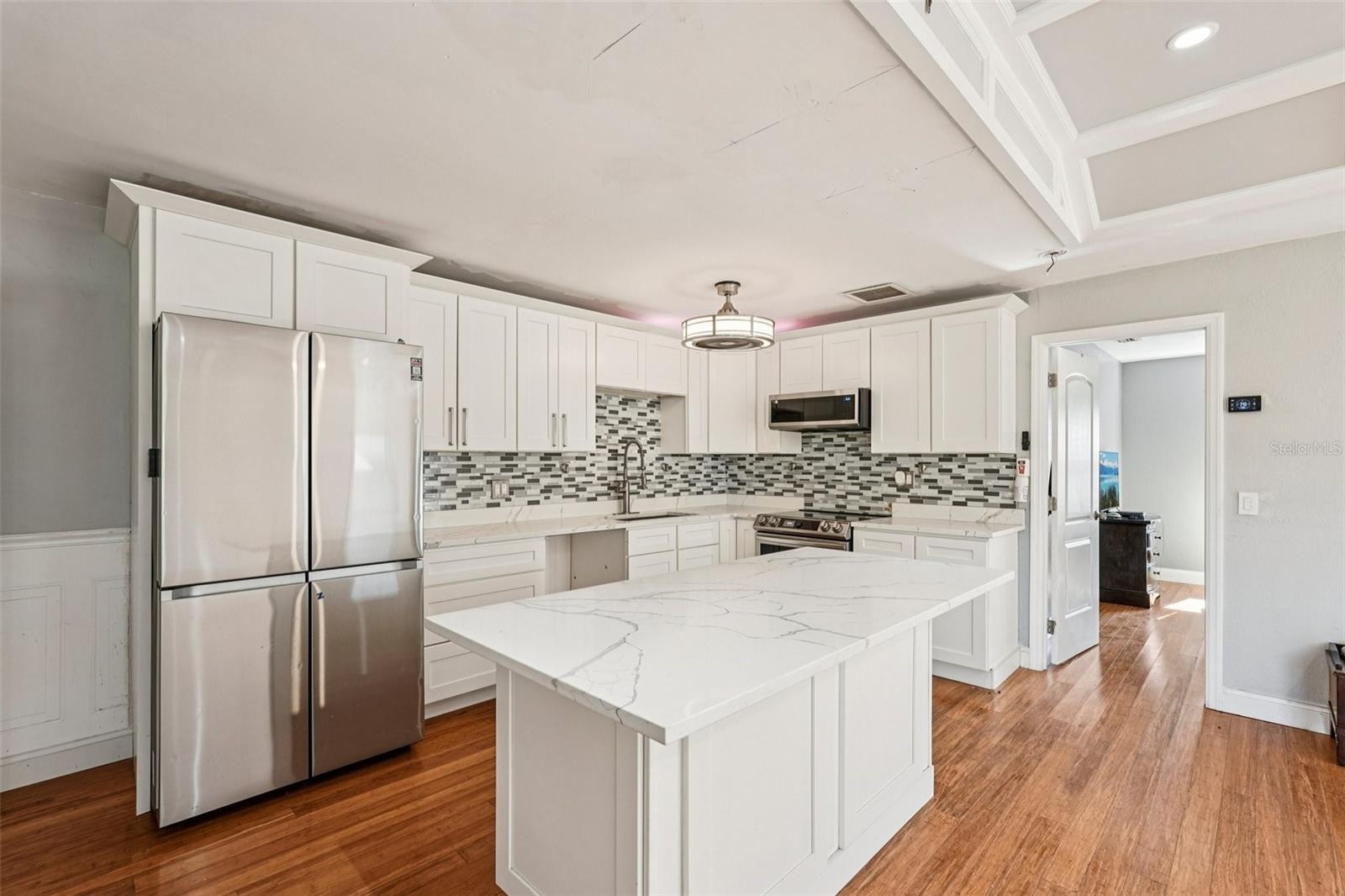 Rarely offered 4bed with In-Law Suite and Double Lot! Discover a truly exceptional 4-bedroom fully enabled smart home, a rare find that seamlessly blends spacious, modern living with unique property potential. Situated on a double-wide lot, this property offers unparalleled versatility—perfect for realizing your dream of a massive private garden, out buildings or the possibility of subdivision. The expansive and open layout is immediately welcoming, highlighted by a dedicated full in-law suite. Complete with its own full separate kitchen and living area, this setup makes multi-generational living or effortlessly hosting guests an absolute breeze. This home has undergone meticulous updates designed for long-term comfort and peace of mind. Key improvements include a brand-new 2023 roof, featuring new soffits and gutters, backed by a 15-year transferable warranty. Interior comfort is guaranteed by a new 3-zone HVAC system, which includes a dedicated zone specifically for the in-law suite. Adding to the home's reliability is a top-of-the-line water filtration and treatment system, designed for consistent pressure and aeration throughout. Inside, luxury meets function with two full kitchens. Both boast new 36” cabinets, elegant quartz countertops, and modern appliances. Throughout the bright, sun-drenched living spaces, updated recessed LED lighting enhances every room, complemented by the convenience of remote-controlled ceiling fans. Combining reliable modern systems with premium finishes, this move-in-ready gem is an opportunity not to be missed. Professional pictures to be added 4/18/2026.