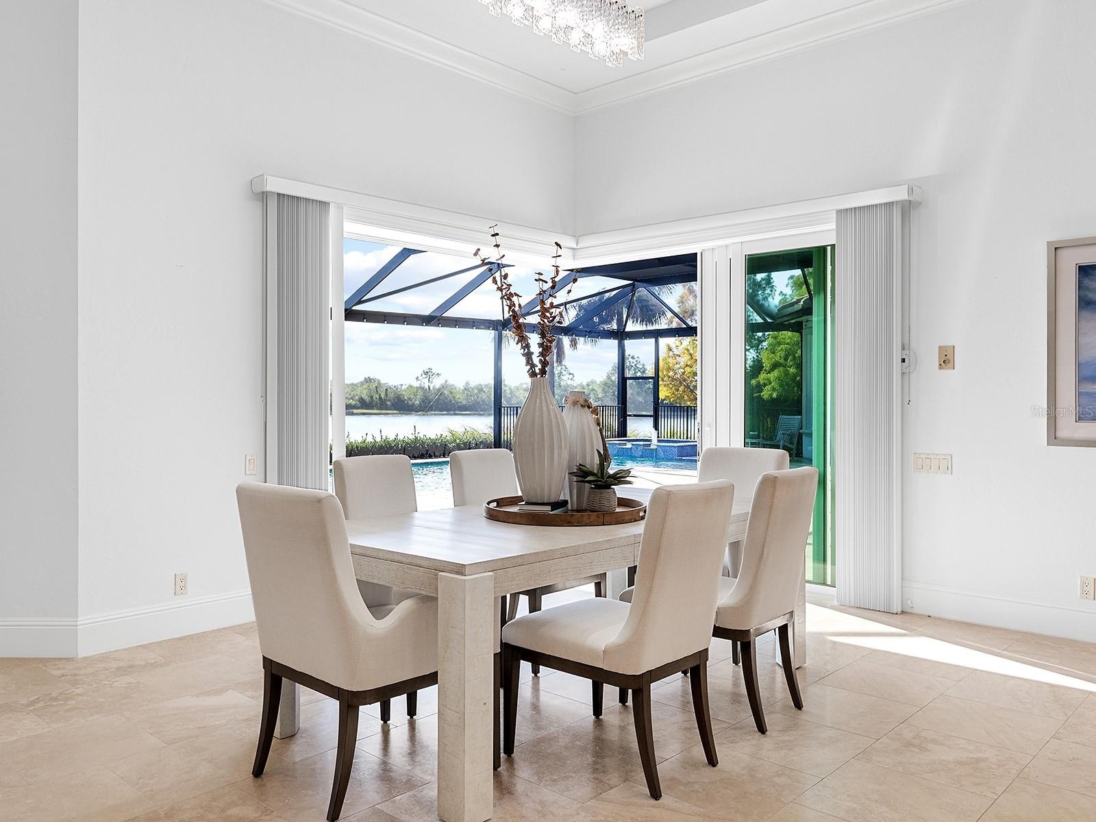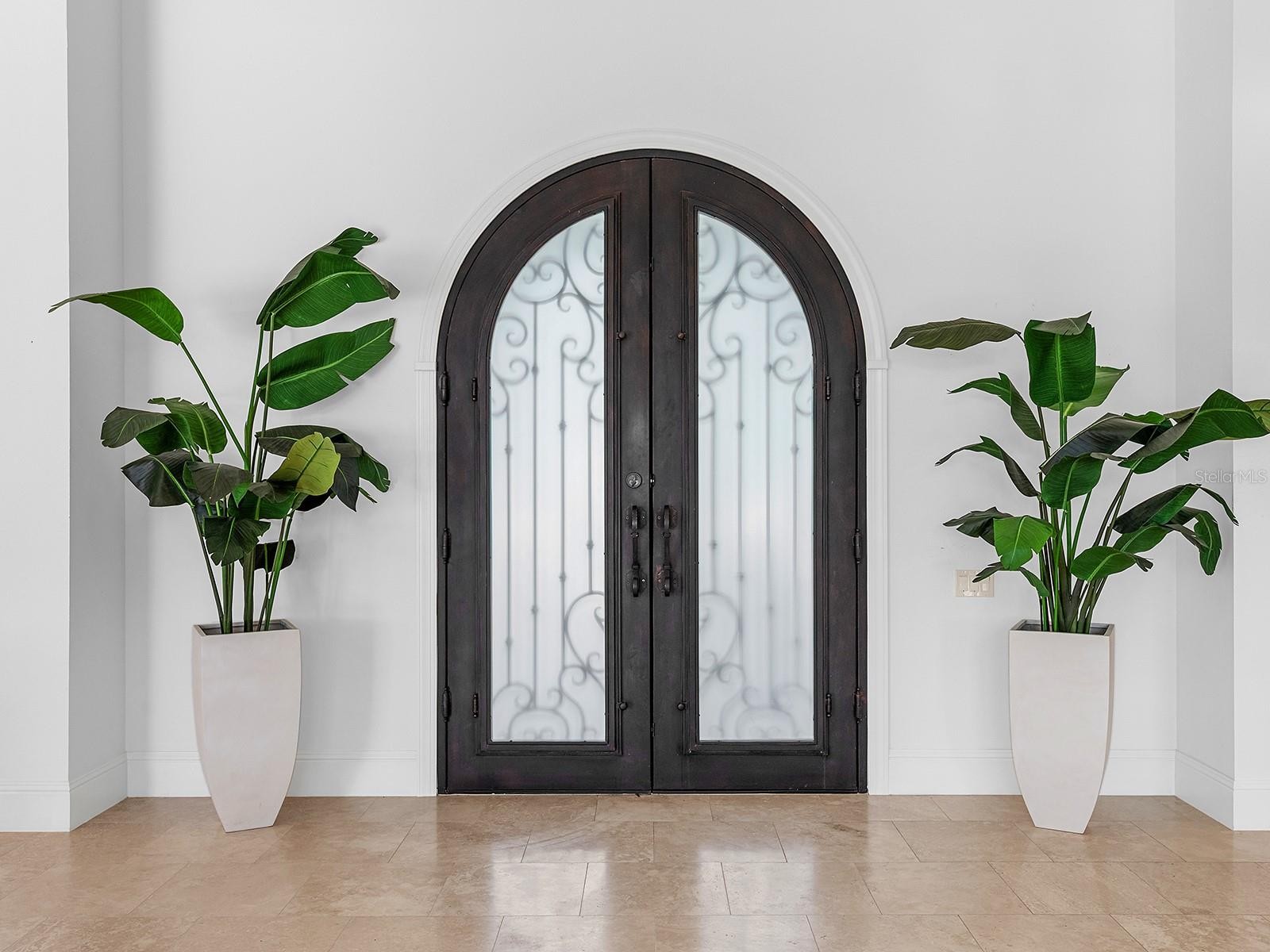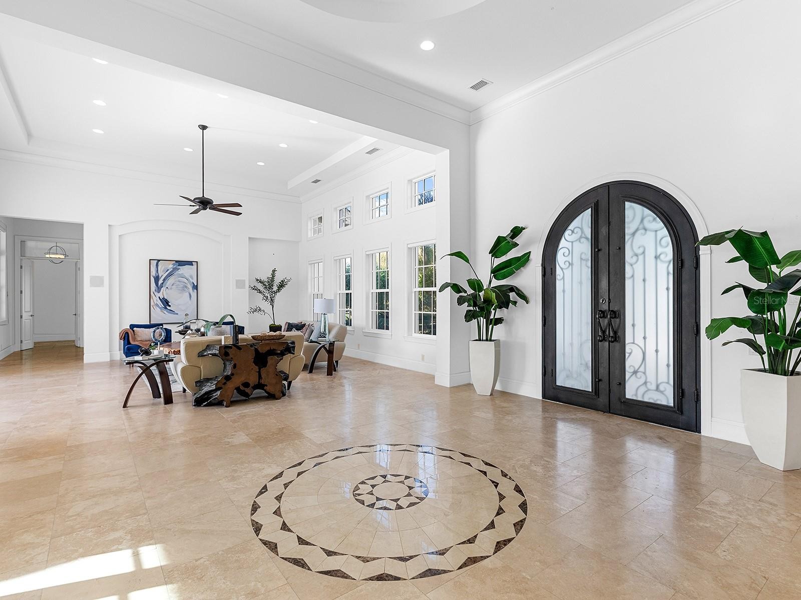 Poised to capture sweeping southeast-facing lake views, this impeccably designed Arthur Rutenberg residence presents a refined interpretation of indoor-outdoor living within the prestigious Concession community. Thoughtfully sited amid lush landscaping, the home blends architectural elegance with everyday comfort, creating an atmosphere that feels both elevated and effortless from the moment you arrive. Iron-and-glass double doors open to a luminous interior where coffered ceilings, polished travertine floors, and expansive pocketing sliders draw the eye outward to the pool and long water views beyond. The great room is both dramatic and inviting, offering generous space for entertaining while maintaining a natural connection to the outdoors. Anchoring the home, the gourmet kitchen is as functional as it is striking, featuring custom cabinetry with under- and over-cabinet lighting, a substantial floating island, quartz countertops, a discreet walk-in pantry, Wolf gas cooktop, a beverage cooler, and premium stainless-steel appliances. Just beyond, the formal dining room and adjoining bar provide an elegant setting for elevated gatherings and intimate dinners alike. A private office offers a refined workspace, while a spacious gym overlooks the lake, creating an inspiring backdrop for an active lifestyle. Three generously sized guest suites are thoughtfully positioned to ensure privacy, separate from the serene owner’s retreat. The primary suite serves as a true sanctuary, complete with a sitting area, expansive walk-in closets, and a spa-inspired bath with dual vanities, a soaking tub, and a walk-in shower. Outdoors, the expansive lanai becomes a natural extension of the living space, finished with travertine pavers, a fully equipped outdoor kitchen, and a resort-style saltwater pool and spa with sun shelf and fountains, all overlooking the tranquil lake. Whether hosting guests or enjoying a quiet evening at home, the setting offers a sense of everyday escape. The home has been thoughtfully enhanced with a suite of recent upgrades focused on comfort, efficiency, and peace of mind, including new air-conditioning systems, a whole-house generator, upgraded security with Ring doorbell, a Culligan reverse osmosis kitchen system, and a designer sound system. Outdoor enhancements include double-sealed travertine, a new patio cage, electric hurricane shades, accent lighting, wiring for an outdoor television, refreshed landscaping, and updated irrigation with front landscape lighting. Additional improvements include new flooring in a guest bedroom, upgraded electrical in select rooms, garage ceiling storage racks, and added utility connections. Smart home technology seamlessly controls lighting, security, sound, and climate, while the 0.70-acre homesite, enclosed by an iron fence, adds both privacy and presence. The Concession, home to the PGA Tour World Golf Championship and Senior PGA Championship is one of the most prestigious golf communities in the country and provides a serene environment.