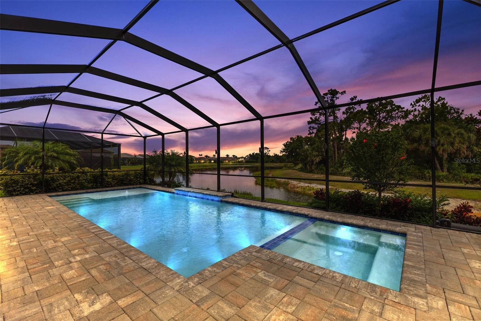 BEST priced per square foot home in community! You could not build this home with its upgrades for this price! Over $300,000 in upgrades alone! Every inch of the home has been built for luxury living and ease of entertaining. As you step through the grand entryway, you’re immediately greeted by soaring ceilings, abundant natural light, and expansive open-concept living spaces designed for both relaxation and entertaining. Two master suites downstairs each offering spa-inspired bathrooms, generous walk-in closets, and there are also two additional guestrooms downstairs so 4 of the 5 bedrooms are downstairs with a 3rd potential master suite and huge loft area upstairs. Home would be great for a large family or multigenerational living. Let’s not forget the heart of the home is the chef’s kitchen—complete with high-end appliances, large pantry, custom cabinetry, and a HUGE island that flows effortlessly into the elegant dining and living areas that overlook the pool. Whether it’s a quiet night in or a lively gathering, this space is designed to impress. Imagine relaxing by the pool on a breezy night while you enjoy the most amazing sunsets right in your very own backyard. Once you Step outside to your private resort like backyard you will be in awe of the beautifully landscaped yard and your waterfront view that surrounds a sparkling pool and spa perfect for cooling off or soaking up the Florida sunshine. The spacious patio invites year-round outdoor living with plenty of room to lounge, dine, and unwind and of course the BEST views of our amazing southwest Florida sunsets!! Home is located in the exclusive gated community of Oasis in desirable Wellen Park and just a short drive to top rated beaches. Worry free lifestyle with exterior grounds maintenance included in the HOA dues and storm proof impact resistant windows and doors throughout home. Enjoy the charm of this smaller community with friendly neighbors. Set in a secure, meticulously maintained gated community, residents enjoy peace of mind and premium amenities—all of this and just minutes from world-class beaches, dining, and entertainment AND NOT IN A FLOOD ZONE! This is more than just a home—it’s a lifestyle. Schedule your private tour today and experience waterfront luxury at its finest. .