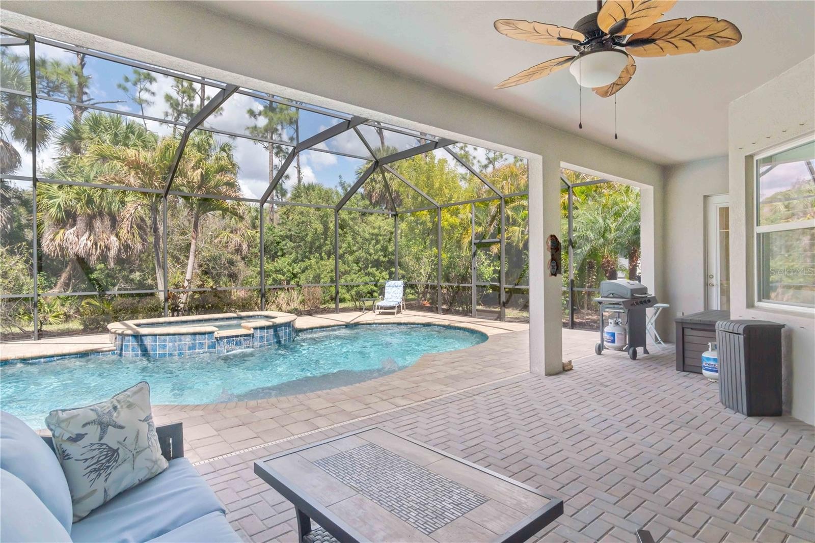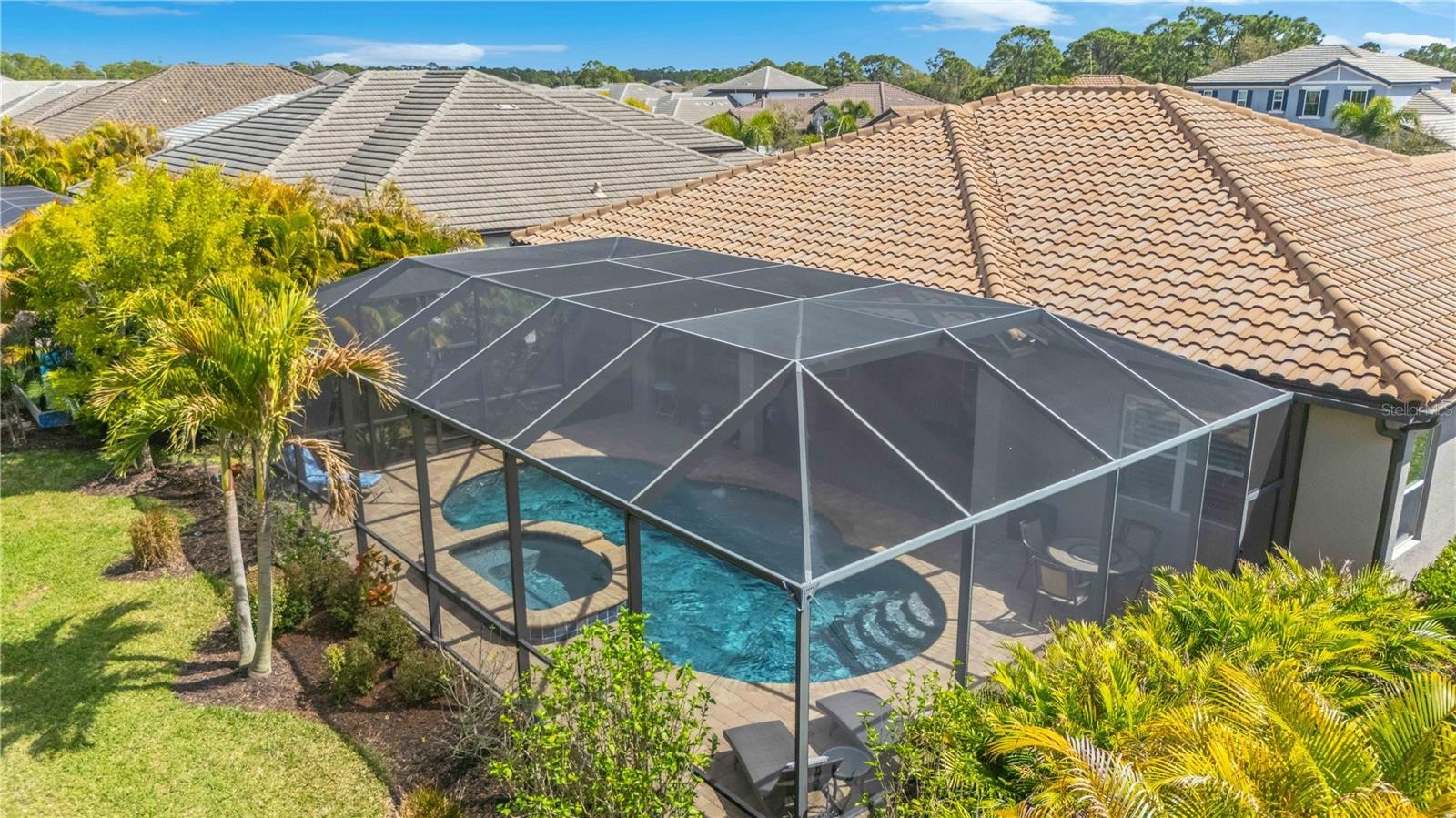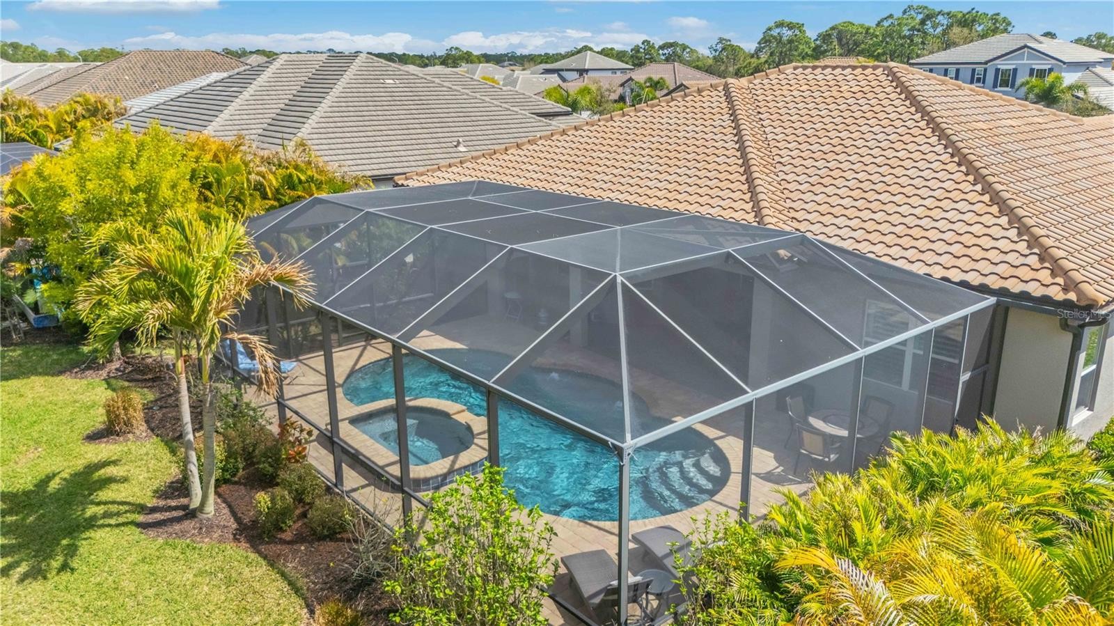 Welcome to your piece of paradise in the secluded and upscale gated community of The Oasis in Wellen Park! Upon arriving at your new home, you will be captivated by the stunning curb appeal, mature landscaping, paver driveway, and tile roof. Once inside, you are greeted by an open floor plan and instant views of your stunning pool! Don’t settle for lower tier finishes, this home has high ceilings throughout, crown molding, quartz counters throughout and countless upgrades such as the built-in convection oven, induction cooktop, plantation shutters, and more. The living and dining rooms are larger than usually found and there is an enclosed den that can instantly be utilized as a private office (or 4th bedroom). The primary suite is very spacious with his & her closets, an oversized bath area with dual sinks, and a large walk-in shower. On the opposite side of the home, you will find the 2nd and 3rd bedroom along with the guest bathroom which has a shower/tub combo. Overall, this home is designed for privacy as well as spectacular outdoor living and entertaining! A unique added bonus of this home includes a flex room towards the back of the house that can be used as a craft/game room, second office/private study area or perhaps the walk-in pantry of your dreams. There is even a 3rd bathroom attached to the flex room which also provides direct access to the lanai. Once outside you will likely spend most of your time relaxing by your heated saltwater pool, complete with what may be the largest hot tub you’ll find! The large paver deck, backyard privacy, and dual LED pool lights will have you enjoying everything that this tropical oasis offers. Unlike other homes nearby, this one is not near the main road, ensuring peace and quiet. It is also located in zone X and therefore does NOT require flood insurance! The neighborhood is pet friendly, with sidewalks that lead to a nearby dog park, community clubhouse, pickleball courts, and the community pool. Located just minutes from Wellen Park, the Atlanta Braves Stadium, Downtown Wellen, Gulf beaches, shopping, and fine dining, this area offers everything you could want. Ask your agent for the fully interactive 3D tour and prepare to fall in love!