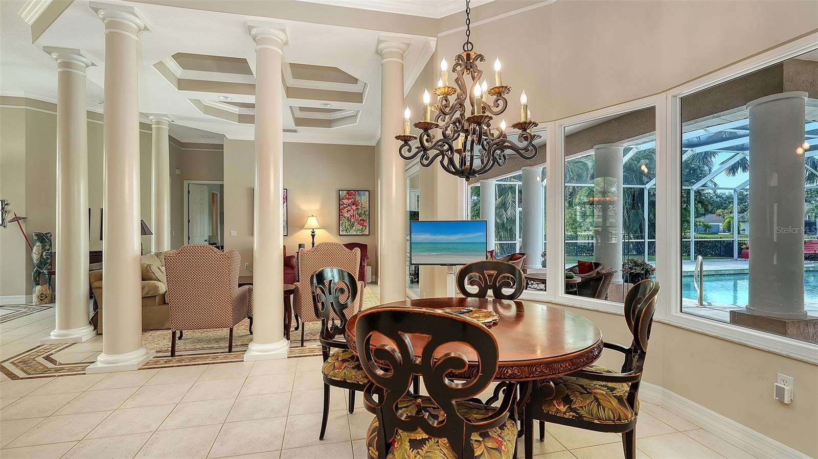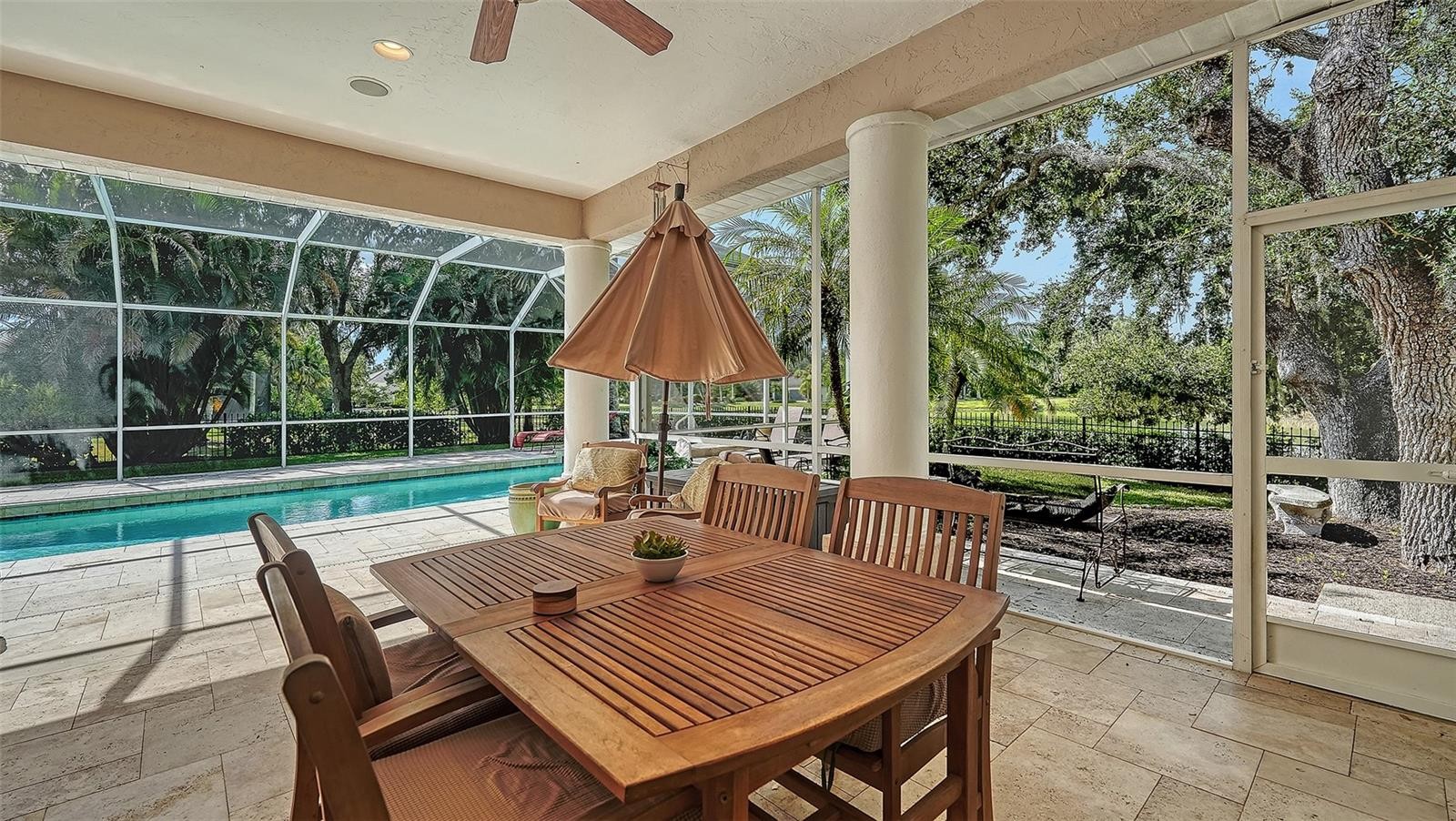 Set on more than half an acre with peaceful lake views, this spacious residence in the gated community of Laurel Oak Estates blends thoughtful updates with generous indoor–outdoor living. Designed for comfort and flexibility, the single-story layout offers 4 bedrooms, an office, formal living and dining rooms, a den, and a family room—ideal for owners seeking space to spread out or host. A long list of major improvements completed since 2021 brings lasting value and peace of mind. A new roof (2021), two HVAC systems, new hurricane-impact windows and sliders (2023), updated propane gas lines tied to a buried 250-gallon tank (serving the range and fireplace), a new backyard fence, a resurfaced pool, and a travertine pool deck elevate both efficiency and style. The expansive screened lanai—with a built-in grill, sink, and refrigerator—creates an inviting backdrop for year-round outdoor dining overlooking the private, park-like yard. Inside, the remodel continues with a refreshed chef’s kitchen featuring quartz countertops, refinished cabinetry, a reconfigured single-level island, and newer refrigerator, dishwasher, and range. Additional upgrades include resurfaced circular and side driveways, an enhanced front walkway, and an impressive 300+ bottle refrigerated wine closet with custom glass doors and a WhisperKOOL SC PRO climate system—perfect for collectors. The primary suite offers a relaxing retreat with lake views and direct outdoor access. Three additional bedrooms—including the oversized 4th bedroom—sit in a split arrangement for privacy. Tile flooring, high ceilings, crown molding, built-ins, and ample natural light highlight the home’s inviting flow. A 2-car side-entry garage and plenty of guest parking round out daily convenience. Residents of Laurel Oak Estates, a guard-gated community with meticulously maintained streets and lush landscaping, may join Laurel Oak Country Club through optional membership for access to two championship golf courses, tennis, pickleball, aquatics, fitness, social dining, and vibrant member events. Location is another standout. This property sits moments from Celery Fields, Rothenbach Park, Waterside Place at Lakewood Ranch, UTC’s dining and shopping district, and top-tier schools. Downtown Sarasota, SRQ Airport, cultural venues, and Gulf beaches are all within easy reach—making this well-appointed home the perfect blend of privacy, convenience, and Florida living.