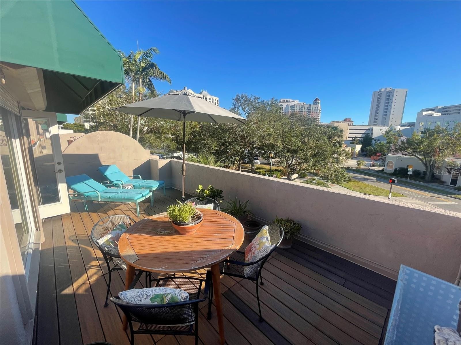Downtown Sarasota Villa with Rooftop Terrace! Exterior renovations are now complete! A rare offering in the heart of downtown Sarasota, this private villa in the coveted Library Mews community seamlessly blends timeless charm with modern convenience—just steps from the city’s finest dining, shopping, arts, and culture. Tucked behind a gated brick courtyard, this two-story residence offers the feel of a hidden retreat while placing you moments from it all. Step inside to soaring ceilings, rich wood floors, and sun-filled living spaces designed for both comfort and connection. The beautifully updated kitchen features crisp white cabinetry, quartz countertops, stainless steel appliances, and an island with bar seating—perfect for casual meals or entertaining. The main level also includes a spacious living room, formal dining area, a flexible bonus room ideal for a home office or den, and a convenient powder bath. Every space is thoughtfully designed to maximize light, function, and flow. Upstairs, two en-suite bedrooms offer peaceful separation and privacy. The primary suite boasts vaulted ceilings, generous closet space, and tranquil treetop views, while the second suite is equally well-appointed—perfect for guests or additional family. Crowning the villa is an expansive private rooftop terrace, offering partial bay views and sweeping downtown vistas—a true rarity in this location. Whether enjoying a quiet sunrise or hosting friends under the stars, this outdoor space elevates everyday living. Additional highlights include a private one-car garage with gated access, interior laundry, and low-maintenance living with a boutique community feel. From the Sarasota Opera House and Selby Library to Whole Foods, Marina Jack, and the Bayfront—everything you love about downtown Sarasota is right outside your door. This is more than a villa—it’s a lifestyle. Don’t miss your opportunity - book your showing today!