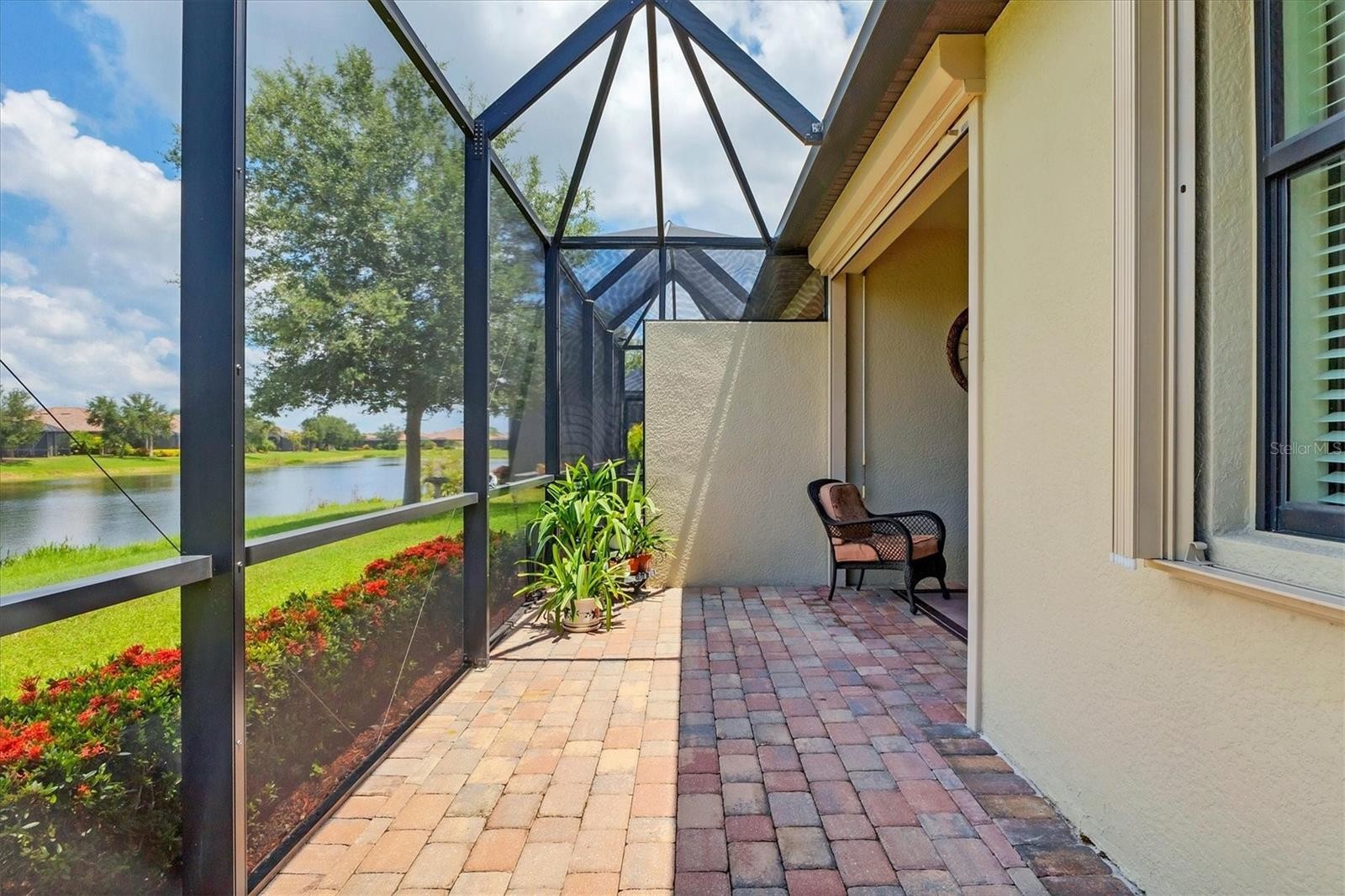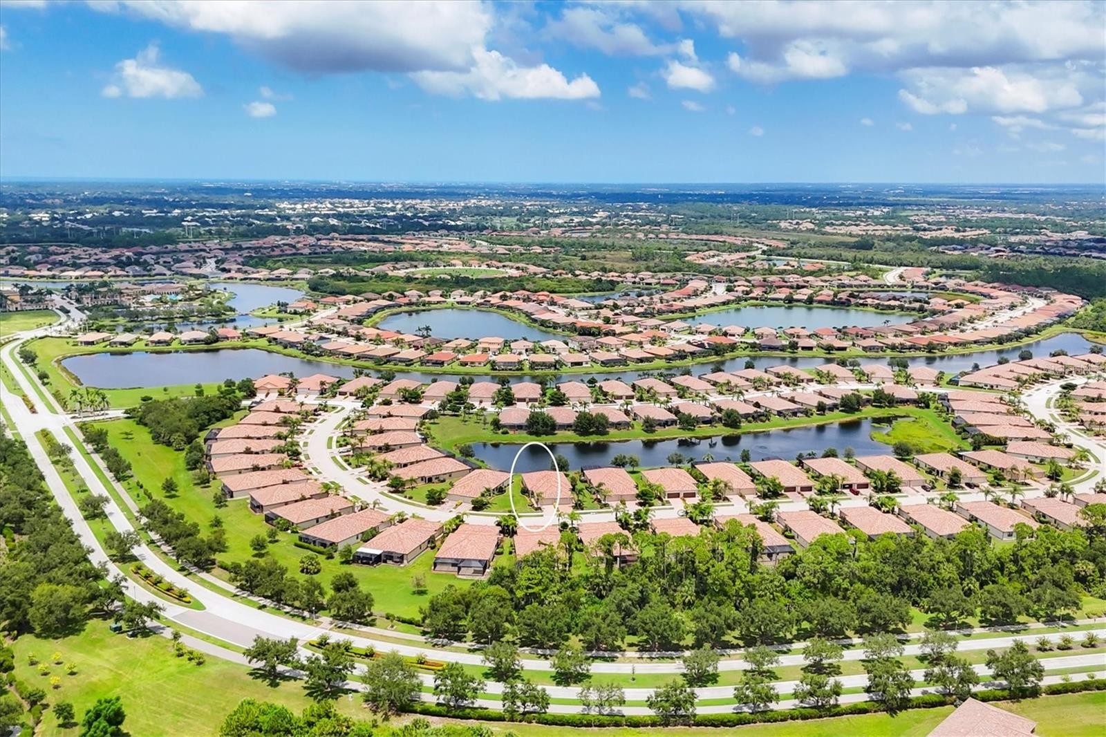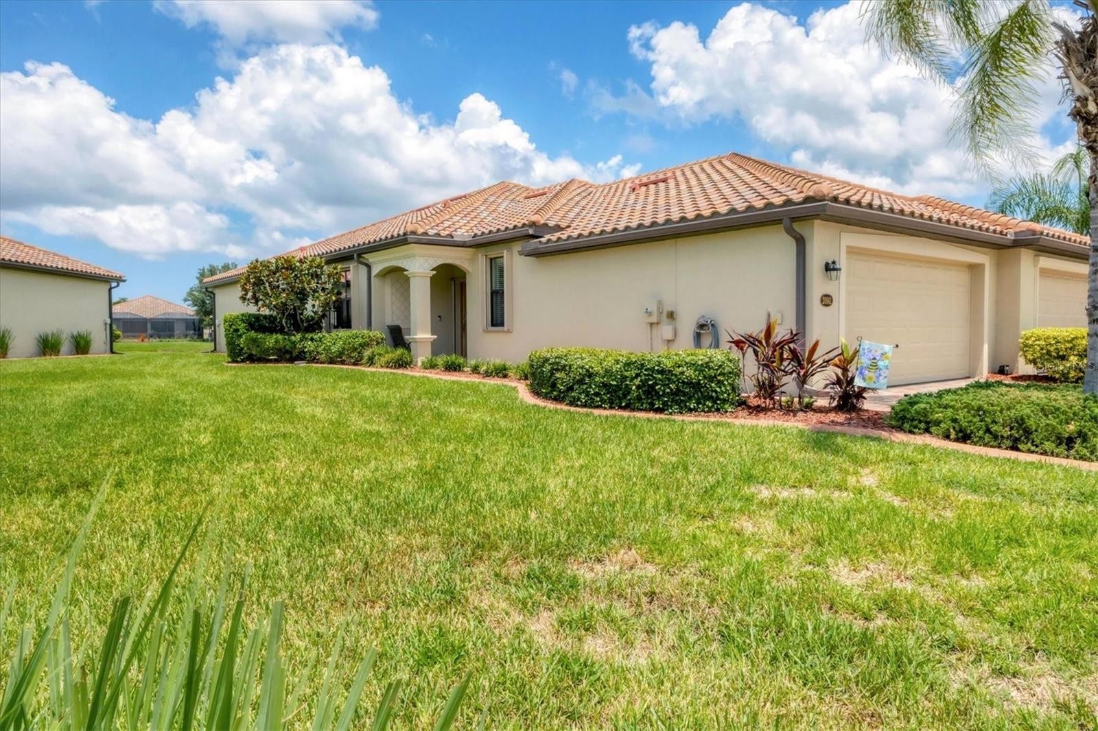 Welcome to Paradise in Gran Paradiso's Villagio. Well taken care of Villa with a gorgeous Pond View. Fall in love with this highly sought-after, resort-style community of Gran Paradiso’s Villagio in The West Villages in Wellen Park. Offering nearly 1,600 sq. ft. of well-designed living space, this 2-bedroom, 2-bath plus a den/office villa is perfect as a year-round residence, seasonal getaway, or investment property. Step inside to find an open, split floor plan that provides comfort and privacy for you and your guests. The inviting interior boasts Florida-inspired paint hues, crown molding throughout the home, adding a touch of elegance and charm. Skylights flood the space with natural light, creating a bright and welcoming ambiance throughout the day. The spacious kitchen features: Granite countertops, tumbled marble tile backsplash, stainless steel appliances, ample cabinet storage, breakfast bar overlooking the open dining and living areas. Enjoy indoor-outdoor living with sliding glass doors that open to your extended screened lanai—perfect for relaxing with a pond view and Florida sunshine. The primary suite is a private retreat with an en-suite bathroom, dual sinks, private water closet, large soaking tub, and walk-in tiled shower. Additional features that make this villa stand out from the others include a 2-car attached garage, a dedicated laundry room with built-in sink and cabinetry, outside curbing and landscaping, accordion pull down storm shutters on lanai, front door and all windows, 2 tubular skylights which fill the living room and guest bath with light even on rainy days, engineered hardwood in primary bedroom and den, paddle fans in both bedrooms, den, living room, and kitchen, beautiful pond view with an extended lanai, and a 220V outside outlet installed for a generator for your peace of mind. Also, newer microwave, garbage disposal and washing machine! Community Highlights: Gran Paradiso offers a vibrant lifestyle with world-class amenities, including: Resort-style pool & spa, Full clubhouse with a state of the art fitness center, pickleball, tennis, and basketball courts, walking and biking trails, and on-site activities director, and cable & internet all included in the HOA! Located just minutes from downtown Wellen Park (dining, shopping, concerts, and yoga on the great lawn), CoolToday Park, and spring training, home of the Atlanta Braves. Venice’s pristine beaches and historic downtown are just 20 minutes away. Enjoy the ultimate Florida lifestyle with peace, tranquility, and pond views, all in a maintenance-free, gated community. Just bring your bathing suit—this villa is ready for you! The villas were painted in 2024 and roof cleaned in 2024. NOTE: CDD fee of $1,629.67 is included in the taxes. HOA fee also includes cable and internet. Welcome Home to Gran Paradiso—where every day feels like a vacation!