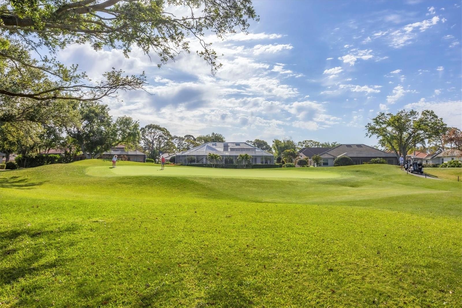 Price Reduction! Welcome to this stunning 4 bedroom/ 3 bathroom updated custom home in the much sought after Calusa Lakes community. Beautiful brick pavers set the tone as you pull up to the exterior of the home. Entering the front door you will see the hickory wood flooring that continues throughout the house, 12 foot ceilings that are framed by painted crown molding. Both the spacious Living & Dining Rooms have been recently painted with custom drapes. The sliding glass doors open up and disappear showcasing the large swimming pool and golf course views. The updated kitchen boasts numerous cream glazed wood cabinets, new quartz counters with spaces for 3 counter height bar stools, newer GE Cafe stainless appliances, a side sink/coffee bar. The Family Room is spacious and highlighted by many windows that flood the room with natural lighting. A side door leads out to a small patio that is used for grilling. The bright & airy Primary Bedroom has a tray ceiling as well as sliding glass doors out to the lanai. Two closets complete this relaxing retreat. The spa like updated bathroom has lovely natural wood cabinetry with quartz counter tops. The shower is oversized and is next to a free standing tub & chandelier! The second bedroom in this wing is currently being used as an office and is conveniently across the hall from the pool bathroom. Bedrooms #2 & #3 are in the guest wing off the kitchen and have a door for privacy from the rest of the home. This wing has a full bathroom with a double vanity and walk-in shower. The lanai has brick pavers surrounding the resurfaced heated swimming pool. The southern exposure guarantees afternoon sun for sunbathing, cookouts, and watching the sunset. Great partial lake views along with the 10th green and 11th tee. Membership to the Golf Course is optional. The tennis/pickleball courts are open to all residents as well as the restaurant located in the Golf Pro Shop. This community is close to the Legacy Trail, shopping, Venice Island, I #75, airports, both Nokomis Beach & Venice beach, public boat ramps and marinas. Run don't walk to see this move-in ready home perfect for full time or seasonal owners. Paradise awaits!