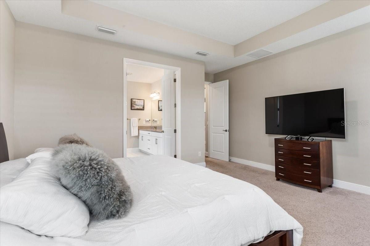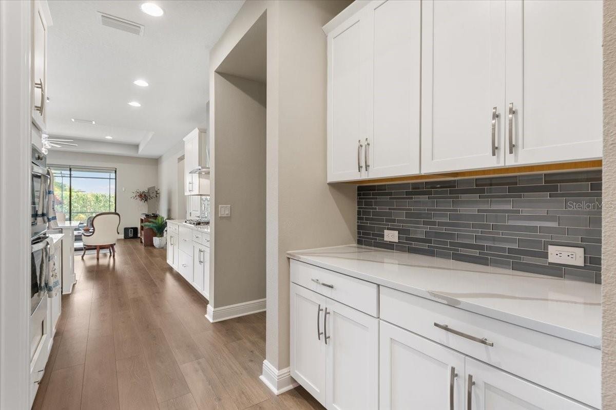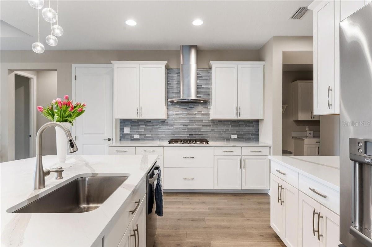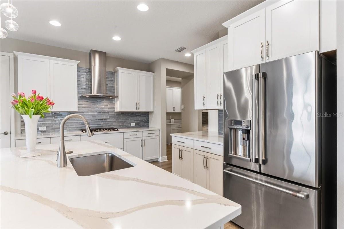 Modern & Pristine, this exceptional 4-bedroom, 3-bath residence with a sparkling pool and spa captures serene water views and effortless style. Thoughtfully upgraded throughout, the home showcases wood-look plank flooring, tray ceilings, designer lighting and fans, pendant accents, and added recessed illumination for a warm, modern glow. Expansive sliding glass doors open wide to the lanai for seamless indoor-outdoor living. Each bath is finished with solid wood cabinetry, Cambria quartz countertops, and sleek frameless glass enclosures. A generously sized laundry and utility room, dedicated pool bath, mudroom/drop zone, and rain-glass front entry add both function and flair. The kitchen is a true centerpiece—featuring Cambria quartz surfaces, a stylish tile backsplash, shaker cabinetry, and GE Profile stainless steel appliances, including a gas cooktop with range hood and a wall-mounted double oven topped with convection microwave. A farmhouse sink, under-cabinet lighting, and an oversized walk-in pantry complete the space with both beauty and practicality. Step outside to a screened, paver lanai where a gas-heated pool and spa shimmer overlooking tranquil water views. The tandem three-car garage offers epoxy flooring, and the paver driveway enhances the home’s crisp curb appeal. ***BONUS: A leased solar panel system helps keep electric costs in check.***HOA AMENITIES Include: Community pool, outdoor kitchen, playground, dog park, and pickleball courts.***LOCATION HIGHLIGHTS: Convenient access to SR-64 and just moments from top-rated Lakewood Ranch schools—Gullett Elementary, Lakewood Ranch High, Mona Jain Middle, LECOM, and Manatee Tech East Campus. You’re minutes from shopping, dining, fitness studios, salons, vibrant nightlife, downtown Sarasota, Sarasota International Airport, award-winning Gulf beaches, Ellenton Outlets, and UTC’s premier shopping and dining scene.
