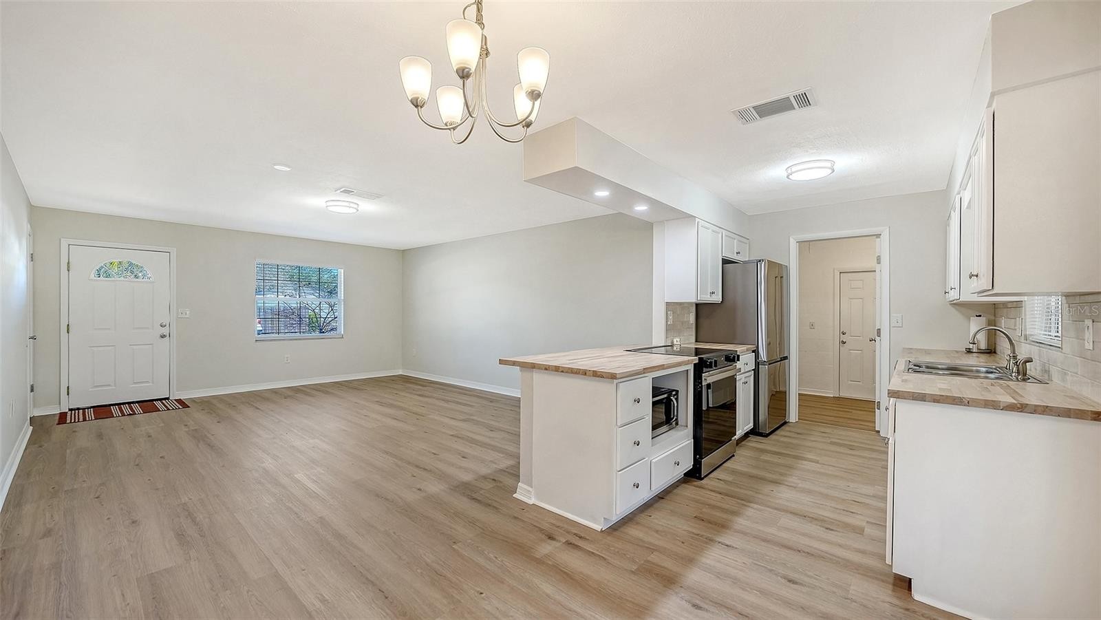 Here’s a polished, playful listing that keeps the luxury vibe without feeling stiff—very Sarasota easy living and big-ticket peace of mind comes with a brand-new roof. This totally remodeled 3-bedroom, 2-bathroom home with a 1-car garage checks all the boxes. Luxury vinyl flooring flows through the main living areas, while plush new carpet keeps the bedrooms cozy and quiet. The kitchen is a standout, featuring custom butcher block countertops, a complementary backsplash, and warm wood cabinetry—equal parts stylish and inviting. French doors lead straight from the kitchen to an oversized screened lanai, perfect for morning coffee or evening unwinding. Out back, enjoy a fully fenced yard with a convenient gate offering direct access to the Legacy Trail—ideal for daily walks, bike rides, or jogs.The primary suite includes a tiled walk-in shower. Set in a friendly neighborhood just minutes from shopping, dining, and Downtown Sarasota, this home truly has it all. Whether you’re a snowbird, first-time buyer, or looking to downsize—there’s nothing to do but move in and enjoy.