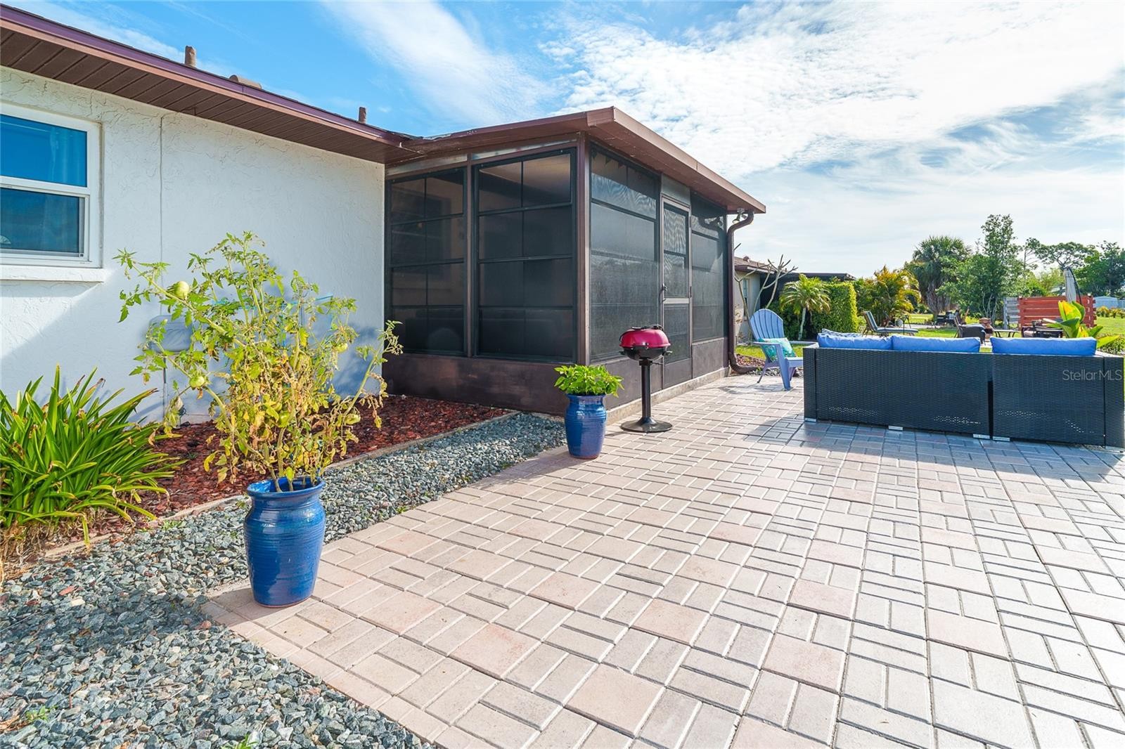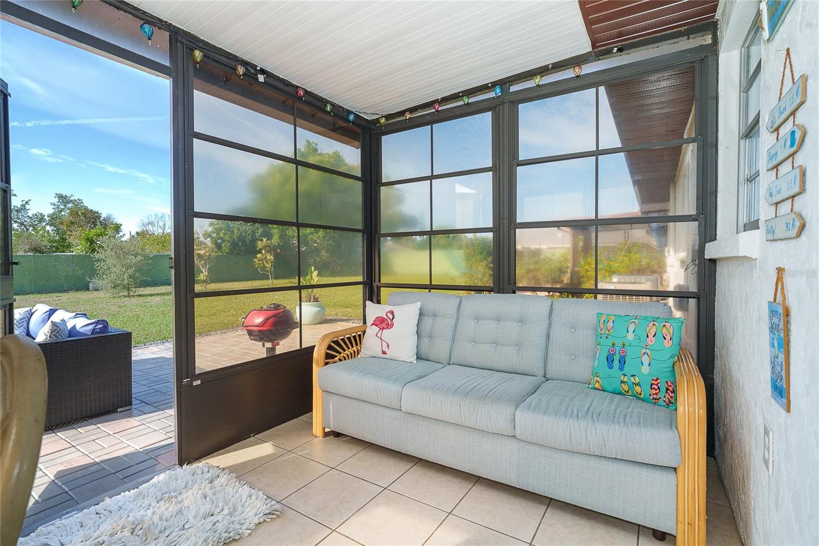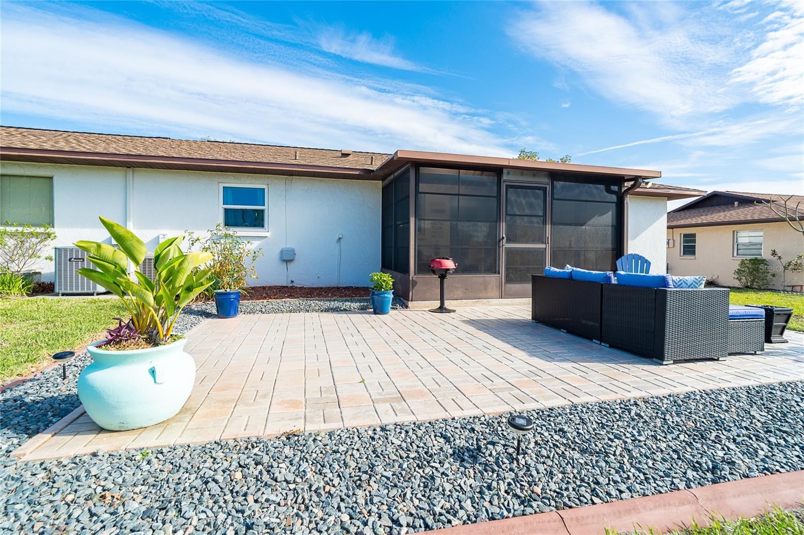 Quiet and quaint best describes this villa/duplex located in the peaceful community of High Point. With just 44 residents, this charming, turnkey-furnished 2-bedroom, 2-bath villa/duplex offers the perfect blend of comfort, style, and convenience. Beautifully maintained and thoughtfully updated, this home is truly move-in ready. Step inside to a light-filled living room featuring rich bamboo flooring and elegant window treatments on newer (2022) windows—creating a warm and inviting space ideal for both relaxing and entertaining. The kitchen is designed with the home chef in mind, offering ample granite counter space, a double sink, and a convenient pass-through window to the enclosed lanai. Both bedrooms are tastefully appointed with vinyl plank flooring and ceiling fans, while the dining area seamlessly connects the kitchen and living room, with sliding doors leading to the lanai. The enclosed lanai, complete with easy-open screens, provides a tranquil retreat overlooking your private backyard—perfect for morning coffee, afternoon reading, or simply enjoying the Florida lifestyle. Outdoors, a spacious brick paver patio offers additional room for grilling, hobbies, or soaking up the sunshine. The home also features ample interior storage and a single-car garage that includes a second bathroom (was not permitted) with commode, shower, washer and dryer, and shelving. All furnishings are included (with minimal exclusions), making this an effortless move-in opportunity. Residents enjoy a short distance to the heated community pool, as well as convenient access to guest parking and community mailboxes. Ideally located near shopping, dining, golf courses, public boat ramps, and world-class fishing and boating, this home also places you just minutes from beautiful Gulf beaches and the charm of Historic Dearborn Street, featuring Pioneer Park, a popular farmers market, local shops, restaurants, and live entertainment. Quarterly dues cover lawn mowing, full exterior maintenance (including roof), exterior and interior building insurance (excluding contents), basic cable, and access to the community pool. High Point is deed-restricted, locally managed, and has no age restrictions. Two pets are welcome (see rules and regulations for details). Offering a peaceful setting with easy access to everything the area has to offer, this delightful home is the perfect full-time residence, seasonal retreat, or investment opportunity. Schedule your private showing today—this one is a must-see and won't last long!