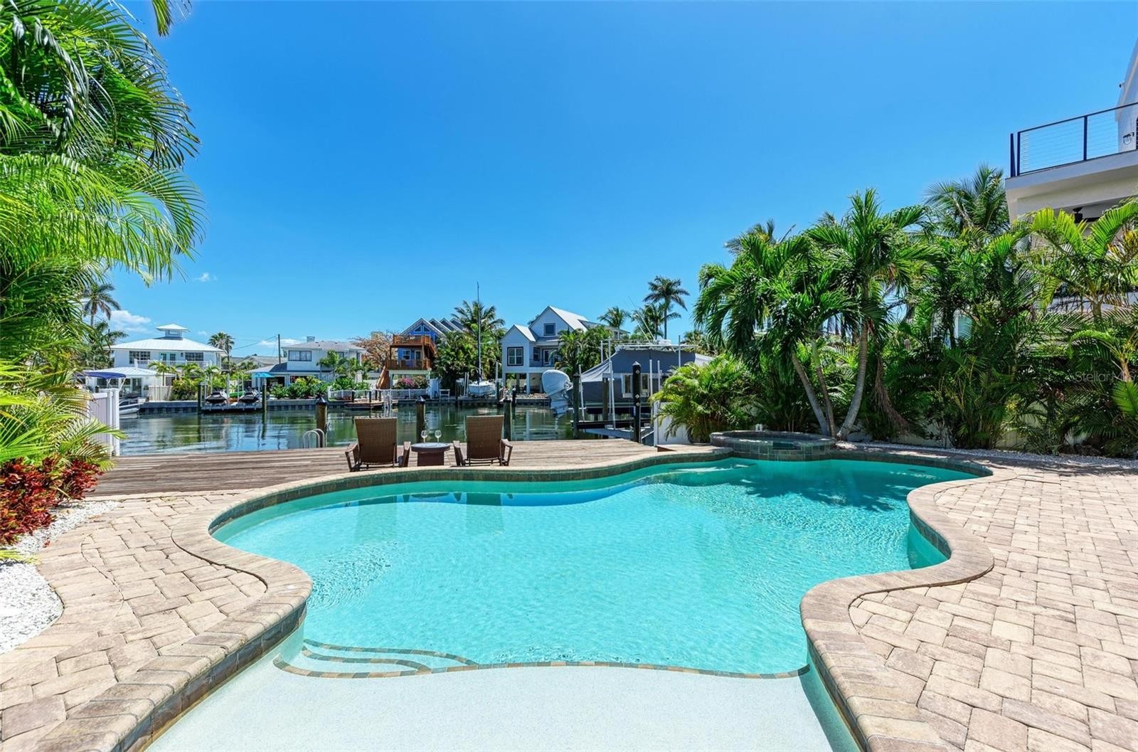 Luxury Waterfront + Dock | 3-Min Walk to Beach -Exceptional waterfront retreat perfectly positioned in the heart of Anna Maria Island. Just a three-minute stroll to the soft sugar sands of Manatee Beach, this stunning five-bedroom, three-and-a-half-bath residence delivers coastal luxury at every turn—complete with a private dock with ladder where manatees often glide by, a heated pool and spa, and a show-stopping rooftop deck with Gulf and Bay views. Designed for unforgettable gatherings, Coral Castle seamlessly blends upscale comfort with relaxed island charm! Outdoor Living at Its Finest, the rooftop deck is the crown jewel of Coral Castle—offering breathtaking sunrise and sunset views over both the Gulf and Bay. Start your mornings with coffee and ocean breezes or unwind in the evening with a cocktail as the sky glows in brilliant island hues. The tropical backyard is a private sanctuary featuring a heated pool, spa, lounge seating, and outdoor grill, perfect for post-beach relaxation or entertaining under the stars. From the private dock, enjoy peaceful water views—and keep watch for friendly manatees passing by, an unforgettable hallmark of island living. Stylish Interiors Made for Comfort-Step inside to a bright, open-concept living space filled with natural light and coastal elegance. The living room offers plush seating, a flat-screen TV, and sliding glass doors that open directly to the outdoor patio—blurring the line between indoor and outdoor living. The chef-inspired kitchen is fully equipped with stainless steel appliances, generous counter space, and a wine fridge, making meal prep effortless. Gather inside at the dining table or dine alfresco beneath the covered patio for a true island experience. Sleep in Luxury- Primary Suite: King bed, private balcony, vaulted shiplap ceiling, walk-in closet, spa-style ensuite with soaking tub and walk-in shower; Second Bedroom: King bed, Jack-and-Jill bathroom with walk-in shower; Third Bedroom: King bed, Jack-and-Jill bathroom with walk-in shower; Fourth Bedroom: Full bed, Jack-and-Jill bathroom with shower/tub combo; and Fifth Bedroom: Full bed, Jack-and-Jill bathroom with shower/tub combo. Prime Island Location- Enjoy peaceful mornings fishing from the dock or take a short drive to Pine Avenue and Bridge Street, where you’ll discover charming boutiques, local dining, and island favorites. Whether your days are spent boating, lounging by the pool, or soaking in rooftop views, Coral Castle delivers the perfect balance of relaxation and adventure. Every detail is designed to create lasting memories—from manatee sightings to sunset cocktails on the rooftop. This is more than a stay—it’s a true Anna Maria Island experience. Currently operating as a vacation rental with solid history and a strong start to 2026—ideal personal-use + income opportunity.