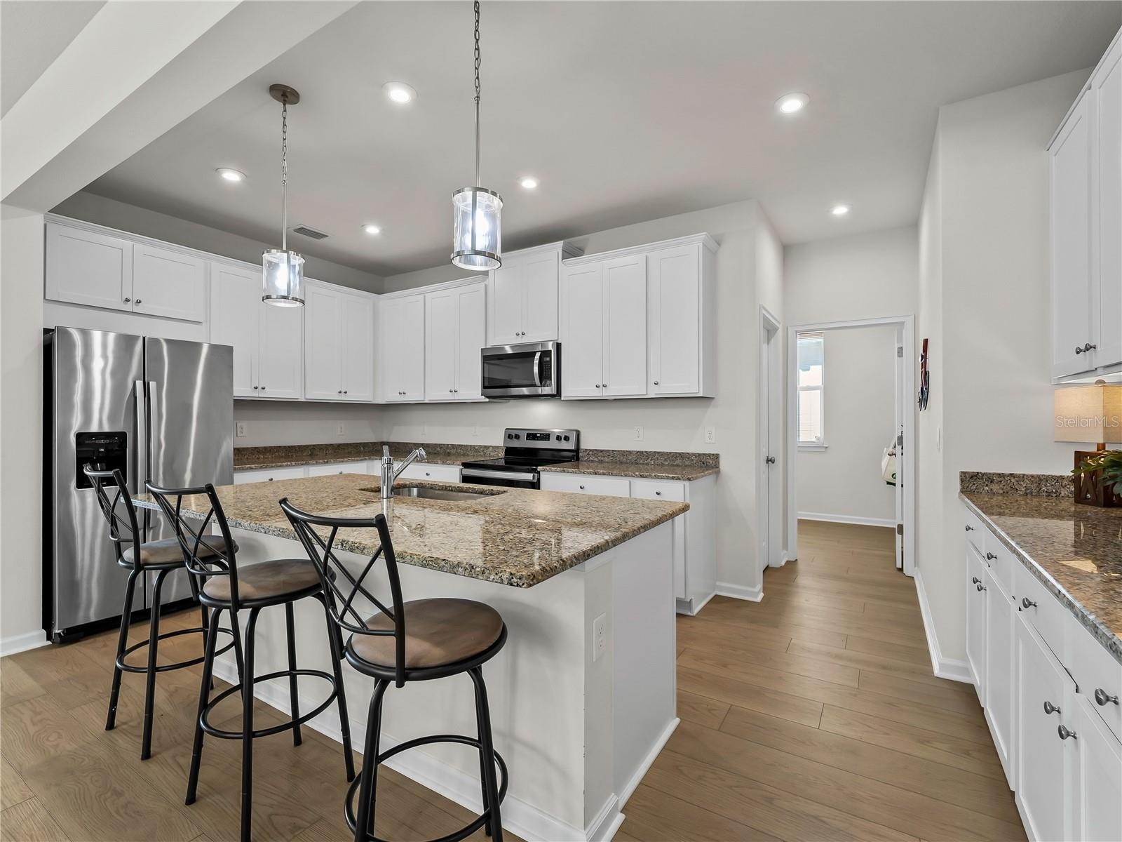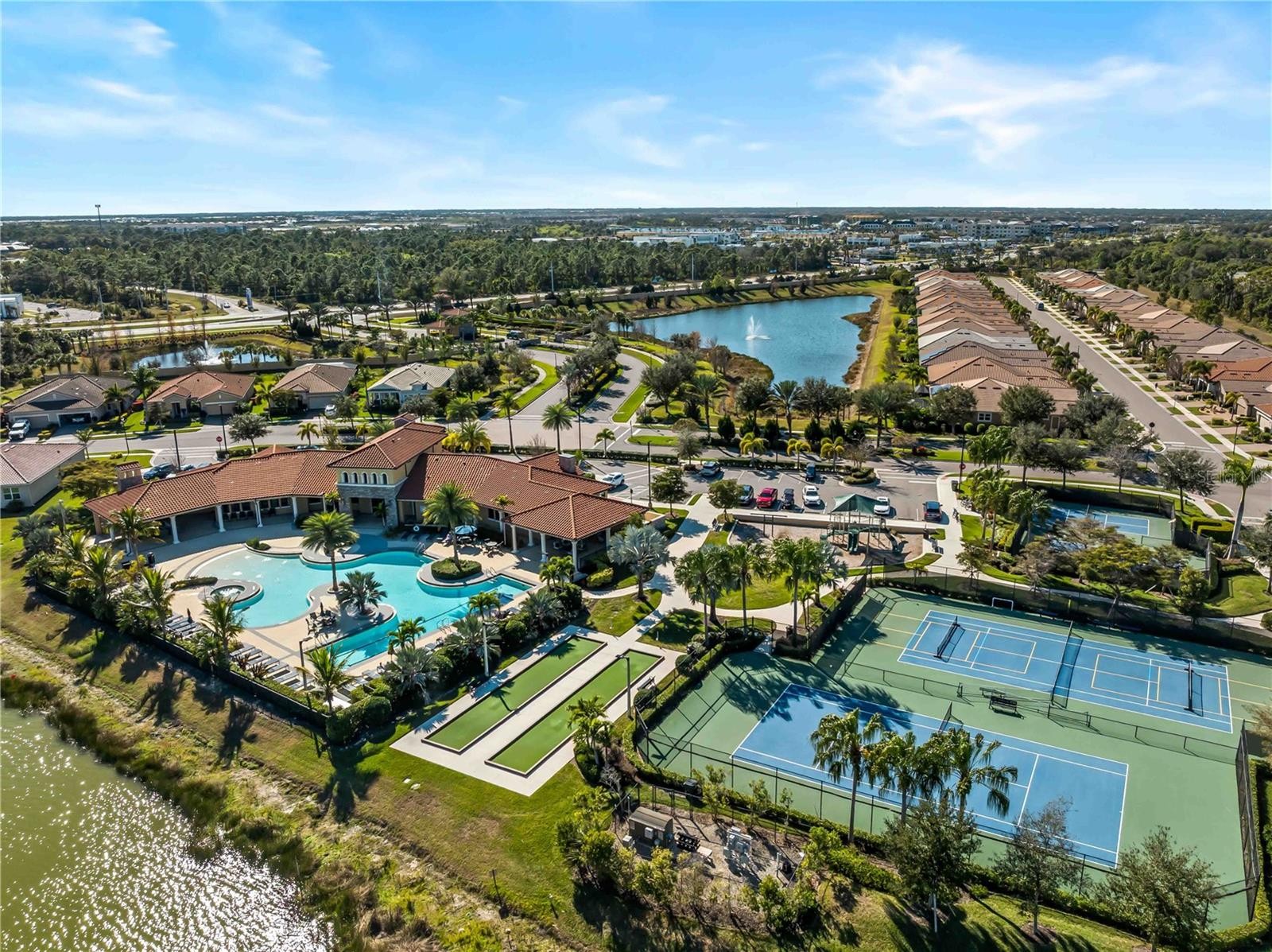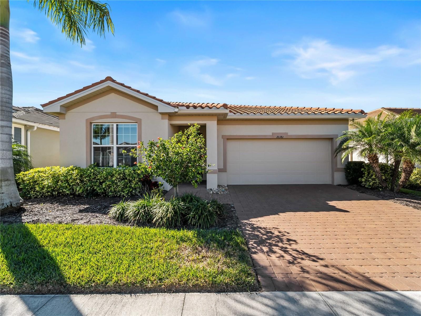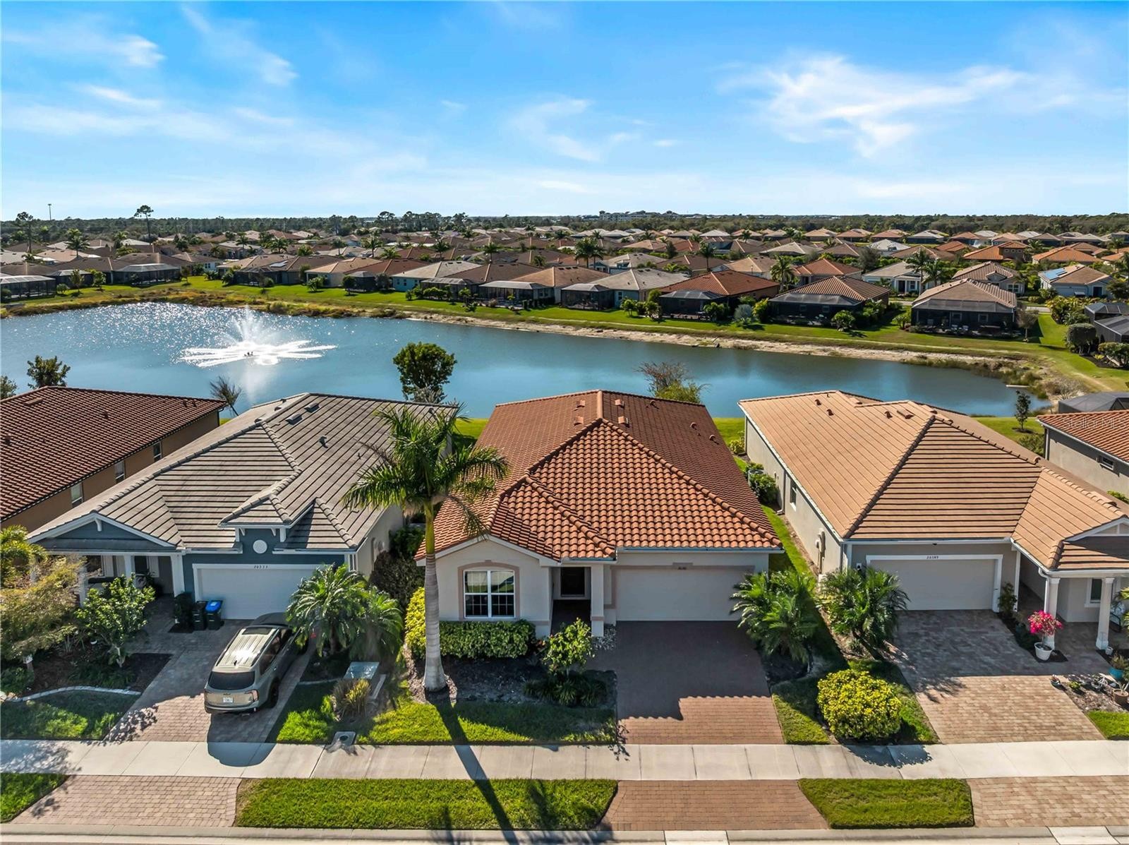 3 BEDROOM PLUS DEN. 2 BATHROOM. LAKE AND FOUNTAIN VIEW. This 3-bedroom plus den, 2-bath lake view home offers a welcoming layout that immediately feels open and easy to live in. A wide foyer guides you through the home, with two guest bedrooms thoughtfully positioned at the front for privacy. Both rooms are filled with natural light, and the guest bathroom sits conveniently between them, ideal for visitors or everyday use. Just off the main hallway, the den is set behind a single French door and works beautifully as a home office, bonus room, or additional bedroom depending on your needs. The kitchen, dining, and living areas flow together naturally, creating a space that feels connected without being overwhelming. The kitchen is bright and timeless with white shaker cabinetry, a large center island, an extended cabinetry wall for added storage, and a generous walk-in pantry. Tucked just behind the kitchen, the oversized laundry room offers plenty of space without interrupting the main living areas. Large windows in the dining area and a three-panel sliding glass door in the living room draw your attention to the pond beyond, bringing in soft natural light throughout the day. Step outside to the screened lanai, where there’s room to gather, unwind, or simply enjoy the peaceful backdrop of the water and fountain. The primary suite is comfortably sized and designed for everyday ease, featuring an impressively large walk-in closet and a well-appointed en-suite bath. Dual vanities, a spacious walk-in shower, and a separate water closet complete the space. With a thoughtful floor plan, inviting natural light, and calming lake views, this home offers a relaxed setting that’s easy to enjoy from the moment you arrive. Residents of Renaissance at Wellen Park enjoy a gated community with resort-style amenities including a clubhouse, fitness center, pool, pickleball courts, tennis courts, and a full calendar of social activities. Just beyond the gates, Wellen Park offers miles of trails, dining and shopping at Downtown Wellen, and spring training at CoolToday Park. Englewood and Manasota Beach are a short drive away, offering easy access to the Gulf, while I-75 provides convenient connections north and south. Several major medical centers and local hospitals are also nearby, adding to the ease of everyday living.