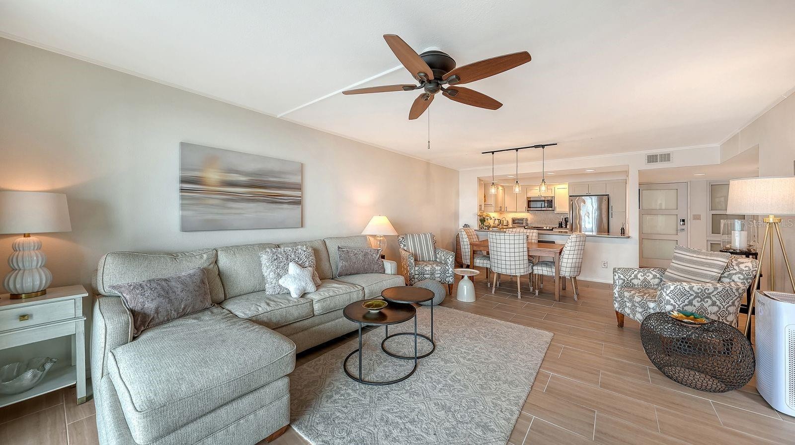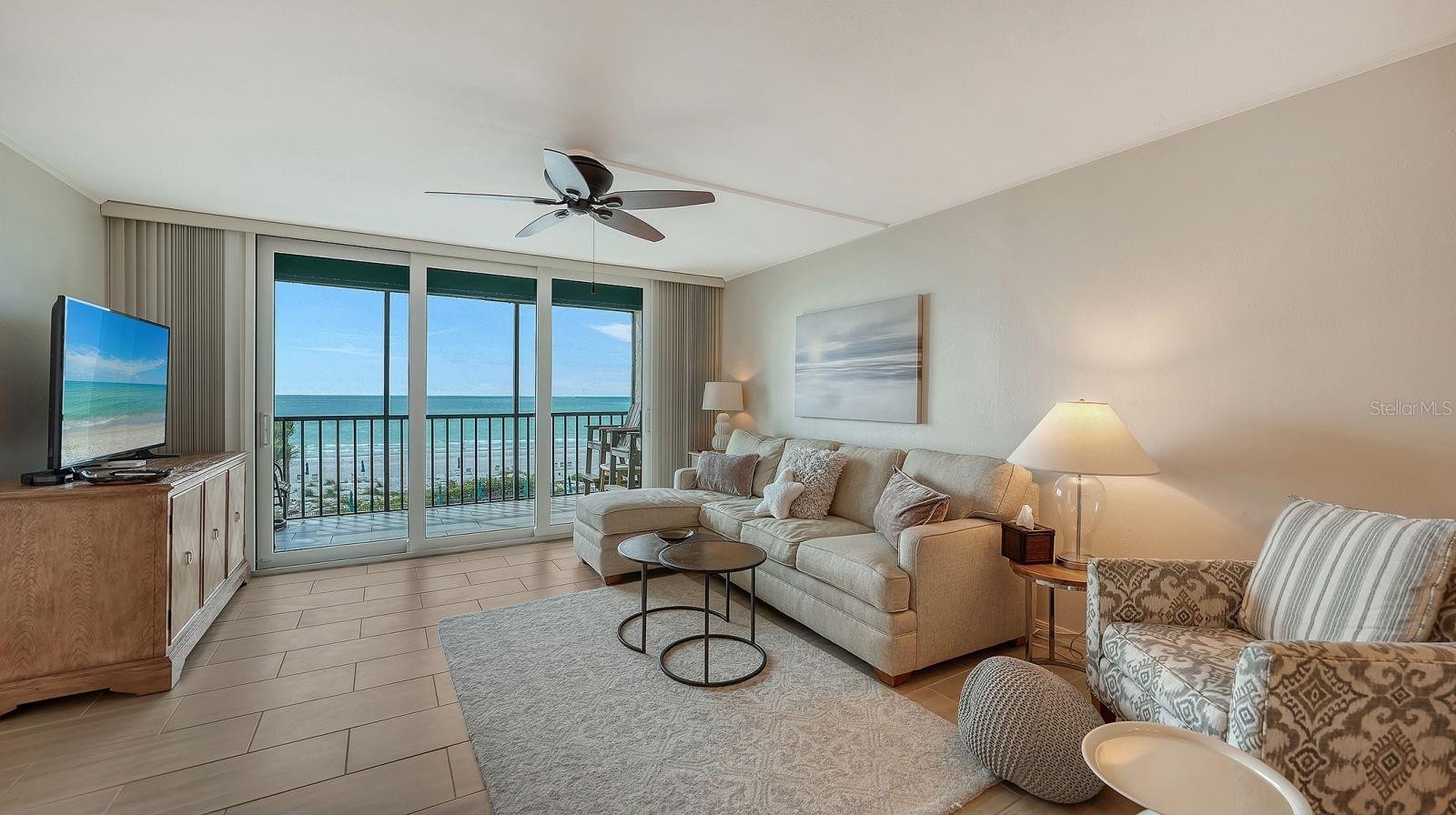 Beautifully updated two-bedroom, two-bath condominium offering sweeping, direct Gulf views and over 1,200 square feet of thoughtfully designed living space under air. The open and spacious floor plan is complemented by an updated kitchen featuring stainless steel appliances, ample cabinetry, and clean, modern finishes. Both bathrooms have been tastefully updated, adding to the home’s move-in-ready appeal. For peace of mind, all windows and sliding glass doors are equipped with hurricane shutters. Step out onto the screened lanai to enjoy gentle Gulf breezes and tranquil views, or take just a few steps to the sandy beach or one of the nearby swimming pools. Located within Seaplace, a gated Gulf-front community, residents enjoy an exceptional array of amenities including a 24-hour guard-gated entrance, a newly remodeled clubhouse, two resort-style swimming pools, a kiddies pool, two hot tubs, three Har-Tru tennis courts, and a scenic walking trail. Whether you are seeking a beachfront vacation retreat, second home, investment property, or full-time residence, this exceptional Gulf-front condominium offers the ideal blend of comfort, location, and lifestyle.
