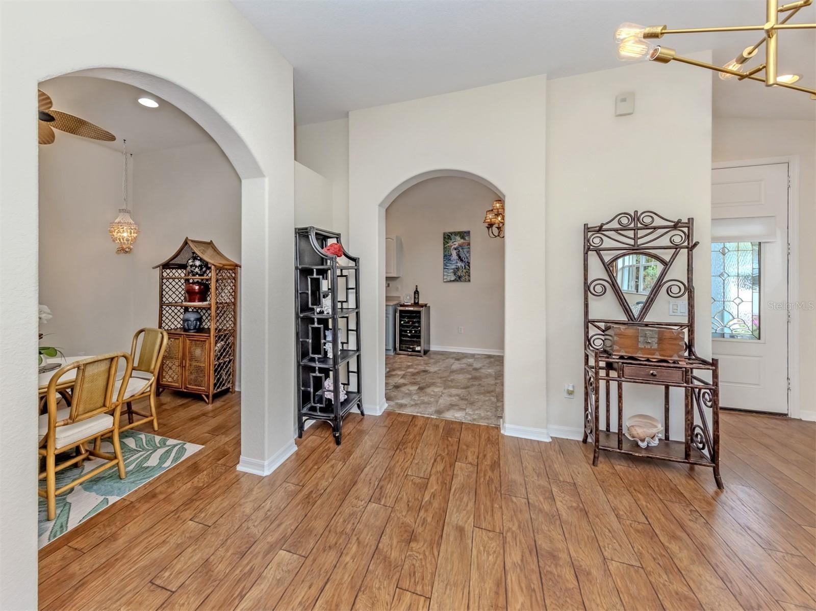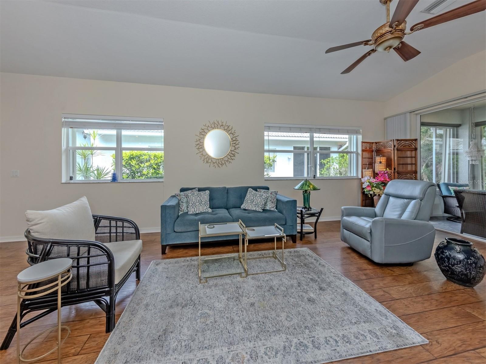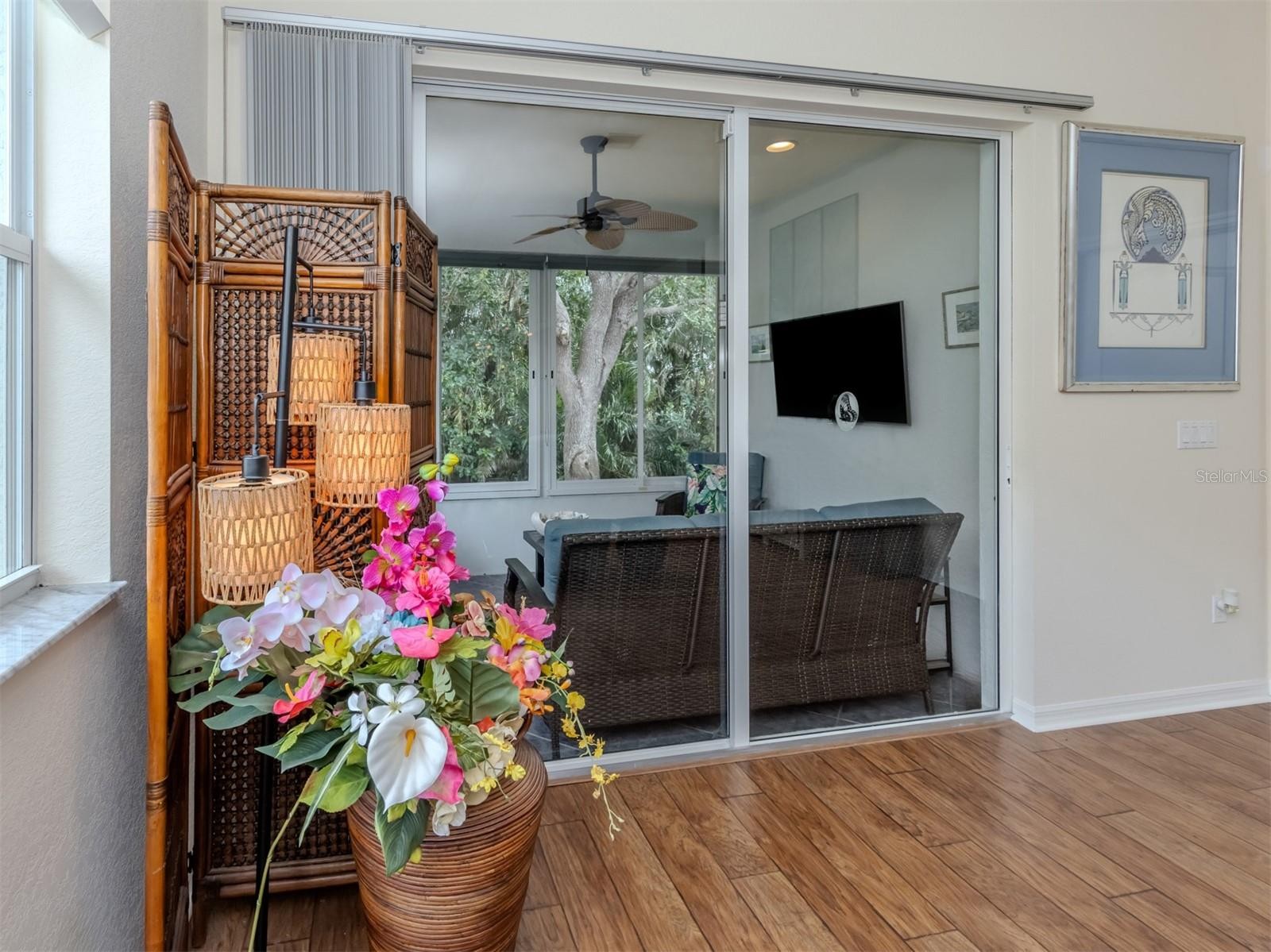 Welcome Home! This charming, light-filled 2-bedroom + den, 2-bath villa with a 2-car garage is located in the sought-after gated community of Auburn Hammocks. Offering 1,456 square feet of comfortable living space, this beautifully maintained home features an open split floor plan, vaulted ceilings, and abundant natural light, creating a bright and inviting atmosphere throughout. Ideally situated, the villa is just steps away from the community pool and clubhouse. Enter through your private gated courtyard, a delightful space perfect for relaxing or entertaining while enjoying Florida’s beautiful weather. Inside, the immaculate interior showcases engineered hardwood flooring, high ceilings, and ceiling fans, enhancing both comfort and style. The well-appointed kitchen is ideal for everyday living and entertaining, featuring stainless steel appliances, ample cabinetry, a pantry, and a cozy eat-in area. The spacious primary suite offers a large walk-in closet with a built-in closet system for optimal organization and an en-suite bath. The guest bedroom is privately positioned and also features a custom built-in closet system. The versatile den provides flexible space for a home office, media room, formal dining room, or potential third bedroom. Just off the living room, the enclosed Florida room extends your living space and offers a peaceful setting to enjoy morning coffee or evening cocktails while overlooking mature landscaping. Additional highlights include an inside laundry room with utility sink and cabinetry, as well as an attached 2-car garage with abundant cabinetry and shelving for exceptional storage. The home is not located in a flood zone, providing added peace of mind. Auburn Hammocks is a friendly, maintenance-free community of just 46 villas, where residents enjoy a heated pool, clubhouse, and social activities. With very low HOA fees and a pet-friendly policy allowing two pets of any size, this community offers both comfort and convenience. Ideally located just 3-4 miles from historic downtown Venice and the beautiful Gulf beaches, you’ll enjoy easy access to shopping, dining, local restaurants, Sarasota Memorial Hospital-Venice, and I-75. Whether you are seeking a full-time residence or the perfect seasonal retreat, this move-in-ready villa offers the best of the Florida lifestyle. Schedule your private showing today!