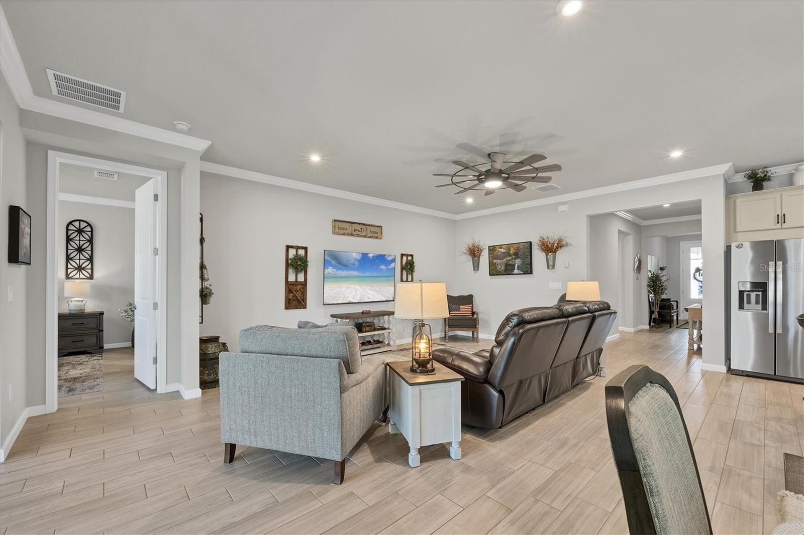 This 2023 Aurora II Coastal elevation floor plan offers a Charming Front Porch, 3 bedrooms, 2 baths, and a den/office, perfectly positioned on a private oversized end lot in the maintenance-free community of Renaissance at Wellen Park. This beautifully maintained home shows like a model, featuring crown molding throughout, spacious kitchen island with expansive walk-in pantry, tile flooring throughout the home, a huge walk-in closet in the primary bedroom, a custom walk-in shower in the guest bath, premium epoxy garage floor, laundry room sink, and a black aluminum fence. The private fenced-in oversized yard provides ample space for a future pool. For peace of mind, the home includes impact windows, a concrete tile roof, and is located in the desirable “X” flood zone (verified by Letter of Map Revision Certificate). Residents enjoy a low HOA fee, which covers two gated entrances, landscaping, irrigation, and access to resort-style amenities—including a clubhouse, pool, sauna, fitness center, tennis, pickleball, bocce, walking trails, and a full social calendar with an activities director. Conveniently located steps away from Downtown Wellen Park, with dining, shopping, entertainment, a farmers’ market, Costco, Publix, and the Atlanta Braves Stadium, plus easy access to the Gulf beaches of Southwest Florida, Golf Courses, and Quick access to I-75. Why wait to build when you can enjoy this move-in-ready home that blends quality, comfort, and privacy in one of Wellen Park’s premier communities. See attached Letter of Map Revision for X Flood Zone.