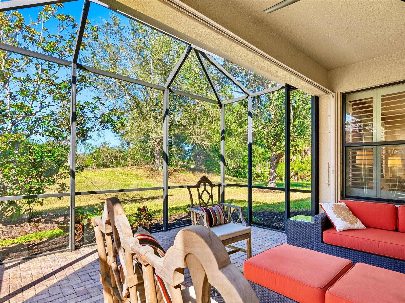 Enjoy resort-style living at Venetian Falls! This desirable 2-bedroom, plus den, Sorrento home is ideally located near the clubhouse and amenities, and offers thoughtful upgrades throughout. The open floor plan features ceramic tile flooring, crown molding, plantation shutters, and granite countertops in the kitchen and baths. The kitchen has solid wood cabinets with under-cabinet lighting, custom backsplash, stainless steel appliances, and a sunny dinette with a built-in bench under a bay of windows. The den includes French doors and a built-in hideaway desk for flexibility. Additional highlights include pavered driveway, walkway, and extended lanai, custom closets, laundry room cabinetry, and ample garage storage. Enjoy peace of mind with hurricane panels and a convenient accordion lanai shutter. Residents benefit from onsite management, maintenance-free lawn care, cable and internet package, and exceptional amenities—heated lap and resistance pools, spa, fitness center, billiards, internet café, arts and crafts room, bocce, putting green, clubhouse with activity director, and more—just minutes from Venice beaches, dining, and shopping! Full furniture package available under separate contract.