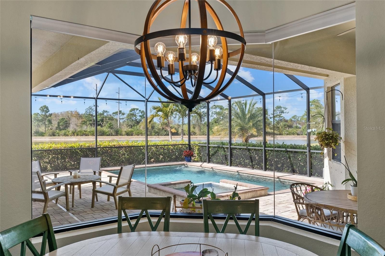 Welcome to refined Florida living in the golf-cart-friendly community of Wellen Park. Set on an oversized waterfront homesite, this beautifully appointed four-bedroom, three-bath residence with a three-car garage captures sweeping lake views and unforgettable sunsets from its private outdoor retreat. A gracious entry introduces soaring ceilings, extended doorways, crown molding, and elegant tile flooring throughout. The open great room design is both sophisticated and functional, centered around a well-appointed chef?s kitchen with granite countertops, tile backsplash, stainless steel appliances, undercabinet lighting, generous pantry space, and abundant custom cabinetry. A sunlit breakfast nook with aquarium glass windows frames tranquil water views, while expansive sliders open to a screened lanai with paver decking, resort-style pool and spa, and over 1,000 square feet of seamless indooroutdoor living. The primary suite is a peaceful sanctuary with a bay window overlooking the lake, direct lanai access, a walk-in closet, and a spa-inspired bath with dual vanities, soaking tub, and separate shower. A split floor plan provides privacy for guests, including a bedroom and full bath that also serves as a pool bath. A formal dining room adds an elegant setting for entertaining. Additional highlights include hurricane protection for windows and sliders, UV-enhanced HVAC air purification, mature landscaping for privacy, and an oversized three-car garage with overhead storage. Located in an X flood zone, no flood insurance is required. HOA services include cable, internet, lawn care, and access to resort amenities featuring a guard-gated entrance, clubhouse, pool, fitness center, sauna, racquet sports, and a full calendar of social events