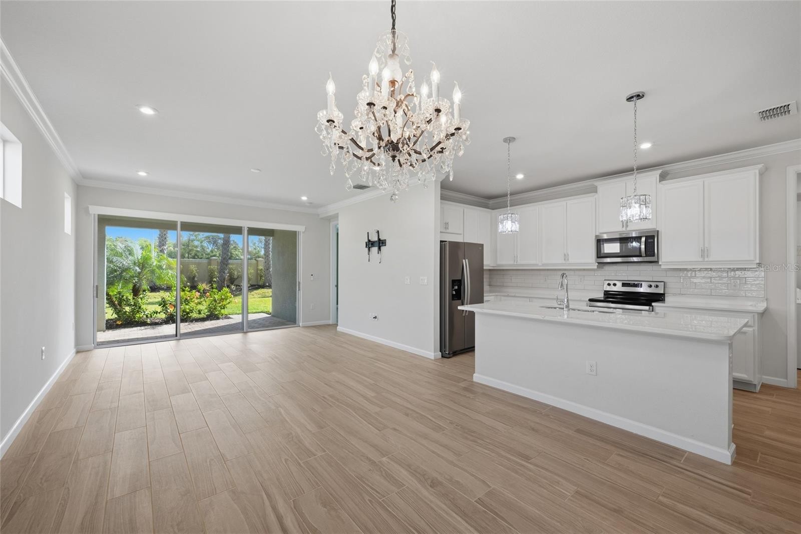 Preferred Lender is offering 1% of the loan amount as a lender credit towards buyers closing costs or interest rate buy-down on this specific home! Welcome to Renaissance at Wellen Park, where low-maintenance living meets resort-style comfort in one of the area’s most sought-after gated communities. Built in 2022, this beautifully appointed 2 bedroom plus den, 2 bathroom villa offers over 1,400 square feet of thoughtfully designed living space and an inviting atmosphere from the moment you arrive. Not located in a flood zone, offering peace of mind for years to come. A paver driveway and walkway lead you to the charming covered front porch, framed by lush tropical landscaping maintained by the HOA, while the barrel tile roof and full gutter system add timeless curb appeal. Stepping inside, you’re welcomed by an open concept floorplan featuring stunning porcelain wood-look tile flooring, plantation shutters, crown molding, and ample recessed lighting throughout, create a polished yet comfortable feel. Just off the entry, French doors open to a versatile den or office space, perfect for working from home, a reading room, or even a guest retreat. The kitchen is designed for both everyday living and effortless entertaining, complete with quartz countertops, a large center island, classic subway tile backsplash, stainless steel appliances, and plenty of space to gather. Thoughtful upgrades include 8-foot interior doors that enhance the home’s sense of space, along with ceiling fans added in each bedroom and the den for year-round comfort. The split bedroom floorplan offers ideal privacy, with the spacious owner’s suite tucked away at the rear of the home. This relaxing retreat features dual quartz topped vanities with drawers, a large walk-in closet, and a beautifully finished en-suite bathroom with a glass enclosed walk-in shower and floor-to-ceiling tilework. The secondary bedroom is situated near the guest bathroom, which carries through the same elevated finishes and cohesive design. Additional highlights include an indoor laundry room with washer and dryer included, as well as epoxy flooring in the 2 car garage for a clean and finished look. Twelve foot sliding glass doors open to the covered lanai, where a motorized slider screen allows you to enjoy the outdoor space with ease. With no rear neighbors, you’ll appreciate the added privacy and peaceful setting this home offers. Life in Renaissance at Wellen Park is all about enjoying more and maintaining less, with the HOA covering roof replacement, exterior maintenance, irrigation, full lawn care, and the security of a gated entrance. Residents enjoy access to resort-style amenities including a community pool, clubhouse, fitness center, tennis, pickleball, an activities director, and beautifully maintained grounds that make it easy to stay active and connected. Located just minutes from Downtown Wellen Park, CoolToday Park, shopping, dining, Gulf beaches, and zoned for A-rated schools, this home offers the perfect blend of convenience, lifestyle, and location. Schedule your showing today and experience why so many love calling Wellen Park home.
