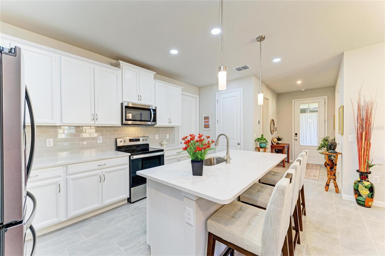 LOCATION LOCATION LOCATION Your chance to enjoy highly sought-after Wellen Park living is here! We are pleased to share this beautifully maintained Largo villa offering 1,432 sq. ft. of comfortable, low-maintenance living on a highly private lot with lush, mature landscaping in the resort style community of Renaissance. This 2-bedroom, 2-bath home includes a study, laundry room, and a 2-car garage. The open-concept kitchen features quartz countertops, a large island with seating, and upgraded lighting with dimmers. The living and dining areas flow to a screened in lanai overlooking a tranquil, private backyard. The owner’s suite offers a spacious walk-in closet, dual sinks, and a private water closet. A guest bedroom at the front of the home provides great separation and easy access to the second bath. The study is ideal for a home office or flex space. Recent upgrades include a 6-month-old refrigerator, new lighting and ceiling fans, freshly sealed pavers, epoxy-coated garage flooring, and a Google Nest smart home system. Looking for truly low-maintenance living? Renaissance has you covered. The HOA includes irrigation, full lawn care, plus the peace of mind of a secure, gated community. Located in Renaissance at Wellen Park, a resort-style community with a pool, clubhouse, activities director, tennis, pickleball, and maintenance-free landscaping. Minutes from Downtown Wellen Park, CoolToday Park, shopping, dining, and a short drive to Gulf beaches.
