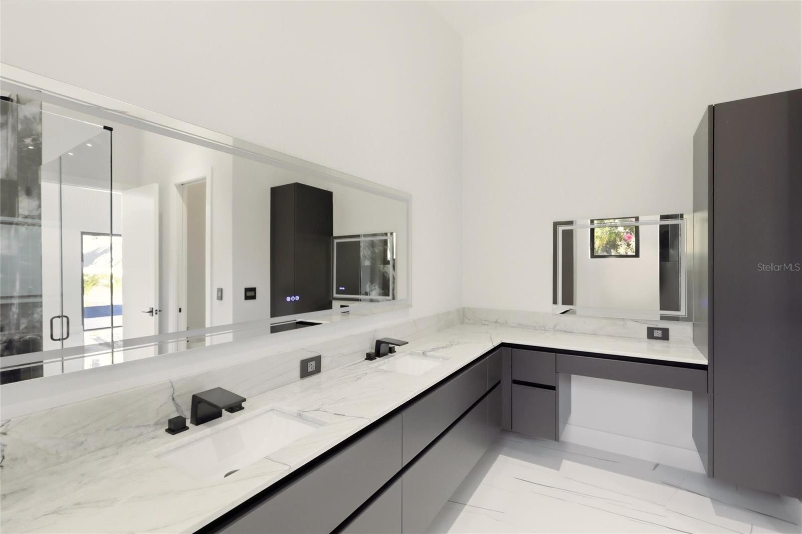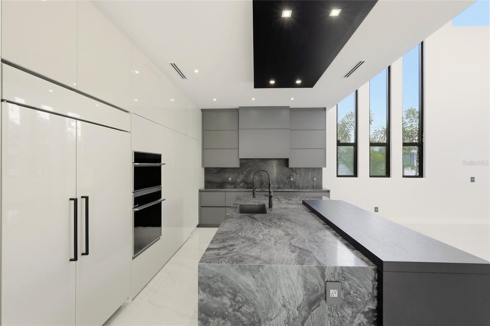 2089 Arlington Street, where architecture meets light, space, and coastal elegance, this newly constructed contemporary residence offers 4,231 square feet of living space and 5,284 total square feet, thoughtfully designed with architectural precision and warm minimalism. Completed in 2026, this striking two-story home sits on a rare double corner lot and features 5 bedrooms and 6 bathrooms, delivering both scale and sophistication. The open-concept interior is defined by dramatic 22-foot ceilings, expansive custom windows and doors, and an abundance of natural light throughout. The main level is anchored by a statement chef’s kitchen imported from Italy, showcasing custom cabinetry, luxury built-in appliances, a Sub-Zero refrigerator, premium hardware, and top-quality London Fog granite countertops. A concealed secondary kitchen provides additional functionality and discretion, ideal for entertaining and catered events. The primary suite is conveniently located on the ground floor, offering a private retreat with serene views and a spa-inspired bath. Additional bedrooms are generously sized, each with access to a full bathroom. A custom glass wine room adds a refined architectural focal point, while a loft-style family/media lounge on the second level overlooks the main living area, enhancing the home’s open, airy feel. Designed for seamless indoor–outdoor living, oversized sliding doors open to a private resort-style setting with a custom pool and spa, covered terrace, and enhanced landscaping. Architectural exterior lighting highlights the home’s clean lines and modern façade after sunset. Quality and performance are paramount: both levels are constructed of solid concrete block, and three independent HVAC systems serve the ground floor, primary suite, and second floor for optimal comfort and efficiency. Additional features include a private elevator, and all custom-made windows, doors, and cabinetry throughout—evidence of meticulous attention to detail in every finish. Ideally located for effortless travel and coastal lifestyle enjoyment, this home is approximately 12–15 minutes from Sarasota–Bradenton International Airport, about 1 hour 10 minutes from Tampa International Airport, 10–15 minutes to Lido Key, and about 15 minutes to Siesta Key, world-renowned for powder-white sand and Gulf sunsets. Situated outside of a flood zone, this exceptional residence presents a rare opportunity to own a custom-built contemporary home where design, craftsmanship, location, and lifestyle converge.