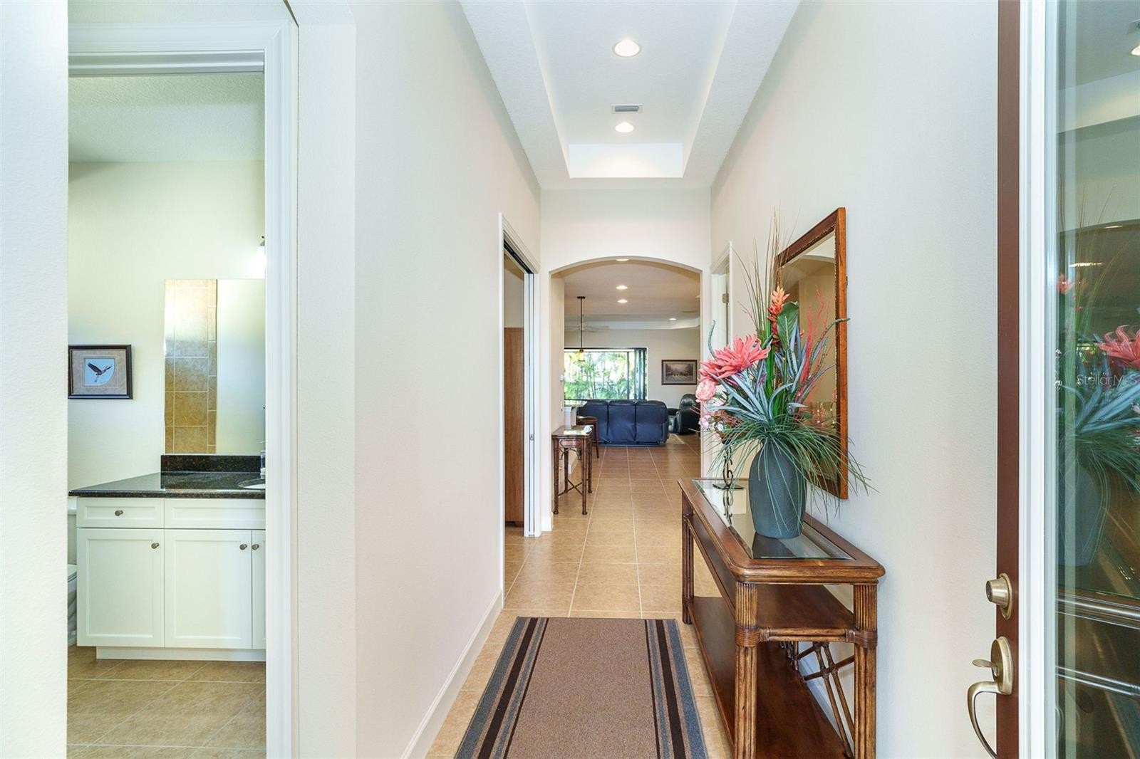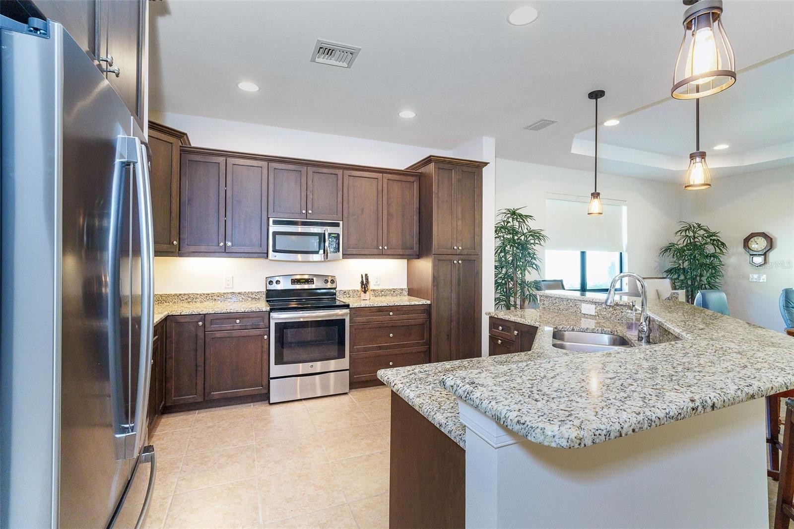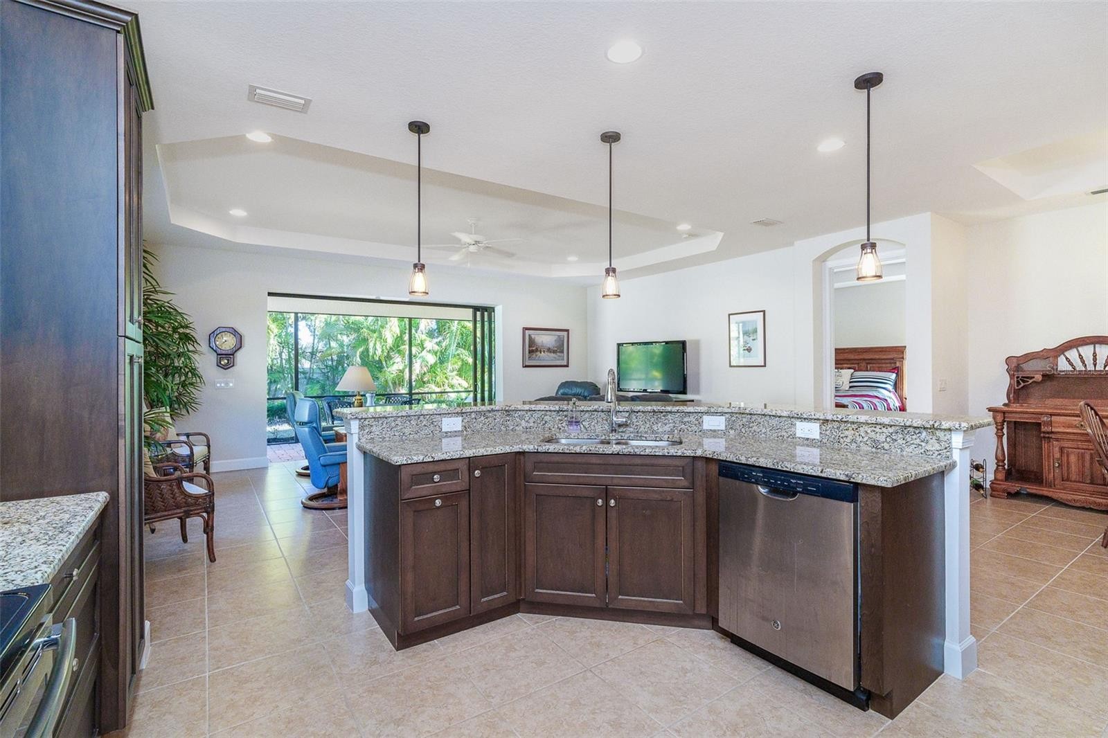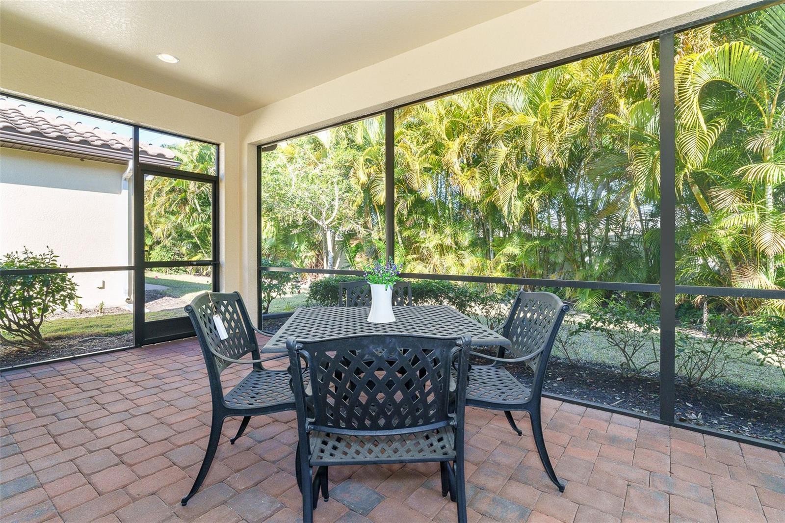 Welcome to Venice FL, where you’ll find the perfect blend of coastal beauty, small-town charm, and an active lifestyle. This island town’s charming main street area offers everything from a seasonal farmer’s market to shopping, dining and one of the country’s largest community theaters. Grand Oaks is truly in the heart of it all, located three miles to downtown Venice and Venice Beach. Three semi-private Championship Golf Courses – Capri Isles, Calusa Lakes and Waterford Golf Club – are also just minutes away from this private, gated enclave of only 55 homes. There is nothing quite like Grand Oaks with its low fee, low maintenance, active social lifestyle centered around the Residents’ Club. This Mediterranean themed Valencia plan offers 2 bedrooms and 2 baths plus a den. Hurricane impact glass throughout the home provides year-round peace of mind and comfort. Tray ceilings emphasize ceiling heights of 12' in the Foyer and 10' in the Great Room and Dining Room. The Kitchen is equipped with GE Stainless appliances, custom wood cabinetry with 3” crown molding, under cabinet lighting, and granite tops with decorative backsplash. The open concept design and 8' tall by 12' wide pocketing glass doors open the home to the Lanai and enhance the lush, private view of the greenery surrounding the community. A relaxing Owner’s bath features a luxurious soaking tub, separate shower, and separate vanities with abundant storage under granite counter tops. Please call now, your Grand Oaks lifestyle awaits!