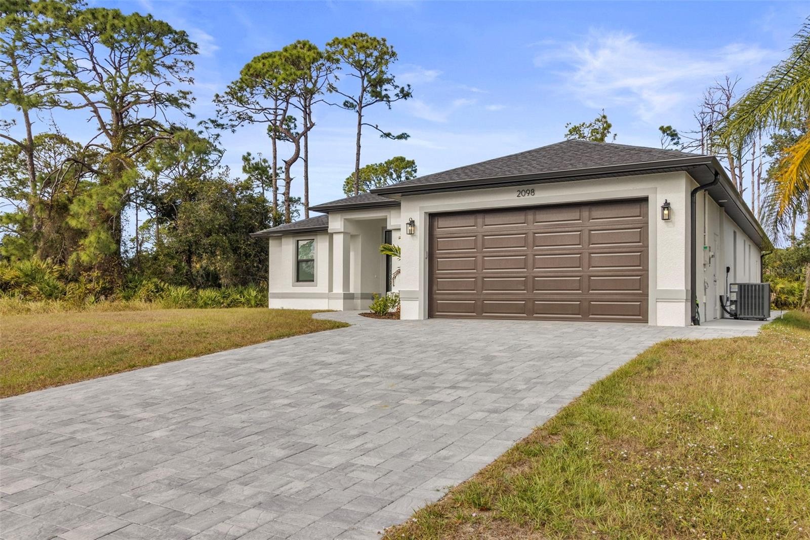 Stunning 3-bedroom, 2-bath home with a 2-car garage—ready for you to make it yours. The spacious great room welcomes you with soaring 9'4" ceilings and elegant 8' doors, creating an open, airy feel throughout. The modern kitchen shines with stainless-steel appliances, sleek quartz countertops, and an open layout made for entertaining. Retreat to the Primary suite featuring a tray ceiling, dual walk-in closets, and a spa-inspired bathroom with double vanities. Every inch of this home is crafted with quality—hurricane-impact windows, tiled showers, durable designer flooring and a new washer and dryer are all included. Enjoy Florida living year-round on the covered lanai—ideal for relaxing or hosting outdoors. Why you are waiting call now.