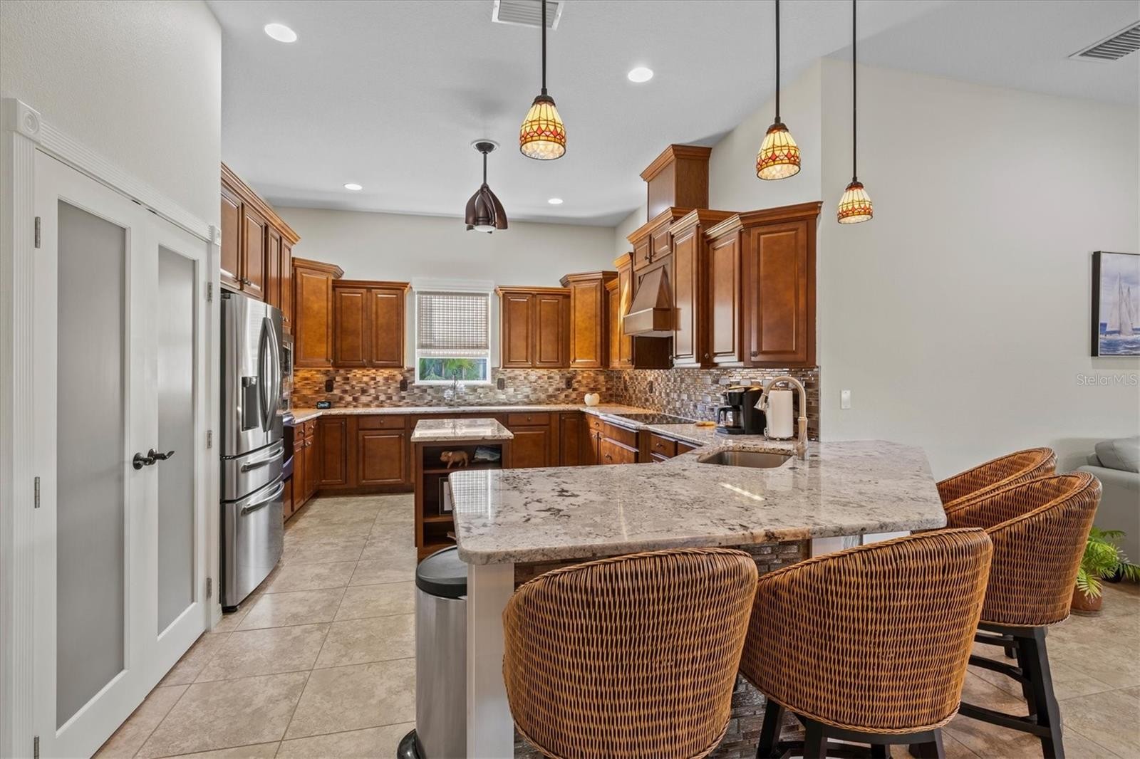 True Florida living with style, space, and serene views. Perfectly positioned on an expansive 0.53-acre lot overlooking a peaceful pond and preserve, this stunning estate home is located in the highly sought-after Rye Wilderness Estates community. Spanish-style architecture and a charming arched front porch create an inviting first impression, while thoughtful upgrades and timeless design continue throughout this spacious 3,451-square-foot Egret model. This four-bedroom, three-bathroom home with a dedicated office features a tile roof, paver driveway, and a three-car side-entry garage, along with newly updated pool equipment and two brand-new AC systems for added peace of mind. Upon entering through double eight-foot front doors, you are welcomed by a grand foyer with soaring twelve-foot ceilings, ten-foot ceilings throughout the rest of the home, and elegant tray ceiling accents. To the left, a formal dining area flows seamlessly into an oversized living room, where sliding glass doors frame tranquil lanai, pond, and preserve views. The living room connects to a beautifully designed butler’s pantry and wet bar with long counters, sink, and a striking tile feature wall, making it ideal for entertaining. Continuing into the heart of the home, the gourmet kitchen impresses with a large center island, gorgeous granite countertops, breakfast bar seating, solid wood cabinetry with pull-outs, under-cabinet lighting, and a vented decorator hood. The kitchen opens to a spacious family room with additional sliding doors leading to the outdoor living area. The split floorplan offers privacy, with the second and third bedrooms sharing a full interior bathroom, while the office is conveniently located just off the front entry. The expansive primary suite is a true retreat, featuring tray ceilings, private lanai access, a large California-style walk-in closet plus additional open storage, and a spa-inspired en-suite bathroom with dual vanities, a makeup area, garden tub, and an oversized walk-in shower. A spacious laundry room with extra wood cabinetry adds both function and storage. Step outside to an impressive covered lanai overlooking the heated pool and paver deck, creating the perfect outdoor oasis for enjoying Florida’s year-round sunshine and breathtaking preserve views. Located just north of Rye Wilderness Preserve, residents can enjoy kayaking and canoeing nearby. The community offers no CDD fees, a low HOA, convenient interstate access, proximity to Lakewood Ranch, top-rated schools, world-famous beaches, Sarasota, St. Petersburg, and Tampa International Airport.