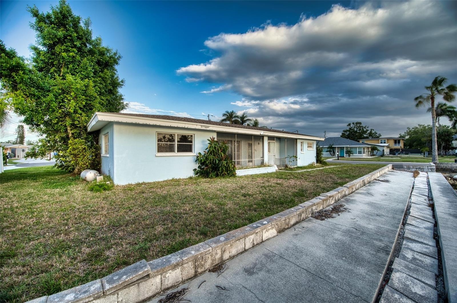 Direct Manatee River frontage with sweeping sunset views. Cul-de-sac lot offering a rare opportunity to build new or reimagine the existing structure. No better place to take in holiday fireworks and enjoy the ultimate Bradenton waterfront lifestyle. Storm damage; value is in the land. For buyers with vision. AS-IS with right to inspect; no repairs. Riparian rights and dock feasibility to be verified by buyer, including permitting and approvals.