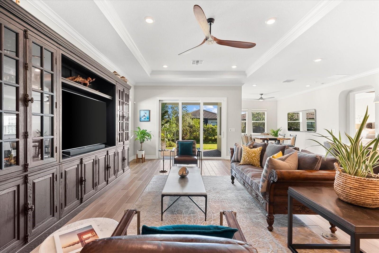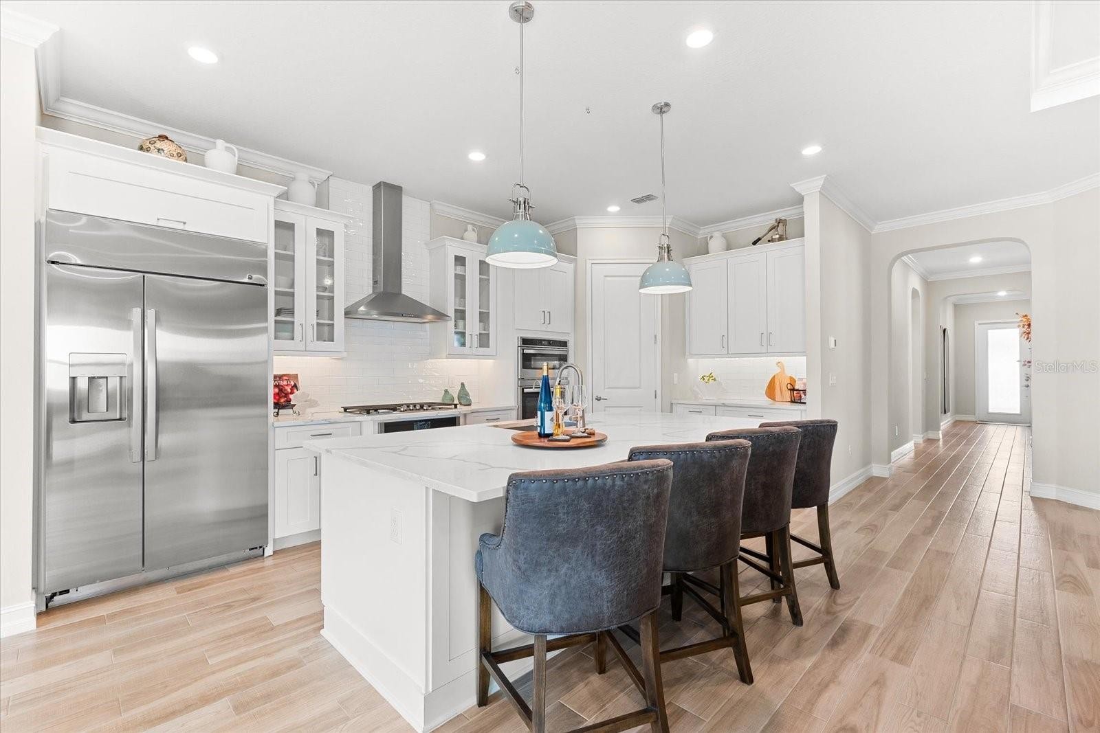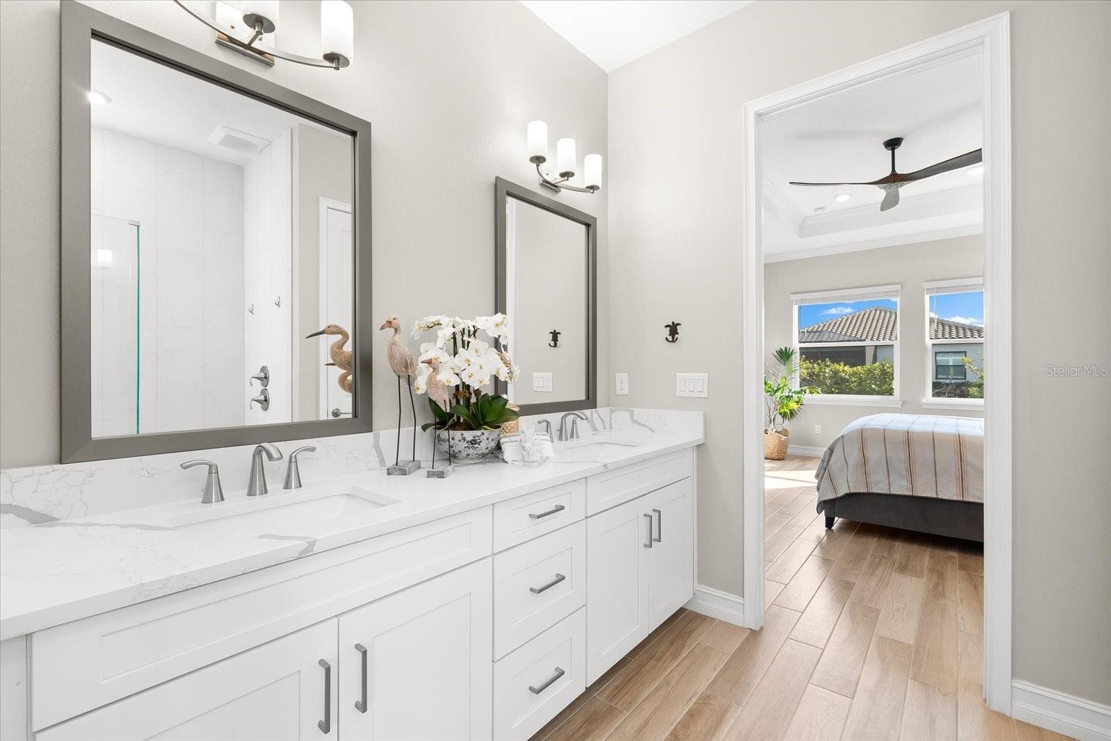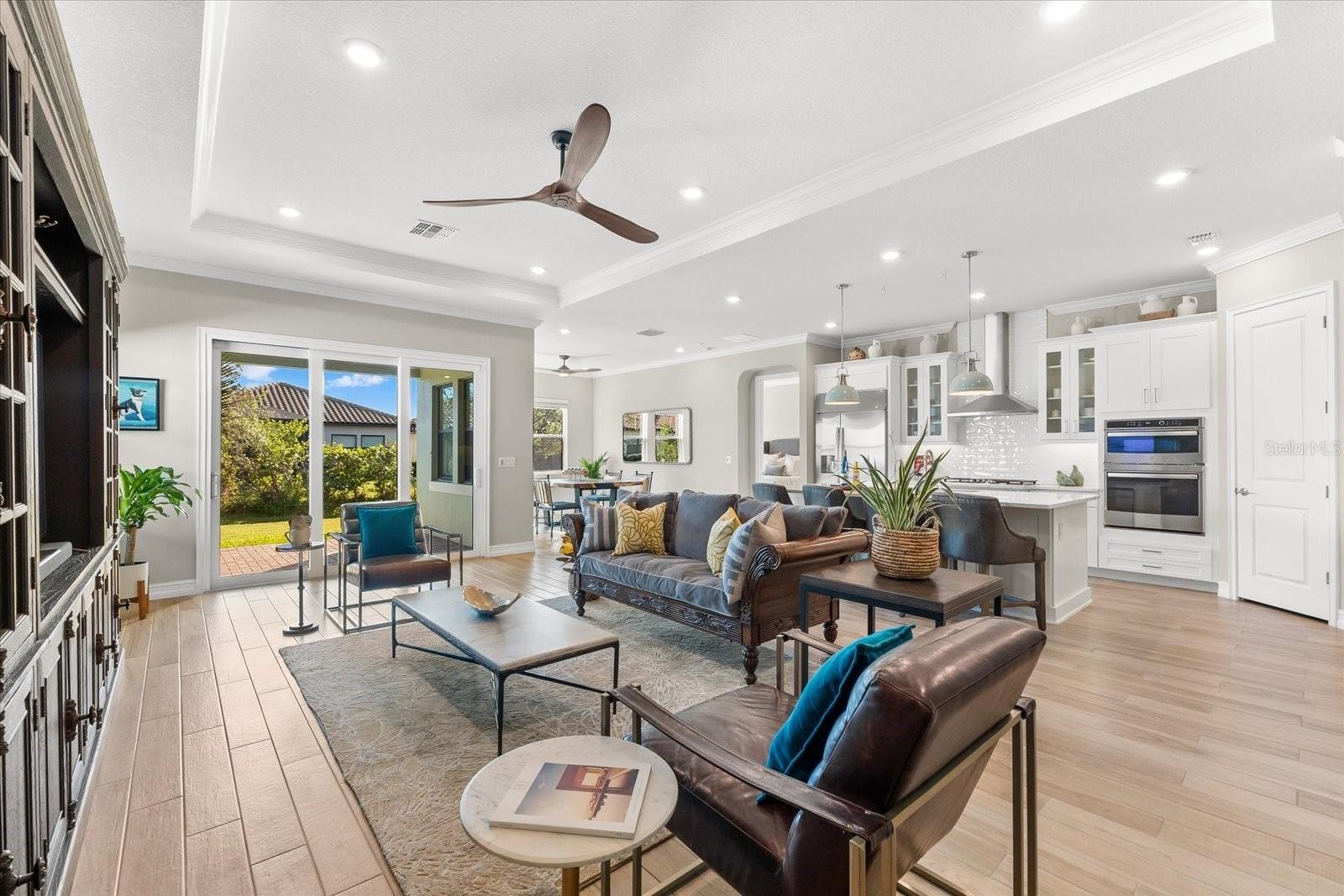 Ready to experience resort-style living at its finest? Look no further than this beautiful home in the highly sought-after gated luxury boating community of Sanctuary Cove, nestled along the Manatee River. Welcome to "The Martinique II," a meticulously maintained residence that offers the best of maintenance-free living. From the moment you arrive, you'll appreciate the home's exceptional curb appeal, boasting a beautiful elevation and premium upgrades throughout. The exterior features easy-to-clean bronze impact windows, an 8-foot impact-rated glass front door, an 8-foot tall impact garage door, an “island tan” barrel tile roof, full gutters, and a sage stucco finish with tasteful accents. Inside, the thoughtfully designed floor plan provides a seamless flow, enhanced by an abundance of natural light to the main living areas thanks to its north-facing orientation. Perfect for entertaining, this home blends luxury with practicality, offering ample built-in storage and an array of premium features. Highlights include an on-demand tankless gas water heater, a whole-house Kinetico water softener with carbon and sediment purification, and a built-in pest control system. Every detail has been considered, with LED lighting, “wood plank” tile floors, ceiling fans, 10-foot ceilings, and 8-foot doors throughout. Crown moulding and tray ceilings elevate the office, living room, and primary bedroom, adding a touch of elegance. The heart of the home is the spacious kitchen, perfectly positioned in the open floor plan next to the formal dining room and overlooking the living room and covered lanai. Designed for the home chef, the kitchen boasts upgraded white shaker cabinets with under-cabinet lighting, Silestone quartz countertops, a full tile backsplash, and a large island with a reverse osmosis water system. Top-of-the-line GE Profile stainless steel appliances include a 42-inch built-in refrigerator/freezer, a gas cooktop, a built-in oven/microwave, and an additional Wi-Fi-controlled convection oven. The lanai is pre-plumbed, wired, and vented for your dream outdoor kitchen. The spacious primary suite is a bright retreat, featuring a spa-like ensuite with a walk-in shower and floor-to-ceiling tile, dual shower heads, double sinks, and a large walk-in closet. Two additional bedrooms are private suites, each with its own bathroom, ideal for hosting guests. The enclosed office, complete with elegant finishes, can easily serve as a fourth bedroom. The backyard is a well-groomed blank canvas, ready for you to create your coastal paradise. Steps from your front door, enjoy the vibrant lifestyle Sanctuary Cove has to offer. Cruise through the neighborhood in your golf cart to access exclusive amenities, including a private clubhouse, resort-style pool and hot tub, gym, and a community beach. Boating enthusiasts will appreciate the protected freshwater harbor with available boat slip rentals, offering direct access to the Intracoastal Waterway via the Manatee River. Located in Zone X, this home requires no flood insurance and did not flood or sustain damage from Hurricane Milton or any other storms since its construction in 2022. Sanctuary Cove is a friendly, active community just minutes from shopping (Detwiler’s Market is right across the street), dining, and some of the nation’s best sugar-sand beaches. Don’t miss the opportunity to own this gem in the coveted and secure Sanctuary Cove marina neighborhood!
