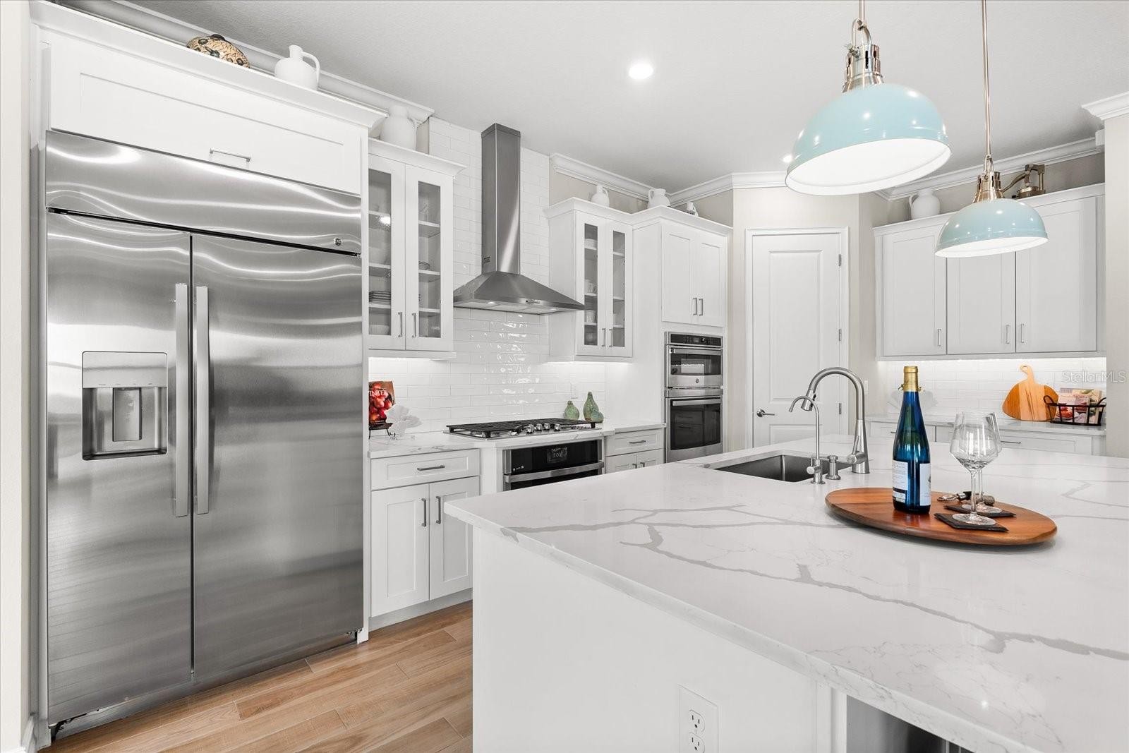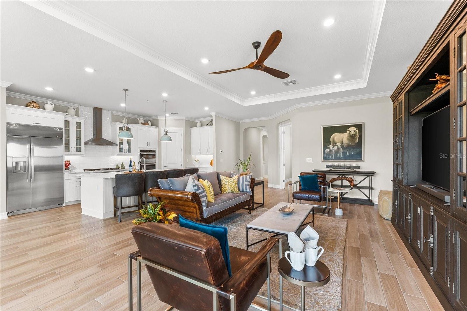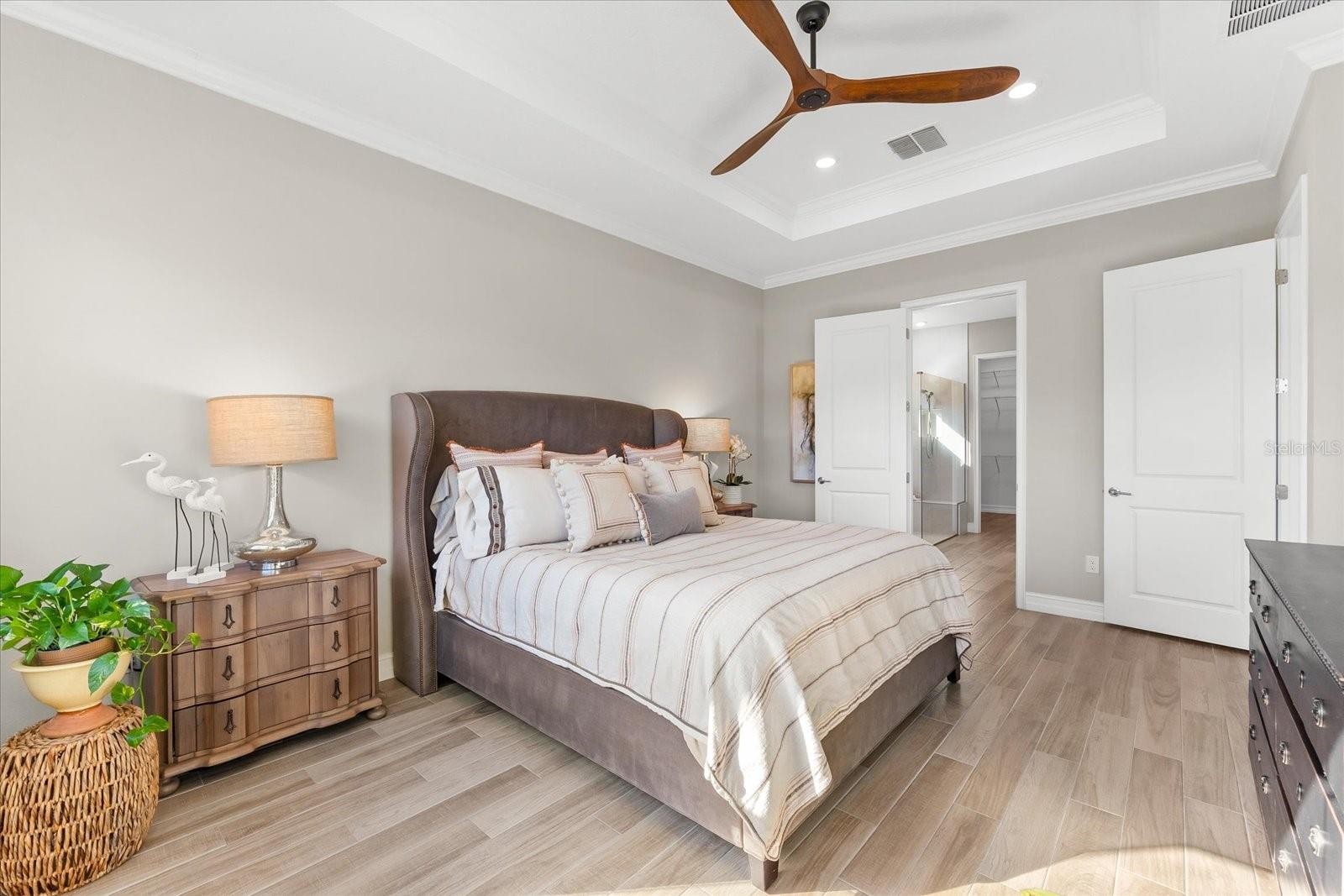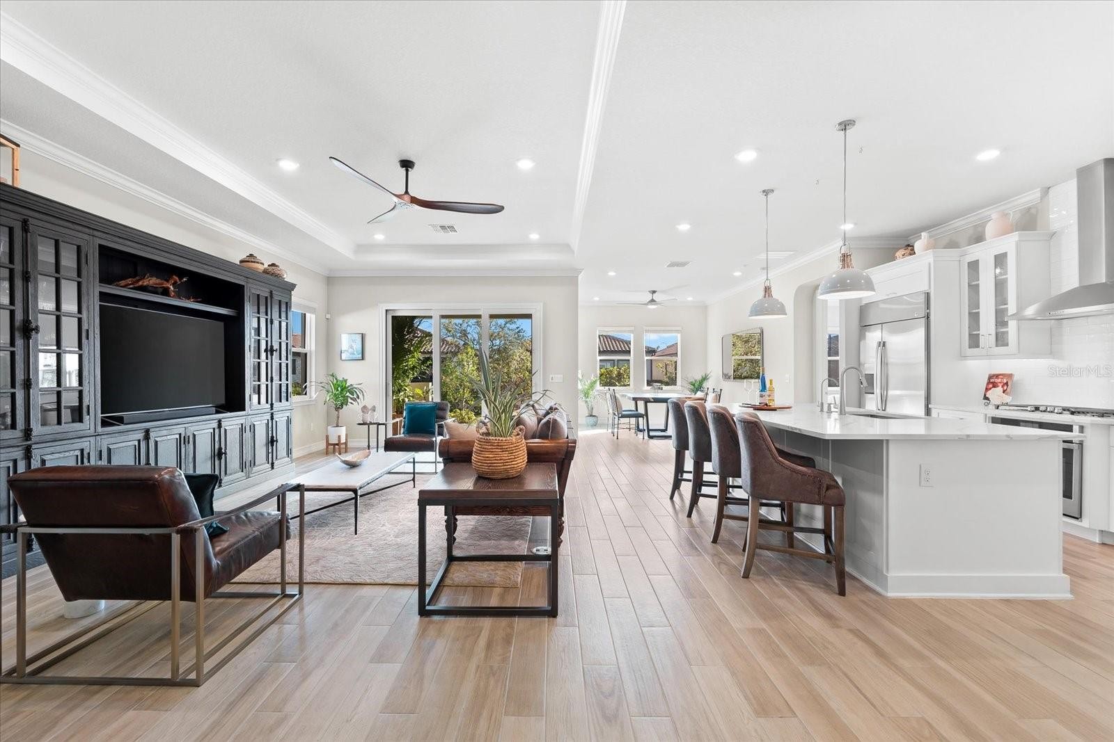 Ready to experience resort-style living at its finest? Look no further than this beautiful home in the highly sought-after gated luxury boating community of Sanctuary Cove, nestled along the Manatee River. Welcome to "The Martinique II," a meticulously maintained residence that offers the best of maintenance-free living. From the moment you arrive, you'll appreciate the home's exceptional curb appeal, boasting a beautiful elevation and premium upgrades throughout. The exterior features easy-to-clean bronze impact windows, an 8-foot impact-rated glass front door, an 8-foot tall impact garage door, an “island tan” barrel tile roof, full gutters, and a sage stucco finish with tasteful accents. Inside, the thoughtfully designed floor plan provides a seamless flow, enhanced by an abundance of natural light to the main living areas thanks to its north-facing orientation. Perfect for entertaining, this home blends luxury with practicality, offering ample built-in storage and an array of premium features. Highlights include an on-demand tankless gas water heater, a whole-house Kinetico water softener with carbon and sediment purification, and a built-in pest control system. Every detail has been considered, with LED lighting, “wood plank” tile floors, ceiling fans, 10-foot ceilings, and 8-foot doors throughout. Crown moulding and tray ceilings elevate the office, living room, and primary bedroom, adding a touch of elegance. The heart of the home is the spacious kitchen, perfectly positioned in the open floor plan next to the formal dining room and overlooking the living room and covered lanai. Designed for the home chef, the kitchen boasts upgraded white shaker cabinets with under-cabinet lighting, Silestone quartz countertops, a full tile backsplash, and a large island with a reverse osmosis water system. Top-of-the-line GE Profile stainless steel appliances include a 42-inch built-in refrigerator/freezer, a gas cooktop, a built-in oven/microwave, and an additional Wi-Fi-controlled convection oven. The lanai is pre-plumbed, wired, and vented for your dream outdoor kitchen. The spacious primary suite is a bright retreat, featuring a spa-like ensuite with a walk-in shower and floor-to-ceiling tile, dual shower heads, double sinks, and a large walk-in closet. Two additional bedrooms are private suites, each with its own bathroom, ideal for hosting guests. The enclosed office, complete with elegant finishes, can easily serve as a fourth bedroom. The backyard is a well-groomed blank canvas, ready for you to create your coastal paradise. Steps from your front door, enjoy the vibrant lifestyle Sanctuary Cove has to offer. Cruise through the neighborhood in your golf cart to access exclusive amenities, including a private clubhouse, resort-style pool and hot tub, gym, and a community beach. Boating enthusiasts will appreciate the protected freshwater harbor with available boat slip rentals, offering direct access to the Intracoastal Waterway via the Manatee River. Located in Zone X, this home requires no flood insurance and did not flood or sustain damage from Hurricane Milton or any other storms since its construction in 2022. Sanctuary Cove is a friendly, active community just minutes from shopping (Detwiler’s Market is right across the street), dining, and some of the nation’s best sugar-sand beaches. Don’t miss the opportunity to own this gem in the coveted and secure Sanctuary Cove marina neighborhood!