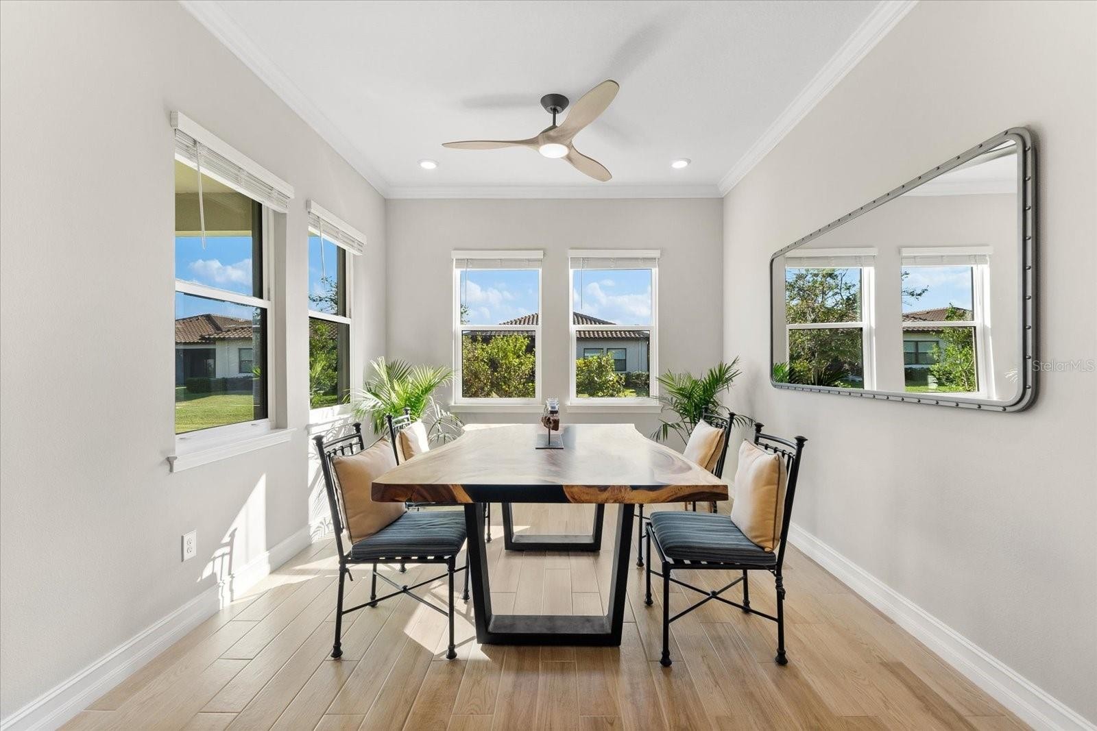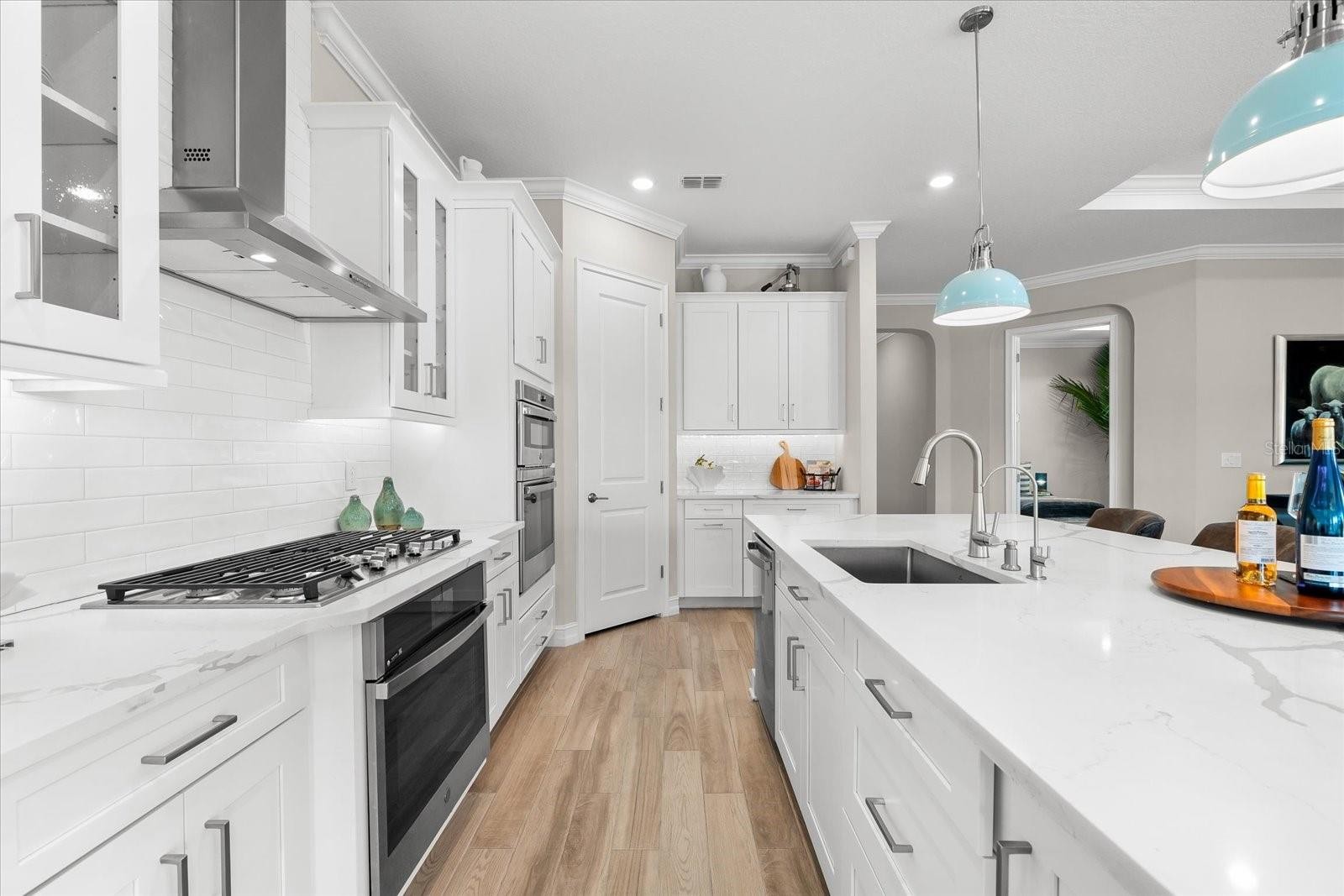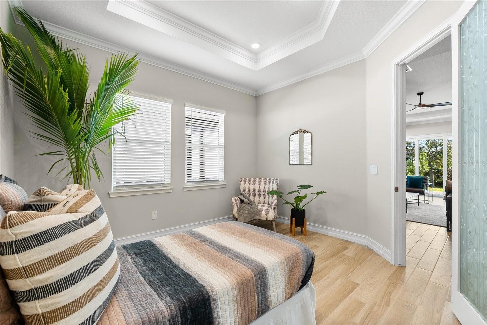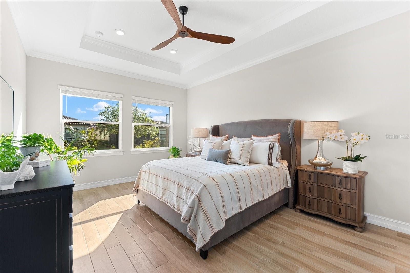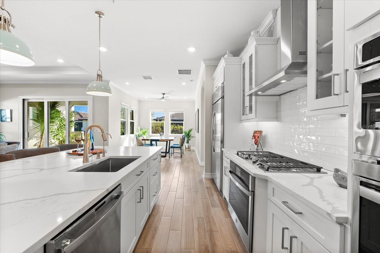 Ready to experience resort-style living at its finest? Look no further than this beautiful home in the highly sought-after gated luxury boating community of Sanctuary Cove, nestled along the Manatee River. Welcome to "The Martinique II," a meticulously maintained residence that offers the best of maintenance-free living. From the moment you arrive, you'll appreciate the home's exceptional curb appeal, boasting a beautiful elevation and premium upgrades throughout. The exterior features easy-to-clean bronze impact windows, an 8-foot impact-rated glass front door, an 8-foot tall impact garage door, an “island tan” barrel tile roof, full gutters, and a sage stucco finish with tasteful accents. Inside, the thoughtfully designed floor plan provides a seamless flow, enhanced by an abundance of natural light to the main living areas thanks to its north-facing orientation. Perfect for entertaining, this home blends luxury with practicality, offering ample built-in storage and an array of premium features. Highlights include an on-demand tankless gas water heater, a whole-house Kinetico water softener with carbon and sediment purification, and a built-in pest control system. Every detail has been considered, with LED lighting, “wood plank” tile floors, ceiling fans, 10-foot ceilings, and 8-foot doors throughout. Crown moulding and tray ceilings elevate the office, living room, and primary bedroom, adding a touch of elegance. The heart of the home is the spacious kitchen, perfectly positioned in the open floor plan next to the formal dining room and overlooking the living room and covered lanai. Designed for the home chef, the kitchen boasts upgraded white shaker cabinets with under-cabinet lighting, Silestone quartz countertops, a full tile backsplash, and a large island with a reverse osmosis water system. Top-of-the-line GE Profile stainless steel appliances include a 42-inch built-in refrigerator/freezer, a gas cooktop, a built-in oven/microwave, and an additional Wi-Fi-controlled convection oven. The lanai is pre-plumbed, wired, and vented for your dream outdoor kitchen. The spacious primary suite is a bright retreat, featuring a spa-like ensuite with a walk-in shower and floor-to-ceiling tile, dual shower heads, double sinks, and a large walk-in closet. Two additional bedrooms are private suites, each with its own bathroom, ideal for hosting guests. The enclosed office, complete with elegant finishes, can easily serve as a fourth bedroom. The backyard is a well-groomed blank canvas, ready for you to create your coastal paradise. Steps from your front door, enjoy the vibrant lifestyle Sanctuary Cove has to offer. Cruise through the neighborhood in your golf cart to access exclusive amenities, including a private clubhouse, resort-style pool and hot tub, gym, and a community beach. Boating enthusiasts will appreciate the protected freshwater harbor with available boat slip rentals, offering direct access to the Intracoastal Waterway via the Manatee River. Located in Zone X, this home requires no flood insurance and did not flood or sustain damage from Hurricane Milton or any other storms since its construction in 2022. Sanctuary Cove is a friendly, active community just minutes from shopping (Detwiler’s Market is right across the street), dining, and some of the nation’s best sugar-sand beaches. Don’t miss the opportunity to own this gem in the coveted and secure Sanctuary Cove marina neighborhood!