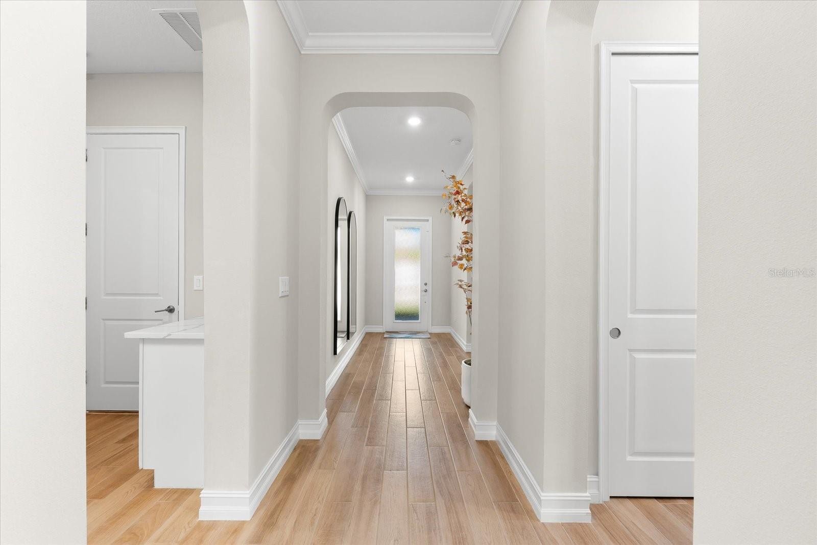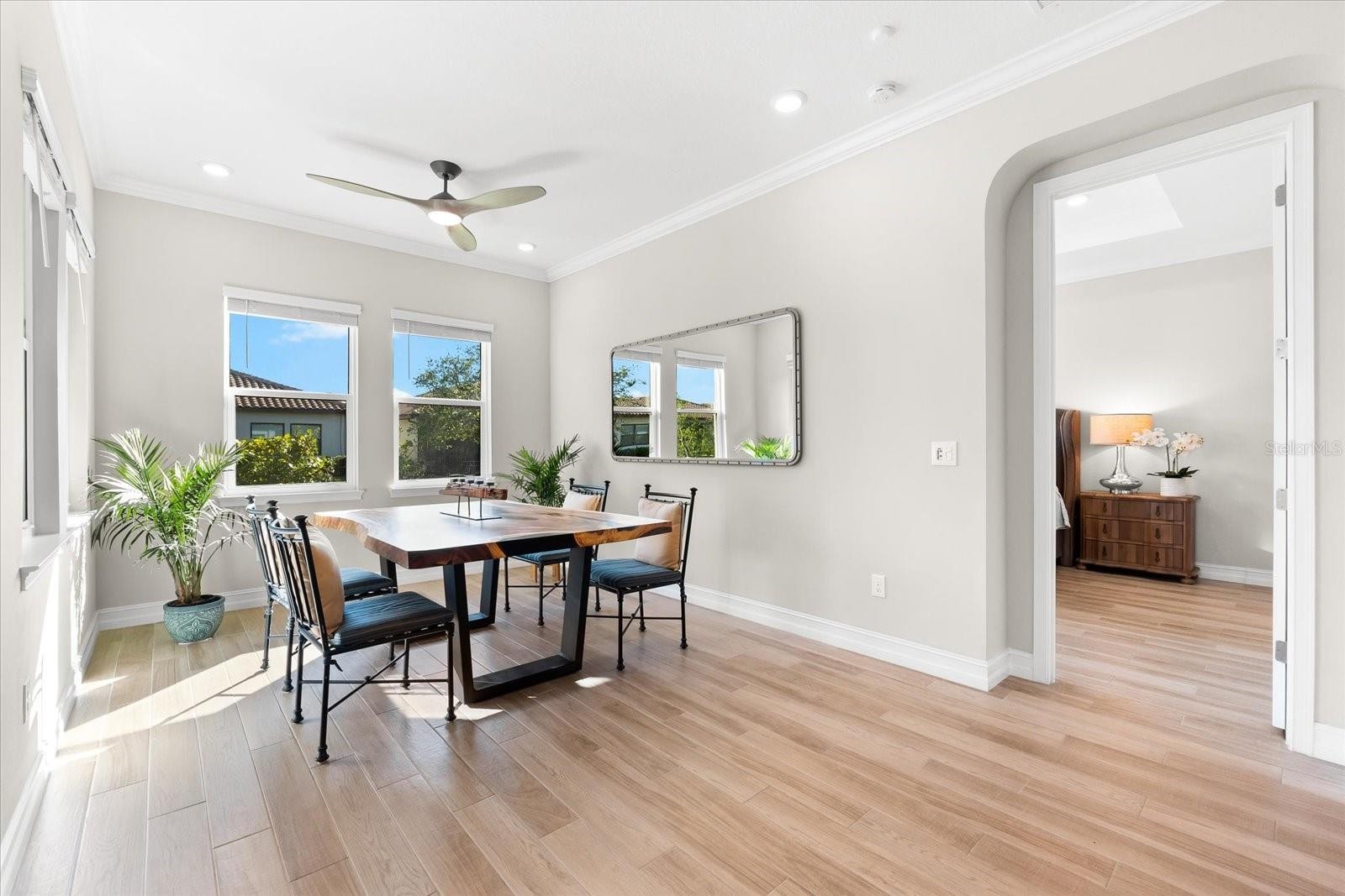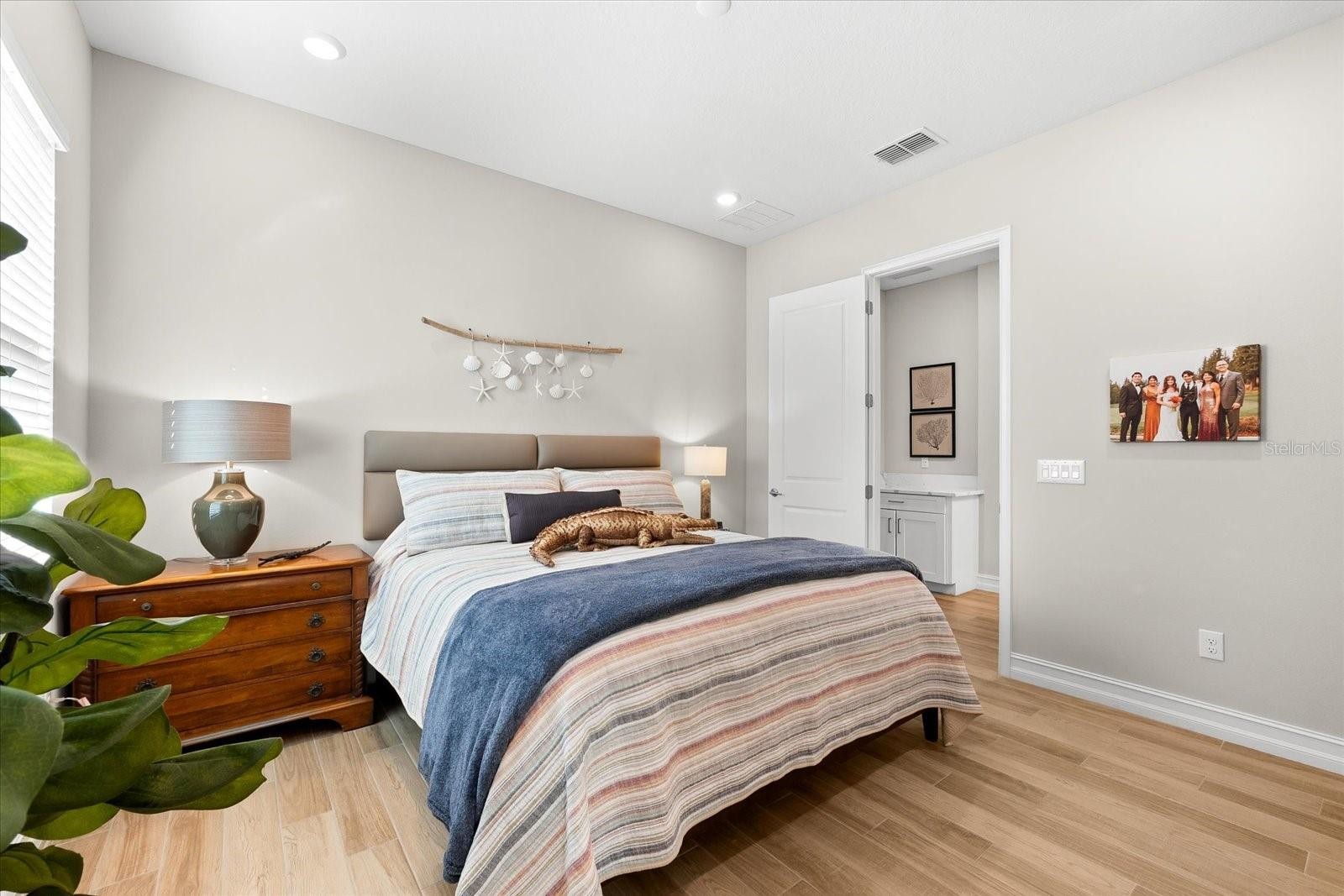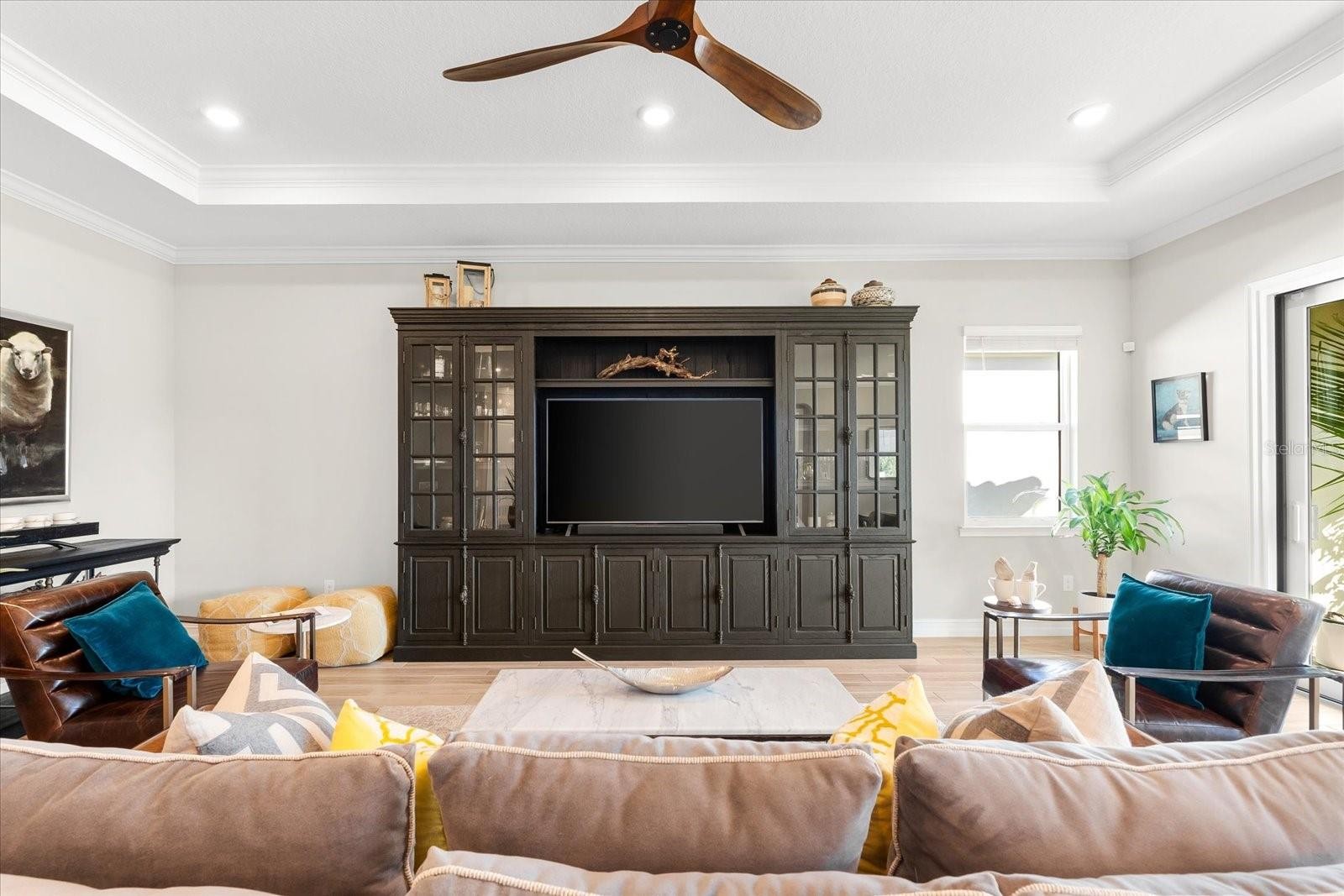 Ready to experience resort-style living at its finest? Look no further than this beautiful home in the highly sought-after gated luxury boating community of Sanctuary Cove, nestled along the Manatee River. Welcome to "The Martinique II," a meticulously maintained residence that offers the best of maintenance-free living. From the moment you arrive, you'll appreciate the home's exceptional curb appeal, boasting a beautiful elevation and premium upgrades throughout. The exterior features easy-to-clean bronze impact windows, an 8-foot impact-rated glass front door, an 8-foot tall impact garage door, an “island tan” barrel tile roof, full gutters, and a sage stucco finish with tasteful accents. Inside, the thoughtfully designed floor plan provides a seamless flow, enhanced by an abundance of natural light to the main living areas thanks to its north-facing orientation. Perfect for entertaining, this home blends luxury with practicality, offering ample built-in storage and an array of premium features. Highlights include an on-demand tankless gas water heater, a whole-house Kinetico water softener with carbon and sediment purification, and a built-in pest control system. Every detail has been considered, with LED lighting, “wood plank” tile floors, ceiling fans, 10-foot ceilings, and 8-foot doors throughout. Crown moulding and tray ceilings elevate the office, living room, and primary bedroom, adding a touch of elegance. The heart of the home is the spacious kitchen, perfectly positioned in the open floor plan next to the formal dining room and overlooking the living room and covered lanai. Designed for the home chef, the kitchen boasts upgraded white shaker cabinets with under-cabinet lighting, Silestone quartz countertops, a full tile backsplash, and a large island with a reverse osmosis water system. Top-of-the-line GE Profile stainless steel appliances include a 42-inch built-in refrigerator/freezer, a gas cooktop, a built-in oven/microwave, and an additional Wi-Fi-controlled convection oven. The lanai is pre-plumbed, wired, and vented for your dream outdoor kitchen. The spacious primary suite is a bright retreat, featuring a spa-like ensuite with a walk-in shower and floor-to-ceiling tile, dual shower heads, double sinks, and a large walk-in closet. Two additional bedrooms are private suites, each with its own bathroom, ideal for hosting guests. The enclosed office, complete with elegant finishes, can easily serve as a fourth bedroom. The backyard is a well-groomed blank canvas, ready for you to create your coastal paradise. Steps from your front door, enjoy the vibrant lifestyle Sanctuary Cove has to offer. Cruise through the neighborhood in your golf cart to access exclusive amenities, including a private clubhouse, resort-style pool and hot tub, gym, and a community beach. Boating enthusiasts will appreciate the protected freshwater harbor with available boat slip rentals, offering direct access to the Intracoastal Waterway via the Manatee River. Located in Zone X, this home requires no flood insurance and did not flood or sustain damage from Hurricane Milton or any other storms since its construction in 2022. Sanctuary Cove is a friendly, active community just minutes from shopping (Detwiler’s Market is right across the street), dining, and some of the nation’s best sugar-sand beaches. Don’t miss the opportunity to own this gem in the coveted and secure Sanctuary Cove marina neighborhood!