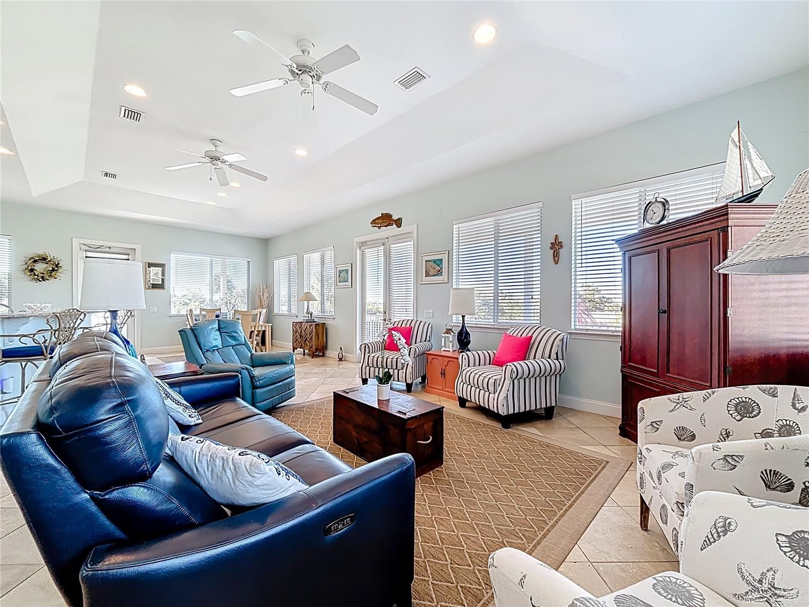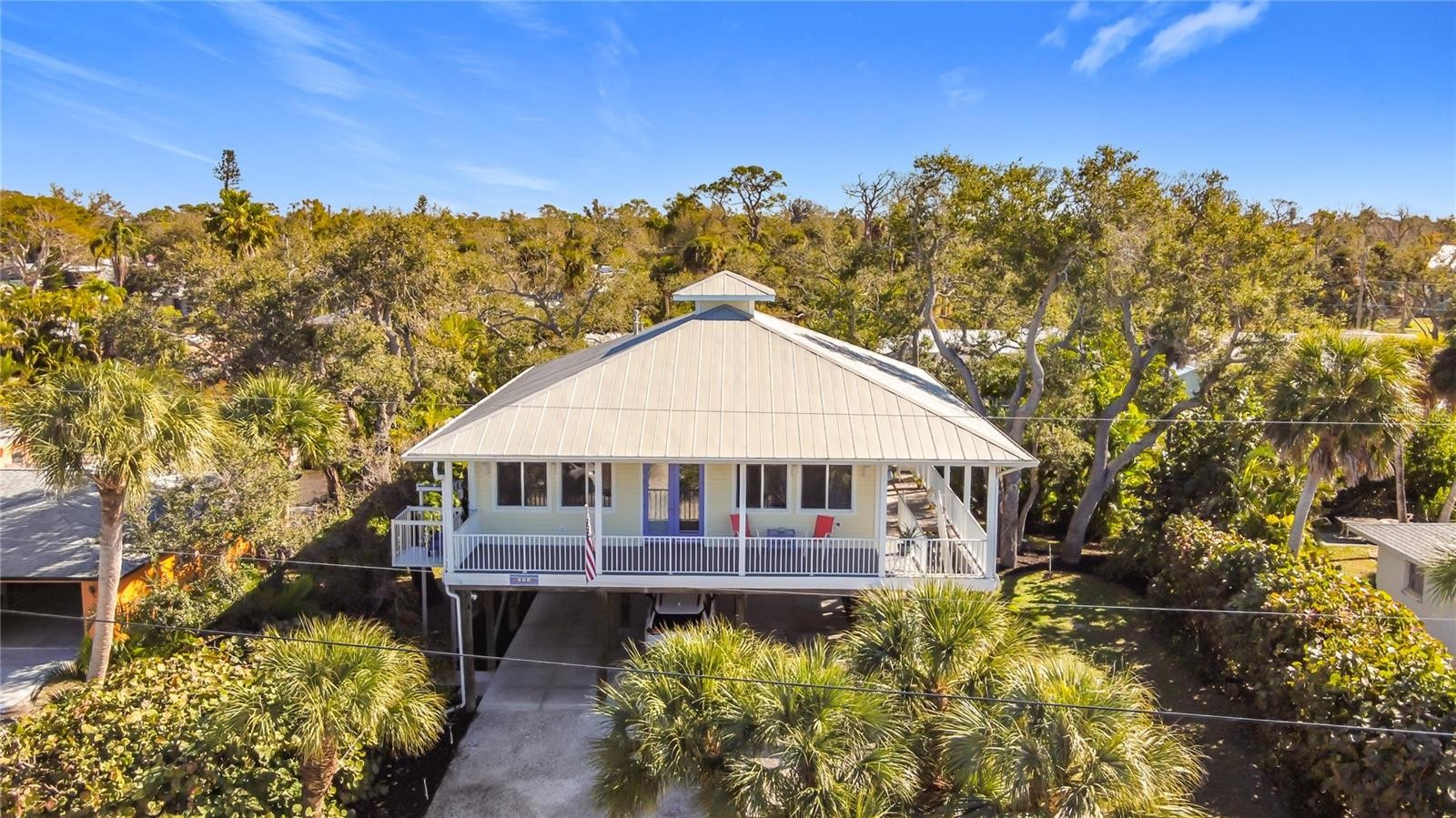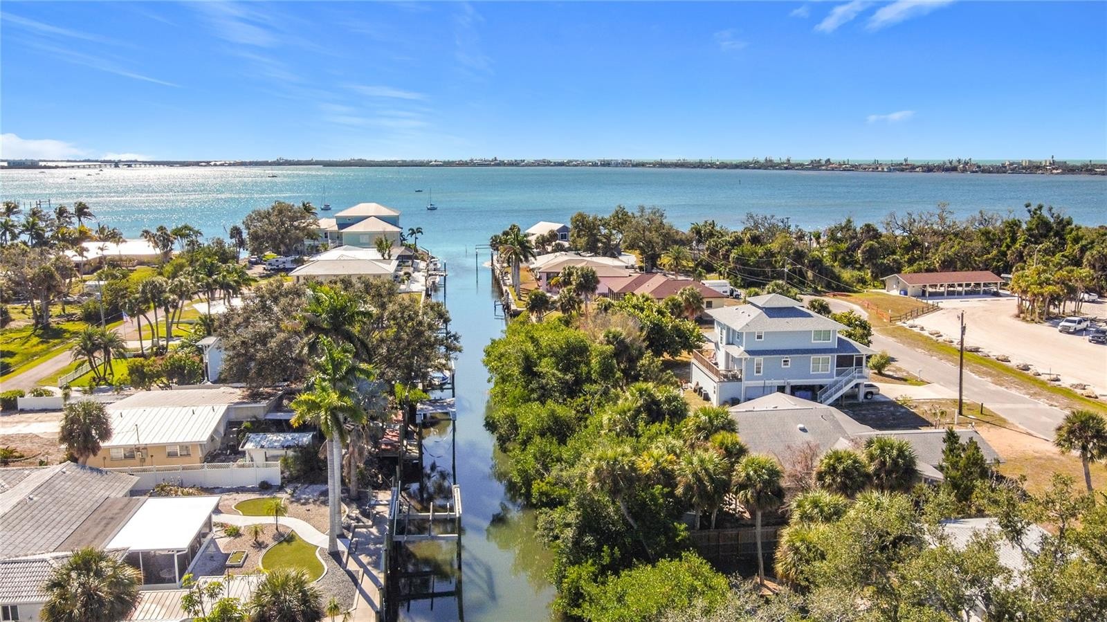 Envision yourself in this custom-built Southern Design pilling home that is located on a saltwater canal with direct access to the intracoastal waterway and the Gulf of America/Mexico. This elevated coastal residence offers peaceful water views of the intracoastal waterway and Lemon Bay, exceptional boating access, and a true Florida waterfront lifestyle. This open floor plan features 2 bedrooms and 2 bathrooms, with the great room and dining area highlighted by coffered ceilings and abundant natural light. Impact-rated windows and French doors enhance the bright, airy coastal atmosphere. While the doors are not impact-rated, they are equipped with shutters for storm protection. Both bedrooms and the main living areas display beautiful water views, creating a serene setting throughout the home. The open kitchen contains granite countertops and appliances, including a GE refrigerator, GE Profile microwave, Kenmore oven/range, and Whirlpool dishwasher. A separate laundry room includes a Whirlpool washer and dryer. The Jack-and-Jill primary bathroom offers convenient access from both bedrooms, and the home includes three storage closets with built-in shelving for added functionality. Outdoor living is a true highlight. A wraparound front and side porch provides the perfect place to relax and take in sweeping water views. The property also features a private walkway leading to a 4’ x 10’ dock. Additional exterior features include professional landscaping, an irrigation system, an outdoor shower, and an Insta-Hot electric water heater. The elevated design allows for covered parking for up to four vehicles, along with a storage room and a circular driveway for easy vehicle entry and exit. Home was designed to add an elevator if needed. Located directly across the street from a public park with boat ramps and direct Intracoastal access, this home is also just minutes from Dearborn Street, known for its dining, shopping, and local events. Immaculately maintained inside and out, this waterfront home offers an exceptional opportunity to enjoy coastal Florida living, combining boating convenience, walkable amenities, and tranquil water views in one desirable Englewood location.