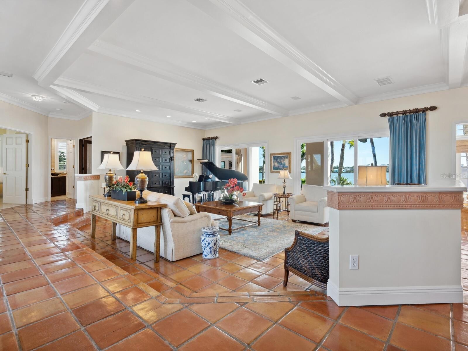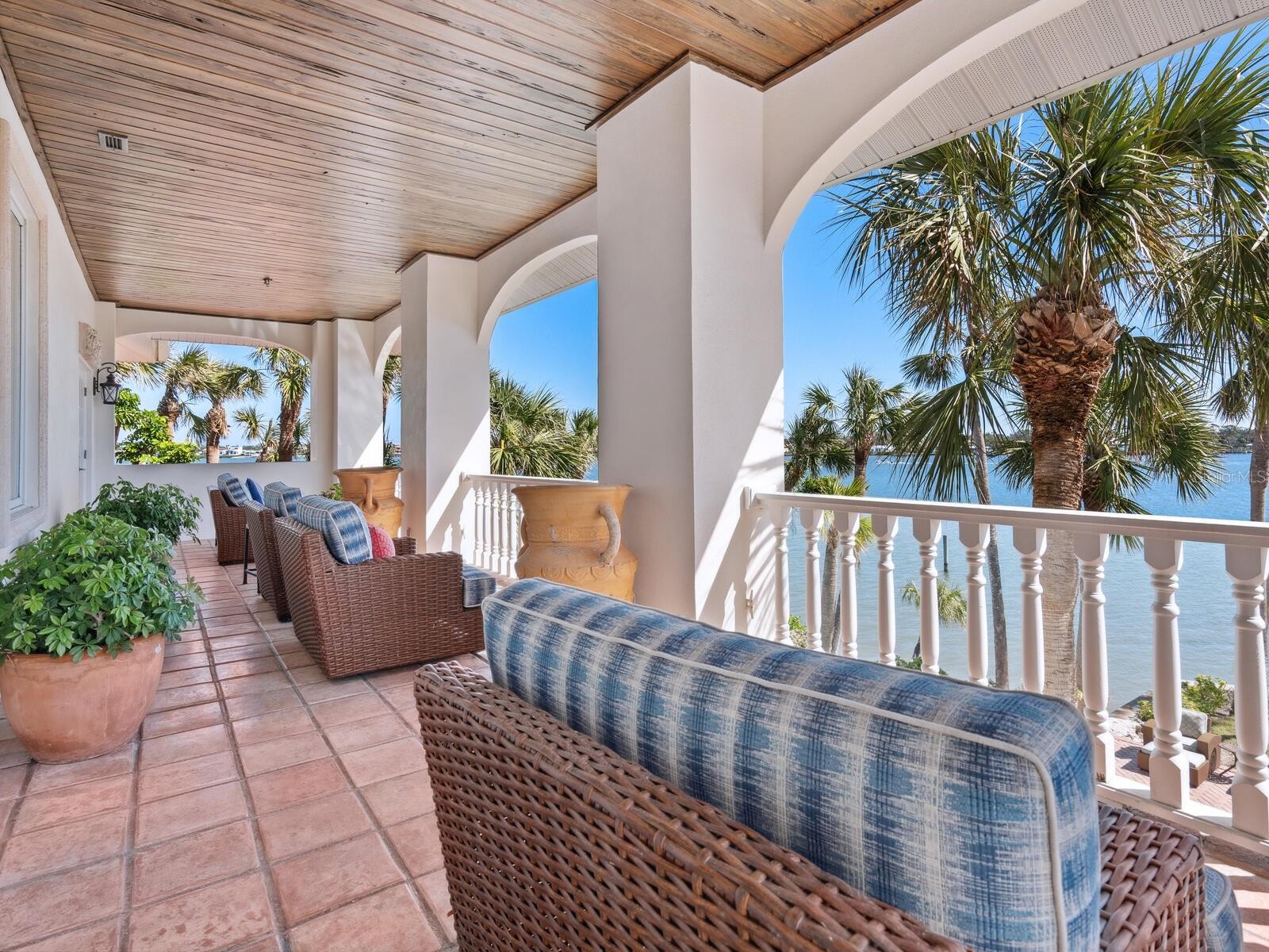 Welcome to Casey Key — a secret escape on Florida’s Gulf Coast. This enchanting five-bedroom, five-and-a-half-bath Spanish Revival estate captures the essence of timeless architecture and modern luxury, offering a private gulf-to-bay sanctuary unlike any other. A stately wrought-iron gate welcomes you to an inviting courtyard, the perfect prelude to this exceptional home. As you step inside, the tranquil Gulf and Intracoastal water views unfold before you, offering a serene backdrop to the elegant interiors. The main residence is complemented by a charming guest house crowned with a classic barrel-tile roof, adding a touch of old-world charm to the coastal aesthetic. The home radiates warmth and character—Saltillo tile floors, wood-beam ceilings, arched doorways, and intricate wrought-iron accents recall the romance of classic Spanish design. Expansive windows invite sunlight and panoramic views, creating airy interiors that blend old-world craftsmanship with contemporary comforts. The primary suite is a true escape, complete with a private balcony and sweeping Intracoastal vistas. Rich wood floors, decorative beams and a spa-inspired bath with indulgent finishes elevate the experience. Upstairs, a spacious family room and two secondary primary suites continue the theme of gracious waterfront living. Designed for both gatherings and quiet moments, the gourmet kitchen boasts professional-grade appliances and sleek finishes, while a cozy den with fireplace provides the perfect retreat. French doors throughout lead to covered terraces with pecky cypress ceilings, seamlessly connecting indoor and outdoor living. Recent upgrades, including new hurricane-impact doors and windows (2025), add peace of mind and enhance the home’s coastal resilience without compromising its architectural charm. Outdoors, the estate offers a world of its own—an expansive saltwater pool and spa, a pergola-shaded dining area, private beach access, and deep-water boating with newly completed dock and lifts (2025) featuring 16,000- and 12,000-pound lifts. Framed by the pristine natural beauty of Casey Key, yet only minutes from the cultural riches of Venice and Sarasota, this estate delivers unrivaled privacy, architectural beauty and waterfront living. A true Gulf Coast escape, this property is beyond compare.