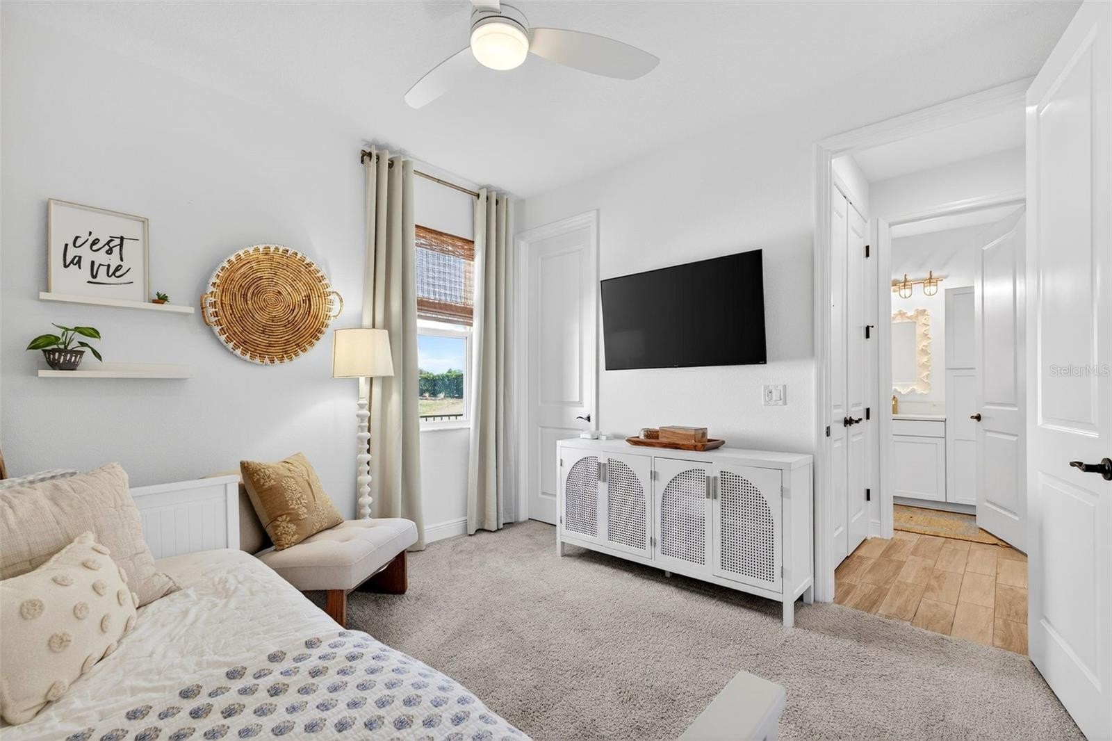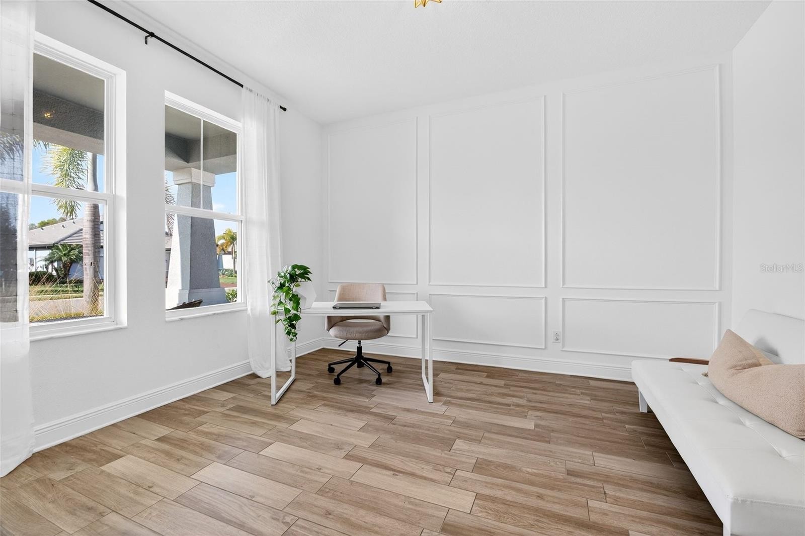 Welcome to Woodleaf Hammock living at its finest! This beautifully appointed 4-bedroom, 4-bath pool home offers the perfect blend of comfort, style, and functionality—complete with a dedicated office and a tandem 3-car garage for extra storage, toys, or a home gym setup. Inside, the layout is designed for both everyday ease and entertaining, with bright, open living spaces and a seamless flow to the backyard. Step outside to enjoy the sparkling pool and an inviting outdoor fire pit—perfect for sunny Florida afternoons, weekend gatherings, and cozy evenings under the stars. The home also shines after dark with custom exterior lighting and an outdoor sound system, creating the ideal setting for hosting friends or unwinding year-round. Located in the highly desirable Woodleaf Hammock community with convenient access to shopping, dining, and everything Lakewood Ranch has to offer—this home is the total package. All furniture is available for purchase separately and is not included in the asking price.