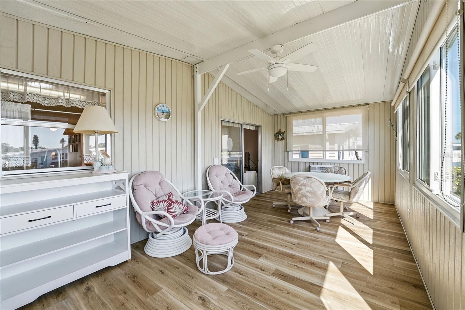 Welcome to Lazy River Village! One of the premiere (if not THE best) 55+ waterfront manufactured park in all of Sarasota and Charlotte counties! The BEST amenities, clubs, and selection of activities you will find in any co-op park in all of Sarasota county and even Charlotte County. Lazy River is located on the banks of the beautiful Myakka River. This 2/2 home is CUTE AS A BUG! Light-filled interior with newer windows. Well-maintained with an AWESOME WATER VIEW of Lake Cayman. Two walk-in showers (one in each bathroom). WALK-IN Closet in primary bedroom. Large Florida room with easy-to-care-for laminate flooring. Washer & dryer located in shed. Built-in storage and display space in dining area. Second bedroom has built-in desk. This home is the perfect seasonal place to enjoy Florida's coveted gorgeous winters and a perfect year-round home for those who love all 4 seasons of Florida. If you enjoy an abundance of activities, you will have plenty to choose from in Lazy River Village: Pickleball, tennis, bike clubs, card clubs, and pontoon boating. They even have a professional woodworking shop. A low monthly fee of $276 includes all the amenities. There are other amenities for an extra fee, such as a marina slip if your home is not located on the water. One of the things that makes Lazy River Village so great is its proximity to...well...everything! Be prepared to enjoy Florida's wildlife at its finest, both inside the Lazy River Village complex and at abundant state parks and nature preserves. Shopping and dining surround you in all directions. The spring training homes of both the Atlanta Braves & the Tampa Bay Rays are just a minutes away. The world-renowned Gulf of Mexico beaches are all within 30 minutes or less! 1) Englewood beach, 2) Casperson Beach (GREAT for shelling), 3) Venice Beach (shark tooth capital of the world), 4) Brohard Paw Park, 5) Nokomis beach (you've GOT to experience the weekly drum circles), 6) the island gem of southwest Florida: Boca Grande... And finally: 7) Siesta Key in Sarasota has been ranked multiple times as the number one beach in the nation and is a mere 35 minutes away. Lazy River Village offers a lifestyle that every retiree dreams of. You have the quaint downtowns of Venice and Punta Gorda--both cities are often ranked as Top 10 destinations in the country for retirement. Another local favorite, Englewood, is a cozy, fun beach town on the Gulf of Mexico. The residents of Lazy River Village agree: Lazy River is a community that offers it all. Don't miss your chance to see this home!