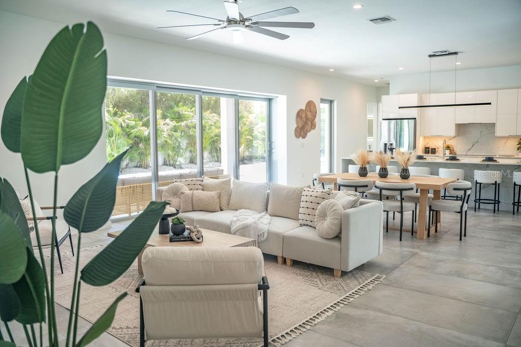 Outstanding value for new modern construction in Arlington Park. Welcome to 2124 Clematis Place, a newly completed Courtyard Modern residence influenced by the Sarasota School of Architecture. This 6-bedroom, 6-bath home delivers clean lines, bold volume, and seamless indoor–outdoor flow across 3,574 sq. ft. of conditioned living space. The main level is bright and airy, with polished concrete tile floors and a minimalist material palette. The kitchen features modern cabinetry, quartz countertops, and premium appliances, while the flexible floor plan provides space for work, guests, or multi-generational living. Outside, a private oasis includes a pool and spa, fenced yard, and low-maintenance landscaping. Ideally located near Arlington Park, downtown Sarasota, Southside Village, Sarasota Memorial Hospital, and area beaches.