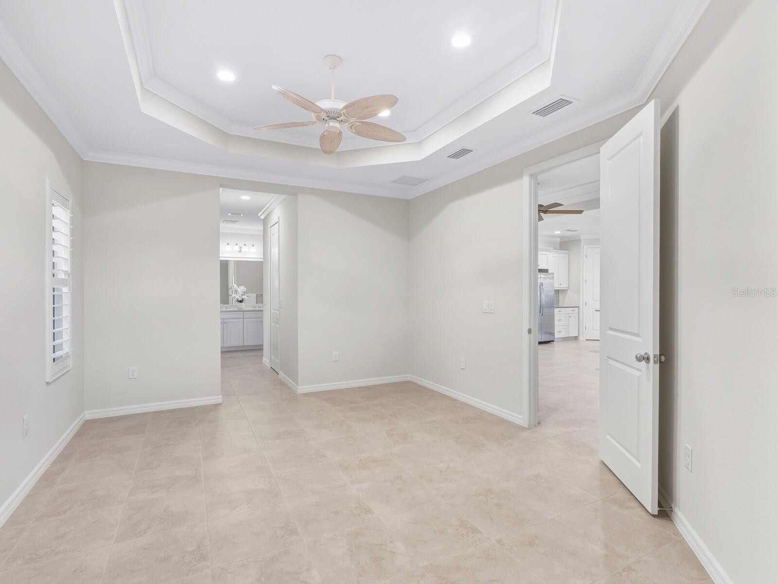 Enjoy sparkling lake views from this beautifully upgraded 3-bedroom plus office, 3-bathroom home, ideally situated on a quiet cul-de-sac in the sought-after gated community of Milano. Designed for comfort and peace of mind, the home features impact-resistant windows and a full-pocket sliding door, an updated electrical system, a Kohler whole-house generator, and an HVAC system with iWave air purification. Freshly painted and truly move-in ready, the home showcases thoughtful upgrades throughout, including tray ceilings with crown molding, 8-foot doors, flush ceiling lighting, designer fans and fixtures, framed bathroom mirrors, and 4-inch plantation shutters. The flowing floor plan offers engineered wood flooring in the office and 18-inch porcelain tile throughout the rest of the home. The outdoor living space is ideal for relaxing or entertaining, featuring serene lake views, Clear View screening, and a remote-controlled SPF retractable motorized awning with lighting and side sunshade—perfect for grilling, dining, or lounging in sun or shade. The open kitchen features DuPont Zodiac quartz countertops, abundant cabinetry with undermount lighting, ample prep space, GE stainless-steel appliances including a gas range, and a walk-in pantry. Each guest bedroom enjoys its own dedicated bathroom, offering comfort and privacy, while the front-facing office with glass-pane French doors provides a quiet and inviting workspace. The primary suite overlooks the lake and features two walk-in closets, dual vanities, a spacious walk-in shower, private water closet, and linen storage. Additional conveniences include a laundry room with sink and shelves, and a garage equipped with storage shelves and wall mounts. Great curb appeal with lush landscaping, outdoor lighting, and paver walkways and lanai. Residents of Milano enjoy exceptional resort-style amenities, including a clubhouse with kitchen, heated pool and spa, lifestyle director, outdoor pavilion, fire pit, dog park, and pickleball and bocce courts. Ideally located near shopping, dining, entertainment, Gulf beaches, golf courses, top-rated schools, airports, medical facilities, and downtown Venice—with low HOA fees and no CDD. This exceptional home offers the perfect blend of luxury, convenience, and lifestyle. Don’t miss this opportunity!