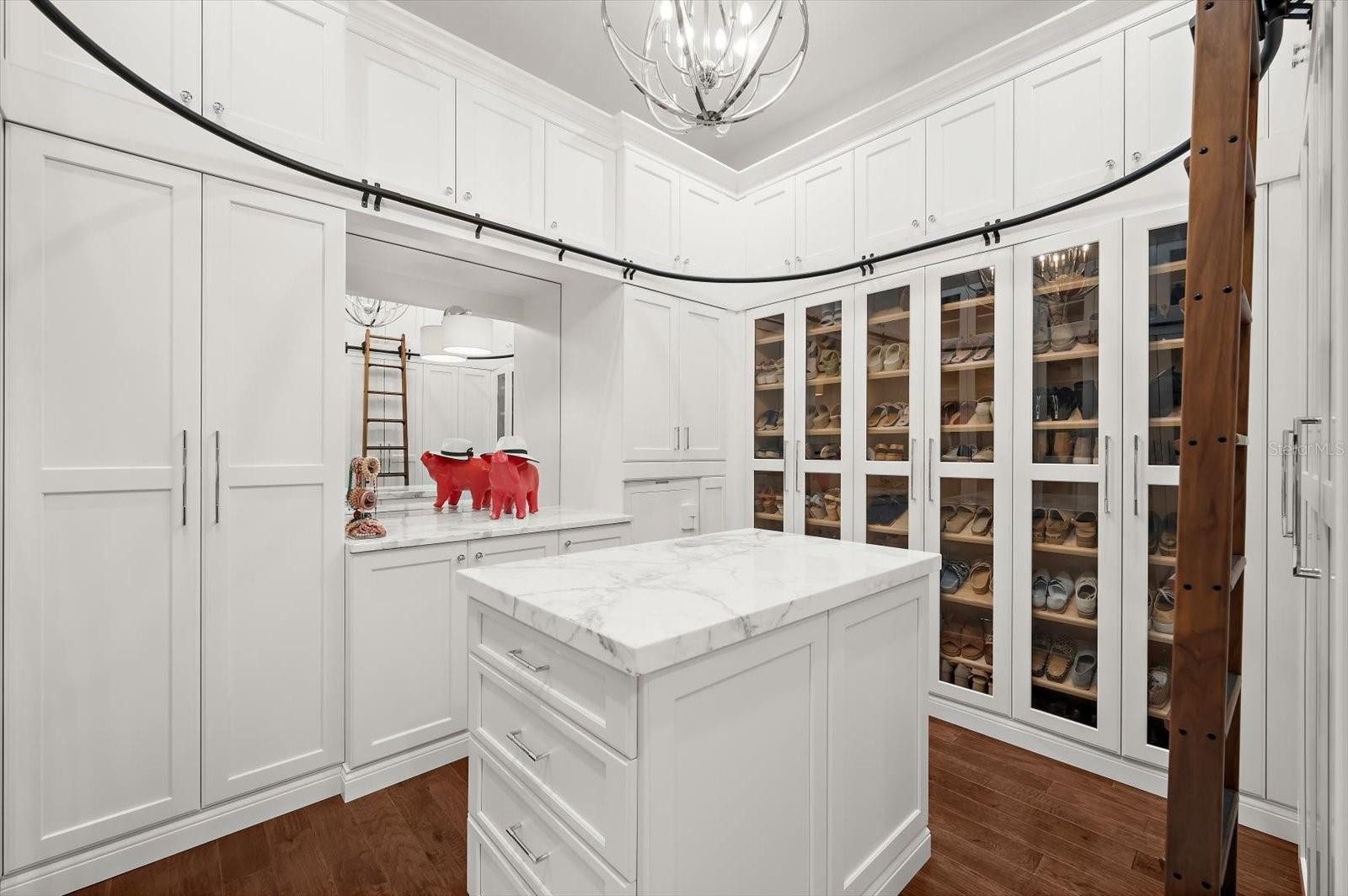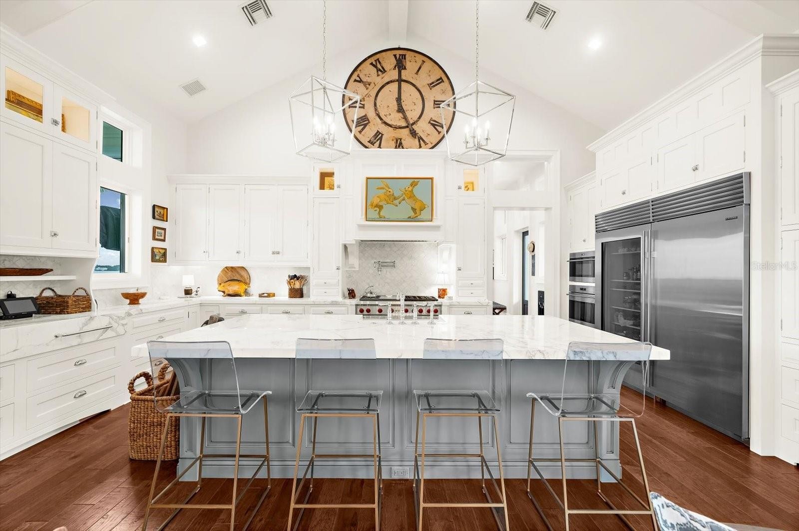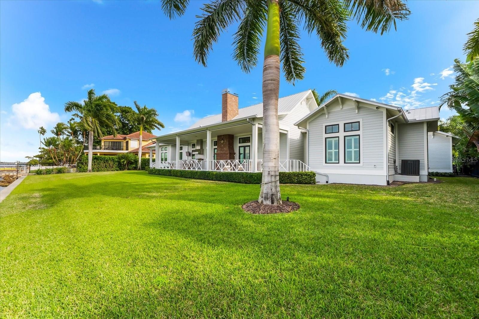 Manatee River Waterfront SHOWSTOPPER! Located in the heart of Downtown Bradenton, this custom-built coastal estate was completed in 2017 by renowned local builder Stephen Carlsen and offers breathtaking panoramic water views along 150 feet of pristine waterfront on an expansive 21,750 sq. ft. double lot. Positioned 8ft. in elevation the property did not flood or take on water during Hurricane Helene in 2024 and includes an assumable flood insurance policy of only $1,394 annually. This 4-bedroom, 4.5-bath coastal masterpiece provides 4,252 sq. ft. of air-conditioned living space and 7,153 sq. ft. total, thoughtfully designed with a timeless Key West–inspired aesthetic. A bonus “Casita” guest house with its own private entrance includes a bedroom, bathroom, and walk-in closet, offering a luxurious and private retreat ideal for guests or extended stays. The home showcases volume ceilings, extensive custom trim detailing, and wide-plank engineered hardwood flooring throughout. Expansive covered patios and porches create an effortless indoor-outdoor living experience while embracing tranquil waterfront views. The home is constructed of concrete block and topped with a striking 5V Galvalume metal roof, blending durability with architectural character. Throughout the residence, Italian Calacatta Gold marble countertops elevate the kitchen and all bathrooms. The chef’s kitchen is outfitted with premium Sub-Zero refrigeration and a full Wolf appliance suite, including one electric oven, two gas ovens, and an integrated warming drawer, making it ideal for entertaining and everyday living. A Generac natural-gas whole-house generator, energy-efficient tankless water heaters, and dual-zone air conditioning in the main residence ensure comfort and peace of mind, while separate mini-split systems independently serve the air-conditioned three-car garage and guest house. Additional highlights include Marvin Modern hurricane-impact casement windows and doors throughout, all featuring retractable screens, along with motorized retractable screens on the rear porches to seamlessly blend indoor and outdoor living. A private, secured front gate with coded entry enhances privacy, while a comprehensive monitored security system includes cameras and sensors on doors and windows. The home is also equipped with a whole-house water softening system and a private freshwater irrigation well to maintain lush tropical landscaping. For boating enthusiasts, the property features an impressive 180-foot private dock complete with a 12,500-pound boat lift and a dedicated dual jet ski lift, offering immediate access to the Manatee River. This extraordinary waterfront estate presents a rare opportunity to own a meticulously designed residence that combines luxury, security, and resort-style boating amenities in one of downtown Bradenton’s most desirable locations. Whether entertaining guests, embarking on a sunset cruise, or relaxing while soaking in serene water views, this exceptional property delivers the ultimate coastal lifestyle.