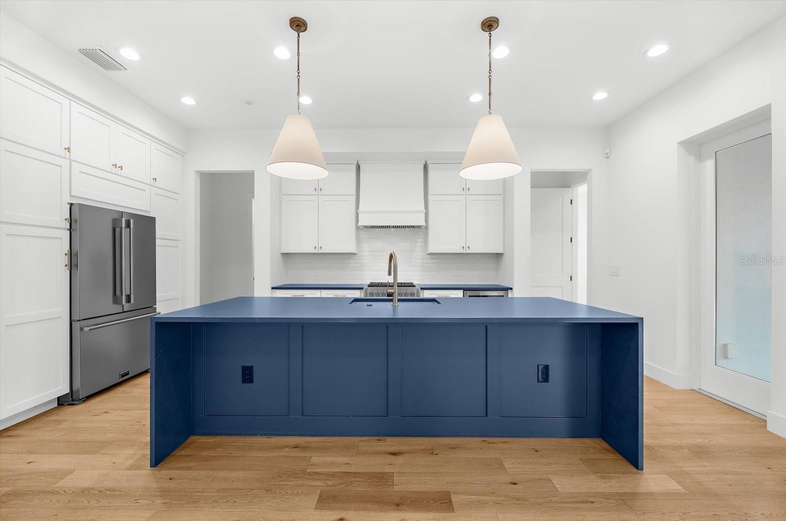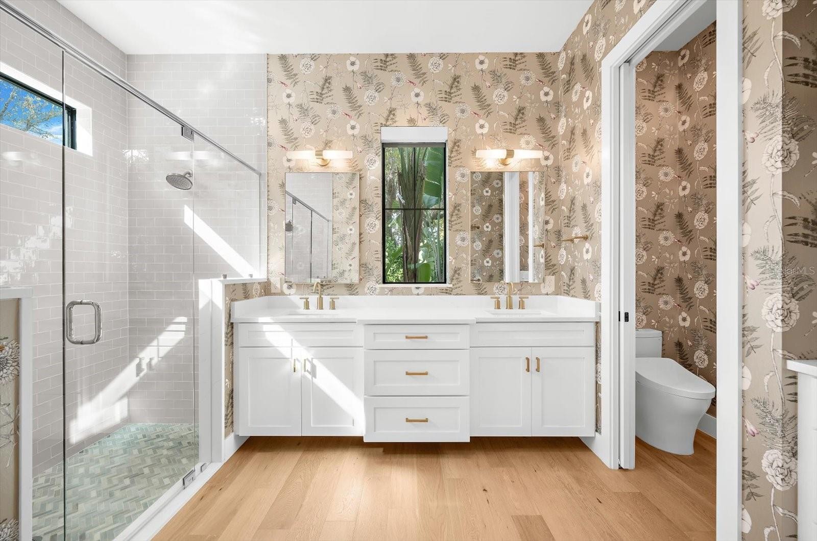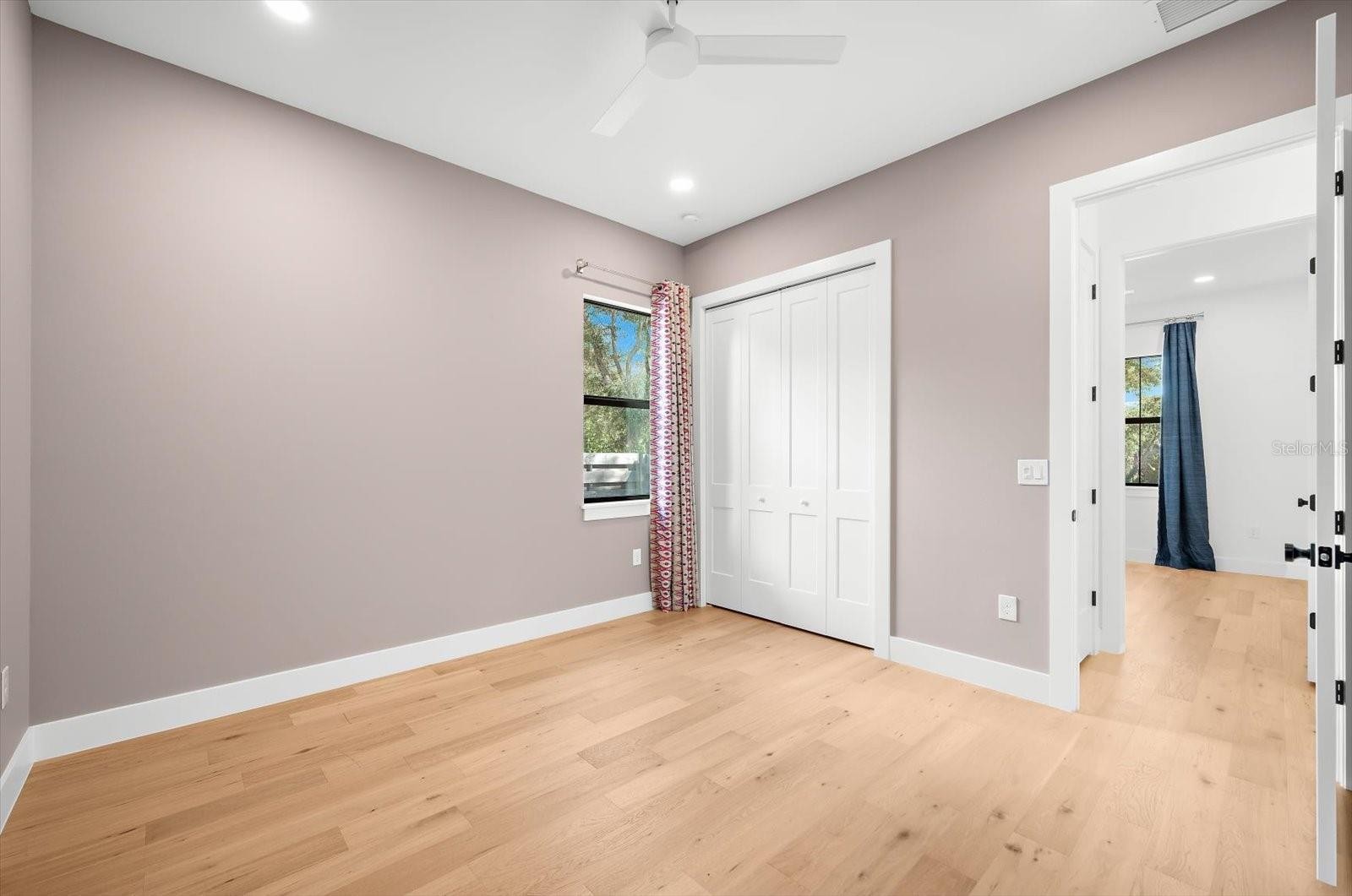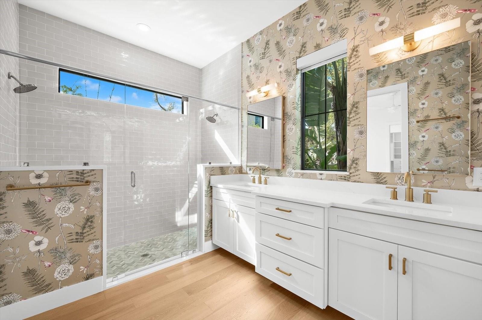 This beautifully crafted custom home blends modern farmhouse design with thoughtful details and quality finishes throughout. Offering 3 bedrooms, 2.5 baths, and an open floor plan, the home is designed for comfortable living and effortless entertaining. From the moment you arrive, the exterior showcases distinctive character with a cypress wood garage door, cypress porch accents, and a striking glass entryway. Inside, the two-story layout is filled with natural light, European oak flooring, and recessed lighting throughout, creating a warm and inviting atmosphere. The main living space features a dramatic 12-foot vaulted ceiling highlighted by a decorative cypress beam and an electric fireplace, making the great room a welcoming focal point of the home. The open-concept design flows seamlessly into the chef’s kitchen, which is both stylish and functional. It features a Fulgor Milano dual-fuel range, Silestone quartz countertops, custom wood cabinetry with soft-close drawers, and a large waterfall-edge island. Floating cypress wood shelves, brass light fixtures, and a spacious walk-in pantry add both character and practicality. The primary suite provides a relaxing retreat with a spacious bedroom, walk-in closet with custom shelving, and a thoughtfully designed bathroom featuring dual showers, double vanities, and cypress shelving. Additional highlights include beautiful wood stairs with a wrought iron railing leading to a second-story bonus room, along with a large laundry and mudroom combination offering abundant storage and counter space. Outside, the spacious backyard offers ample room for a future pool and is enclosed by a six-foot cypress shadowbox fence, creating a private setting ideal for pets, gatherings, and outdoor enjoyment. Ideally located east of the Trail in Sarasota, the home is just a few blocks from Sarasota Memorial Hospital, Southside Village, and Southside Elementary School. Downtown Sarasota’s vibrant dining, arts, and cultural scene — along with the area’s world-renowned Gulf beaches — are only a short drive away.