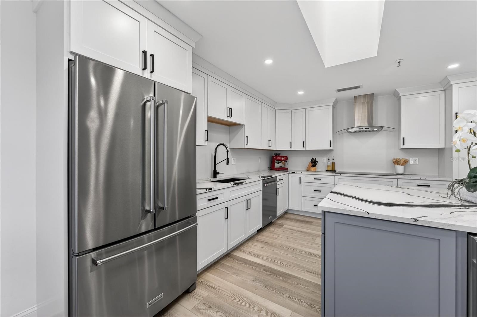 Situated behind gates of the coveted Bay Isles on Longboat Key is the private enclave of Harbour Oaks. This meticulously renovated residence offers an effortless blend of comfort, refinement, and coastal living. Offering an expansive 3 bedrooms, 2 bathrooms as well as a 2-car garage overlooking one of the most pristine Longboat Key Club golf courses. Vaulted ceilings as well as skylights allow natural light to flood through the entire space. The custom modern kitchen is well-appointed with KitchenAid appliances including a 36-inch induction cooktop, built-in oven, refrigerator and dishwasher as well as a dedicated wine refrigerator within the expansive kitchen island. The master bedroom offers vaulted ceilings with a connected terrace to enjoy your morning coffee or watch beautiful Gulf sunsets. The primary bath exudes a sense of being at a spa with its tiled shower, glass shower door and double sink vanity. The third bedroom is currently being used as an office and gym, however could easily be set up as a bedroom. Harbour Oaks is also pet friendly and close to shopping, golf, tennis, beach and bay. Walks and bike rides can be enjoyed in one of the most scenic areas on Longboat Key. Bay Isles offers an exceptional coastal lifestyle including two fully staffed, 24-hour security entrances and exclusive access to a private, gated Gulf-front beach club. Residents have access to a thoughtfully appointed beachside retreat featuring a shaded pavilion, picnic spaces, restrooms, dedicated beach chair storage, grilling stations, and generous parking. Within minutes, access the famous St Armand’s Circle with its exceptional shopping and dining amenities. Cross the iconic Ringling Bridge to downtown Sarasota, which is well known for world-class theater, culture and dining. Additional amenities are available within Bay Isles upon joining the Longboat Key Club.