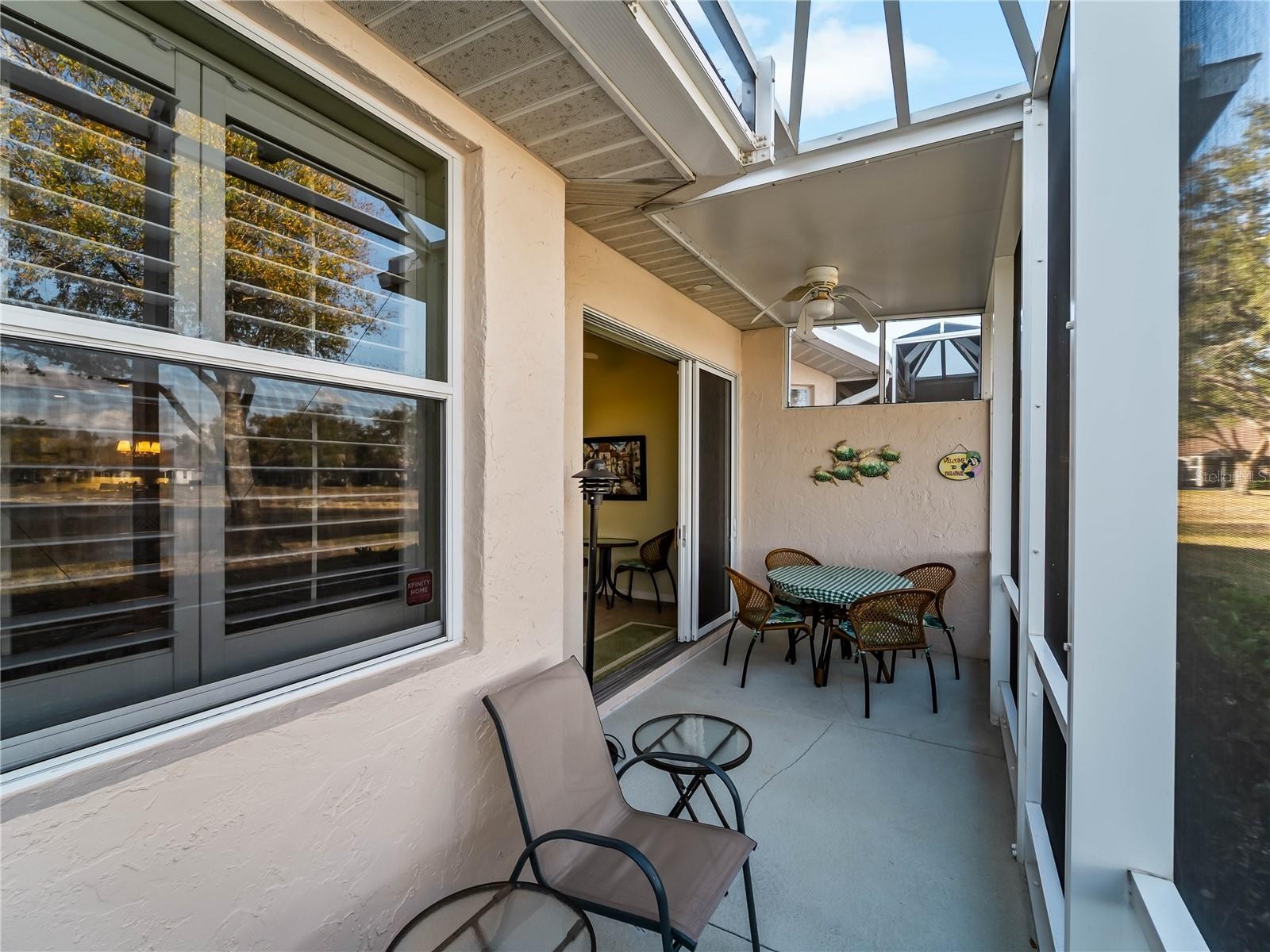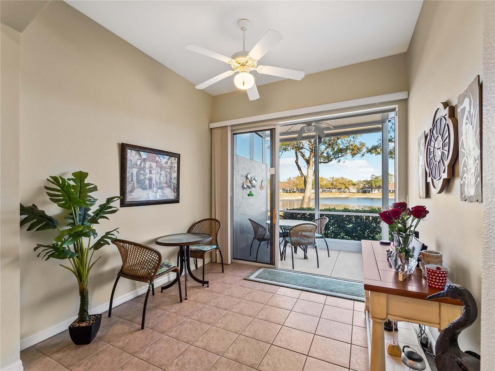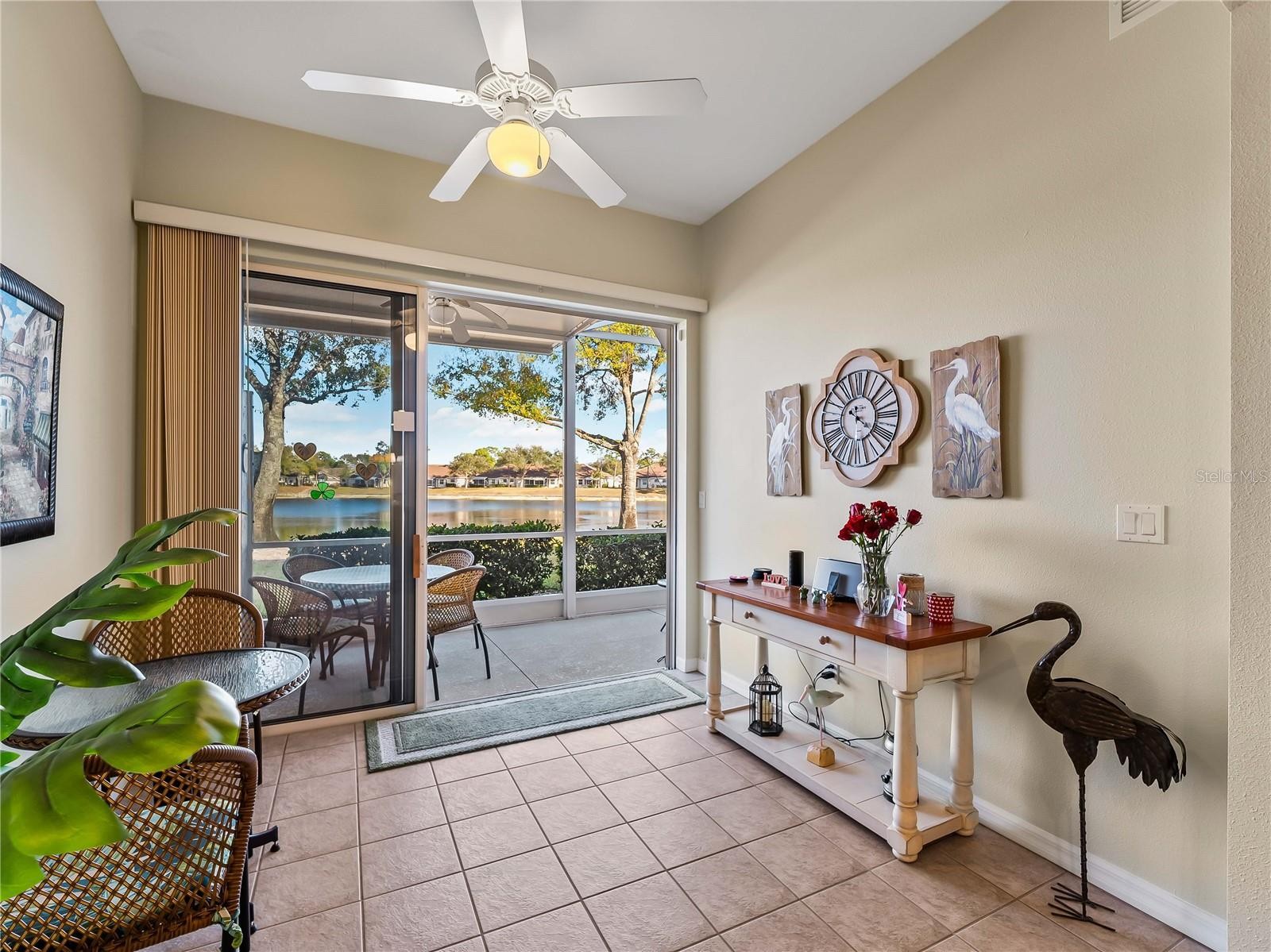 Welcome to 2155 Lynx Run, a custom-built villa tucked inside one of North Port’s quiet communities, where rear privacy and a peaceful water view create a setting that simply feels different. From the moment you walk in, you can sense the pride of ownership. The home has been thoughtfully maintained and carefully updated, with plantation shutters throughout, tile flooring for easy living, and ceiling fans in every room to keep things comfortable year-round. The kitchen features granite countertops, pantry storage, and under-cabinet lighting that adds both function and a warm finishing touch. Out back, the extended private lanai invites you to slow down and enjoy the water view, often accompanied by local wildlife. It’s the kind of space that makes morning coffee or evening unwinding feel intentional. This is a true three-bedroom layout in a custom build within the community, offering a floor plan that stands apart from typical villa designs. It’s being offered turnkey, making the transition seamless for the next owner. With strong pride of ownership, a beautiful community, and the added benefit of not being in a flood zone, this home checks boxes that buyers are actively looking for right now. Opportunities like this don’t tend to last, especially when privacy, updates, and water views all come together in one property. If it feels like this could be the one, it probably is.